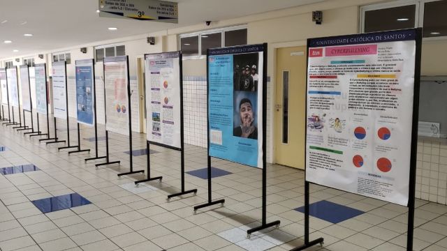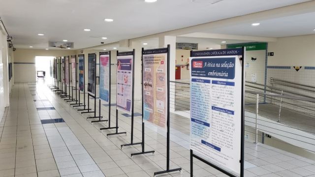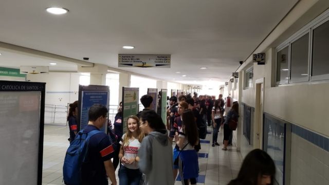Alunos do 3º ano do Ensino Médio divulgaram os primeiros resultados de seus estudos científicos na Unisantos. A mostra, já com os banners de apresentação dos temas escolhidos, vinte o oito no total, é uma prévia do Fórum de Atualidades que será realizado nos dias 16 e 17 de outubro no auditório da escola.
