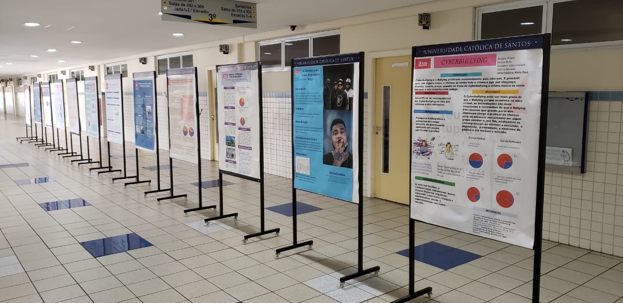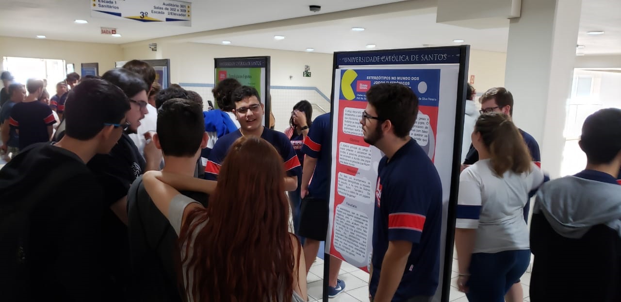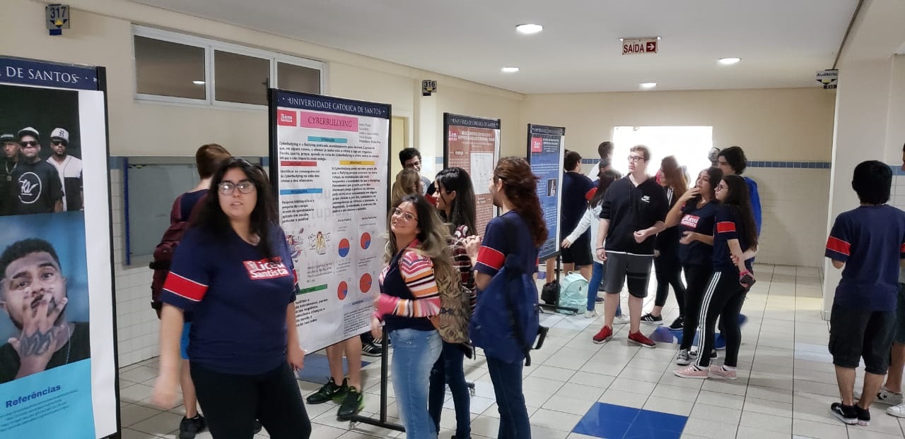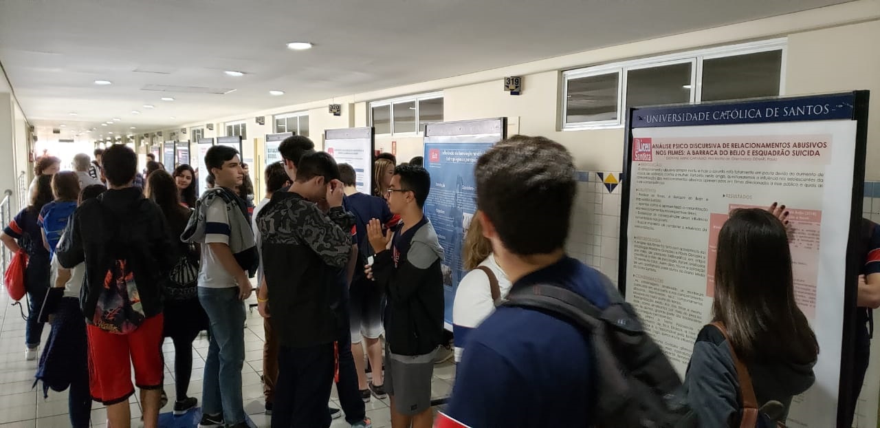 Alunos do 3º ano do Ensino Médio divulgaram os primeiros resultados de seus estudos científicos na Unisantos. A mostra, já com os banners de apresentação dos temas escolhidos, vinte o oito no total, é uma prévia do Fórum de Atualidades que será realizado nos dias 16 e 17 de outubro no auditório da escola.