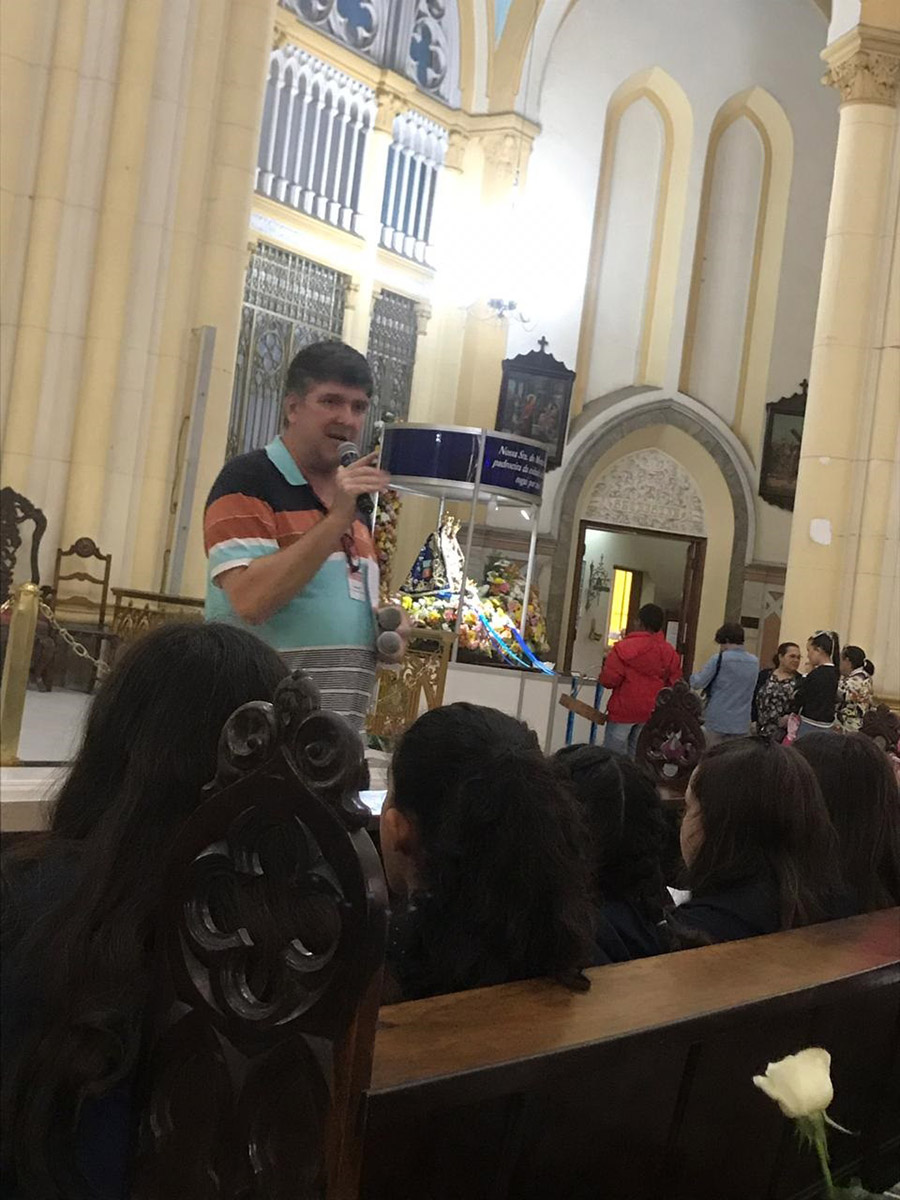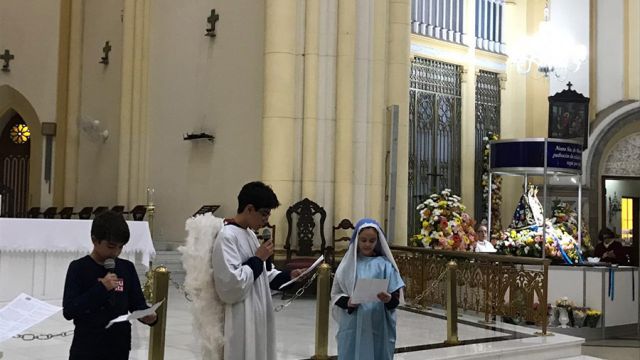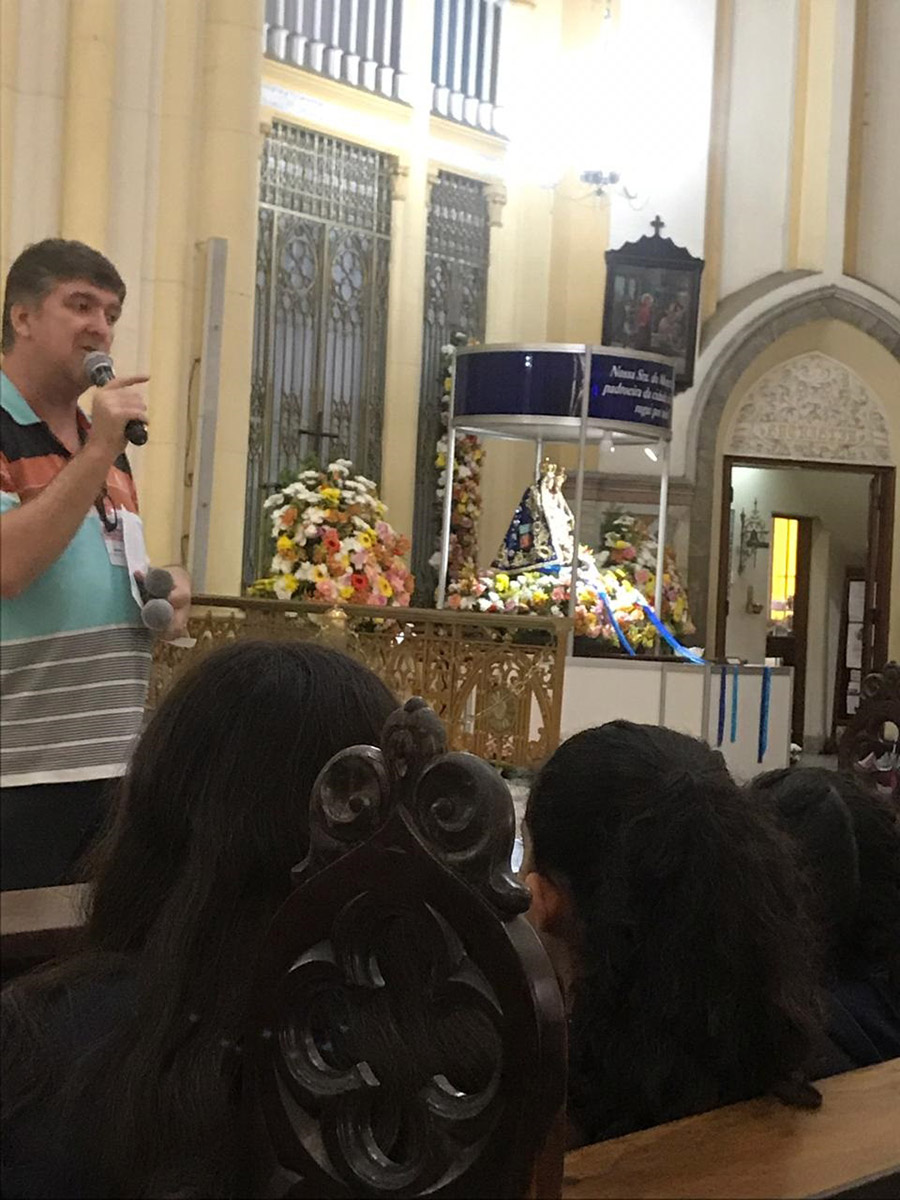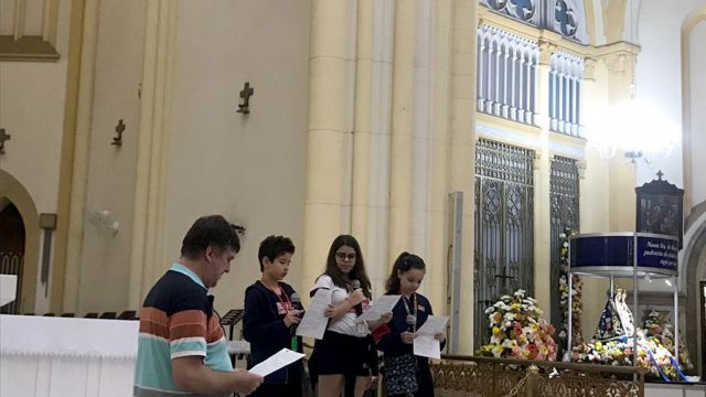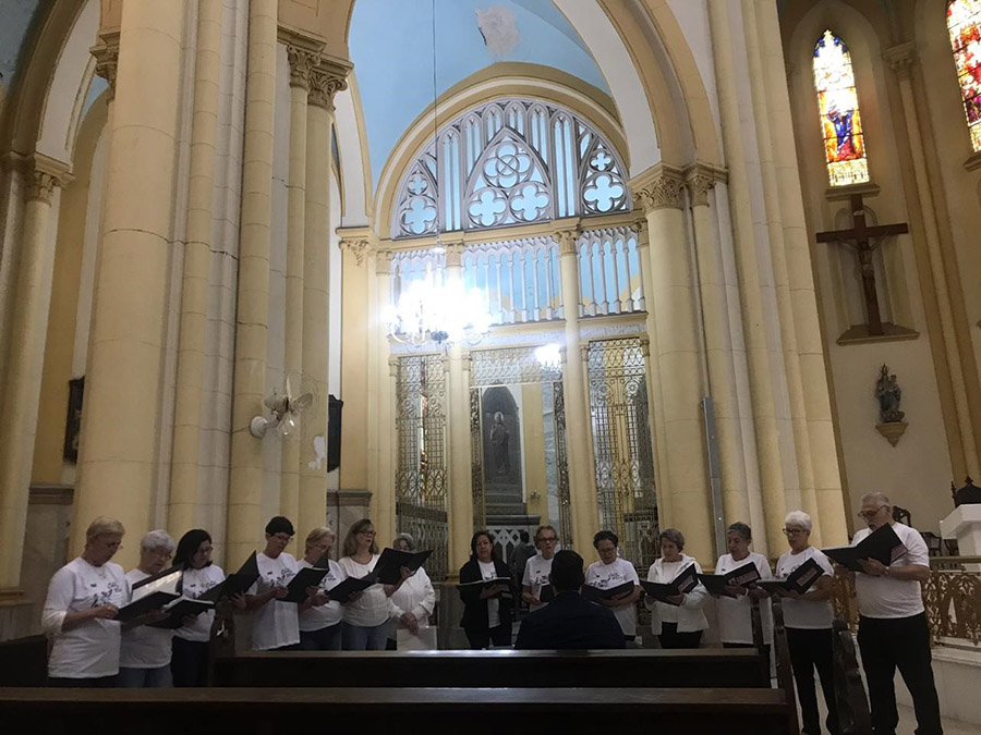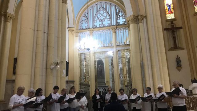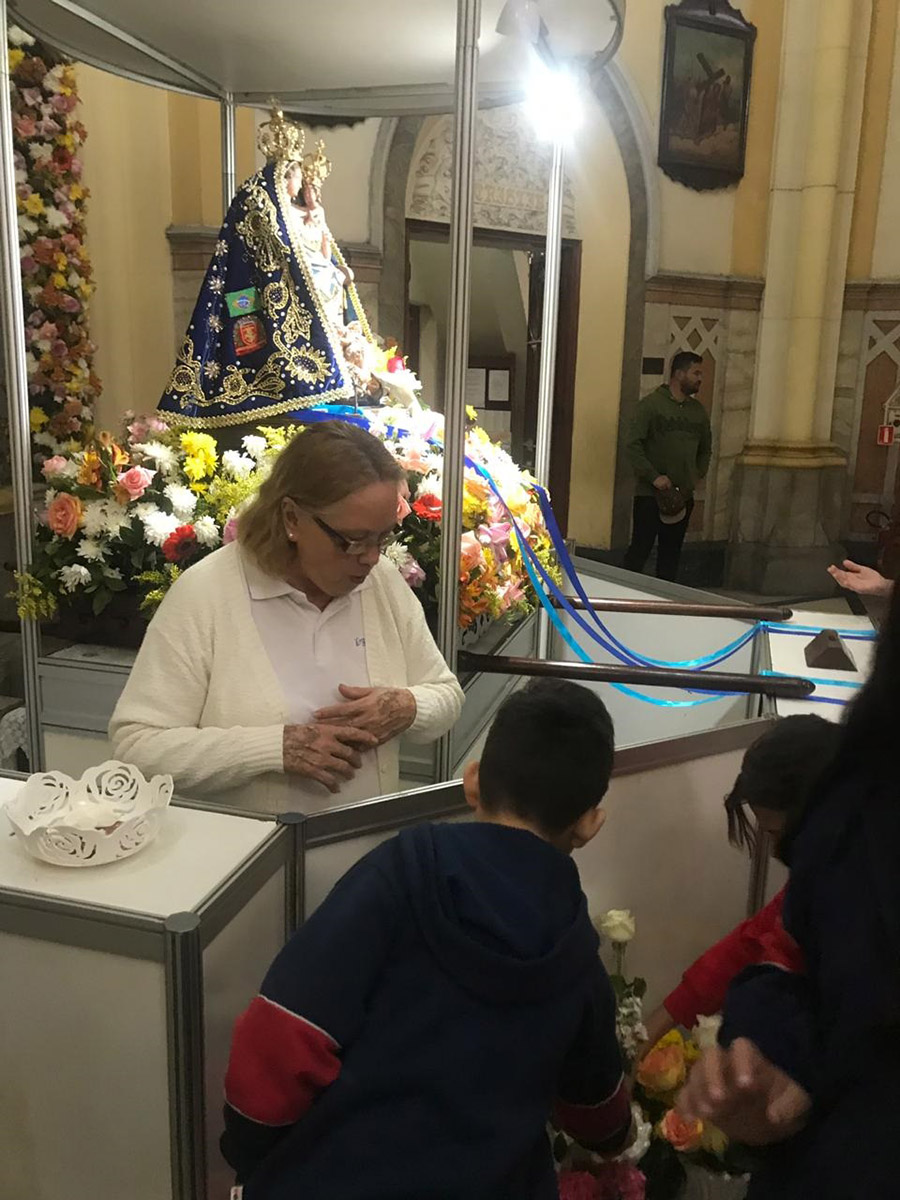 Tempo de agradecer pelos momentos felizes vivenciados junto às famílias e amigos e de renovar os pedidos a Maria, Mãe de Jesus. Embalados pelas vozes do Coral Canta Mais, regido pelo professor Felipe Borges, os estudantes relembraram a importância da padroeira para a cidade.