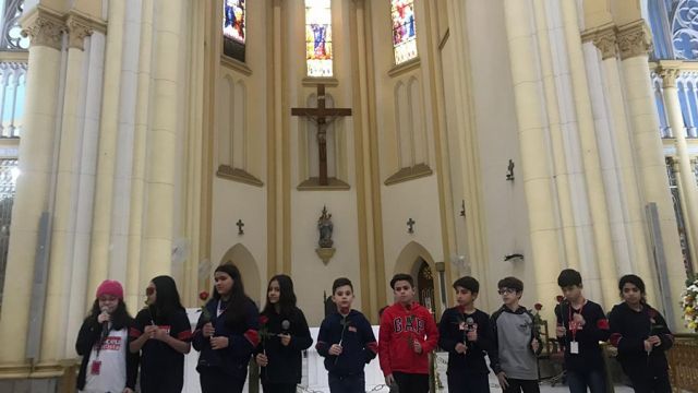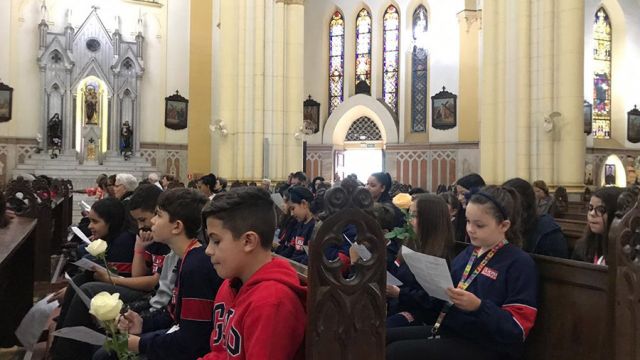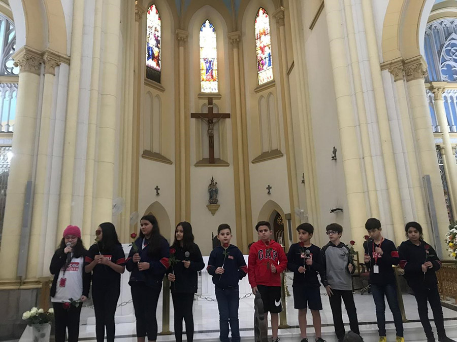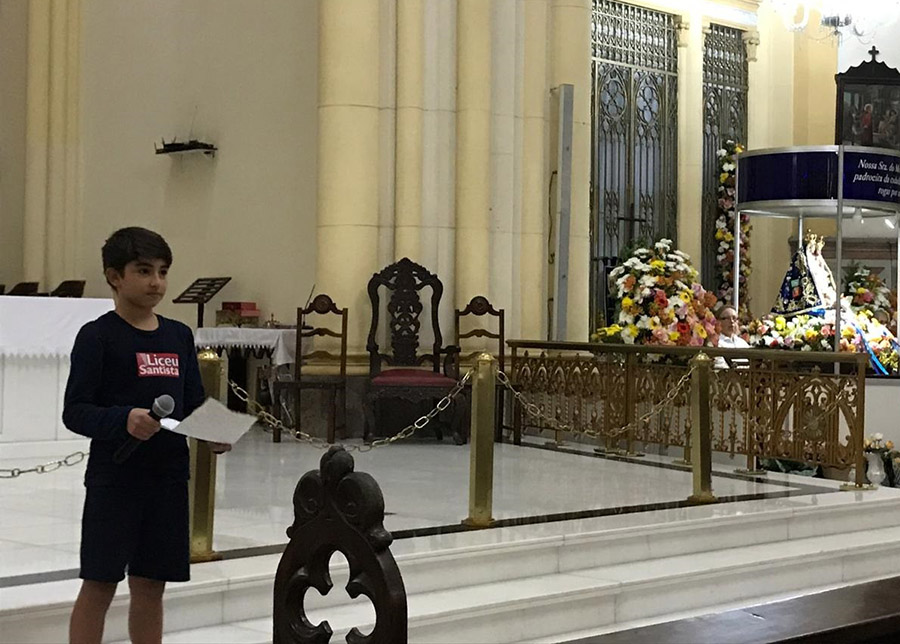 Nossa Senhora do Monte Serrat, padroeira da cidade de Santos, recebeu homenagens dos alunos do 5º ano do Ensino Fundamental que foram à Catedral para participar da Hora Santa. Com orações, música, flores e muita alegria, eles representaram toda a família liceísta nesta data tão especial para os santistas.