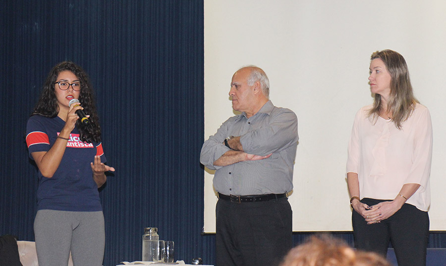 A jovem vereadora eleita pelo Liceu Santista, Emanuelle Palermo, também esteve presente e contribuiu com o debate, dividindo com os colegas suas impressões nesses primeiros meses na Câmara Jovem de Santos.