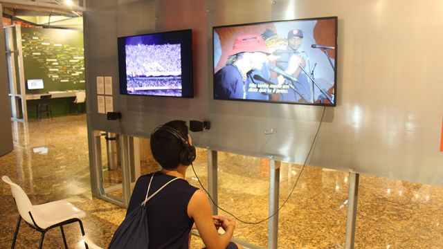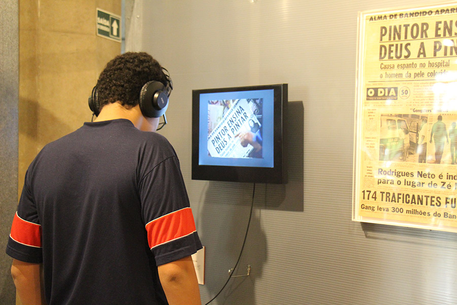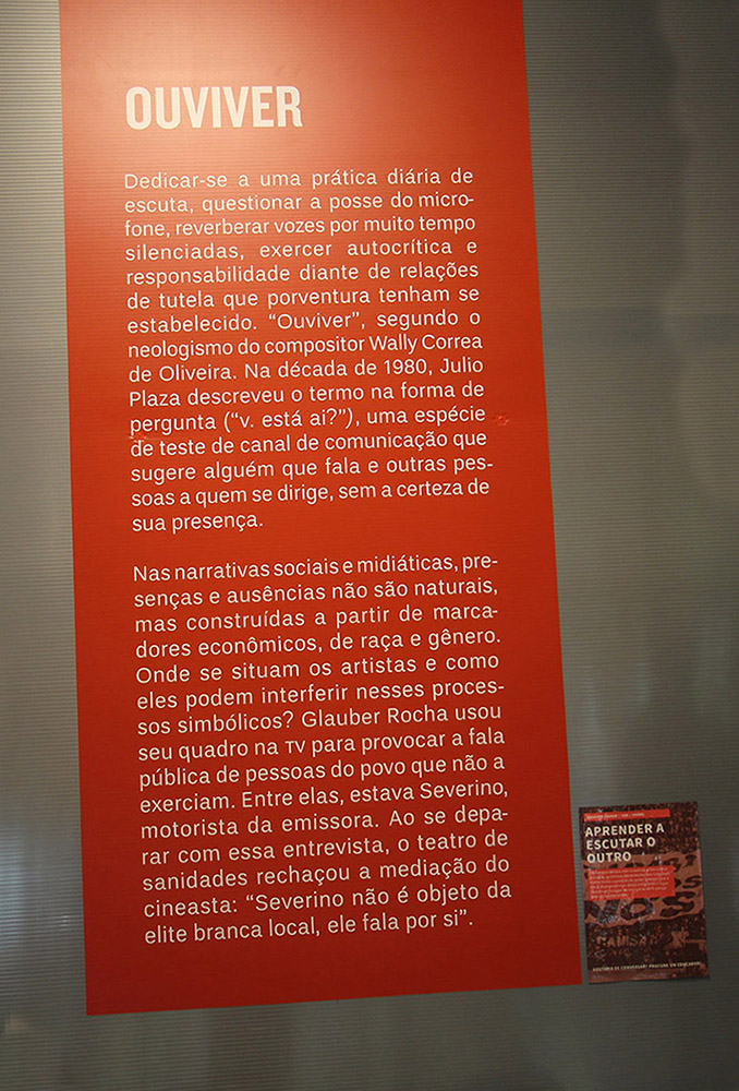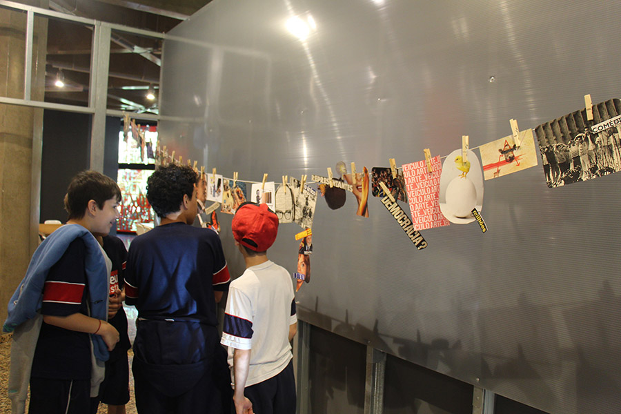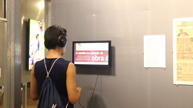 Por meio de intervenções midiáticas impressas, televisivas, radiofônicas e digitais, além de instalações e objetos, analisadas sob a conjuntura histórica, social e midiática em que surgiram, entre as décadas de 1950 e 2000, alunos do 8º ano do Ensino Fundamental tiveram a oportunidade de conhecer cerca de 100 trabalhos divididos em seis núcleos, denominados a partir de verbos que denotam um conjunto de ações: duvidar da verdade, perder-se, duelar, “ouviver”, hackear e ficcionalizar.