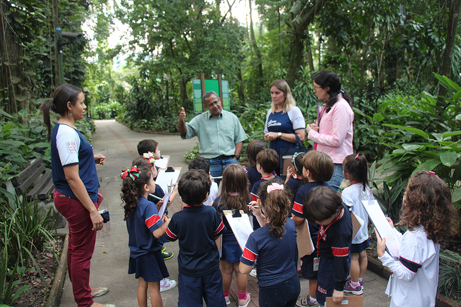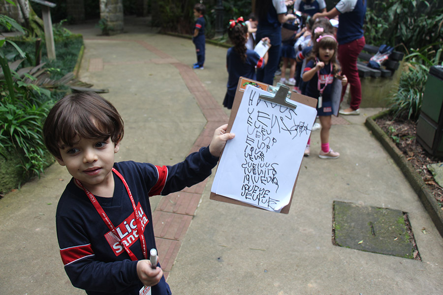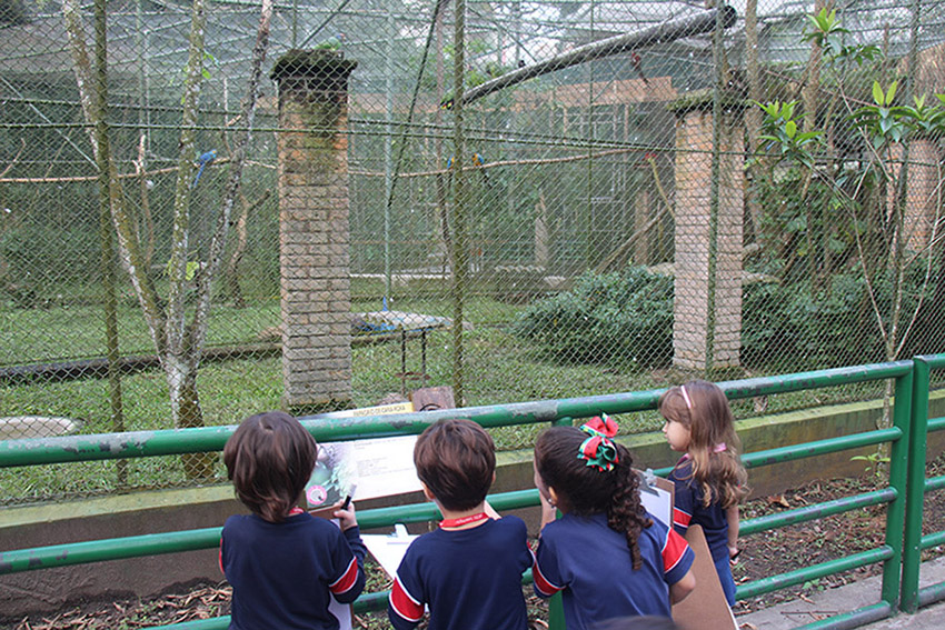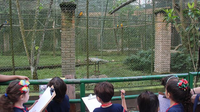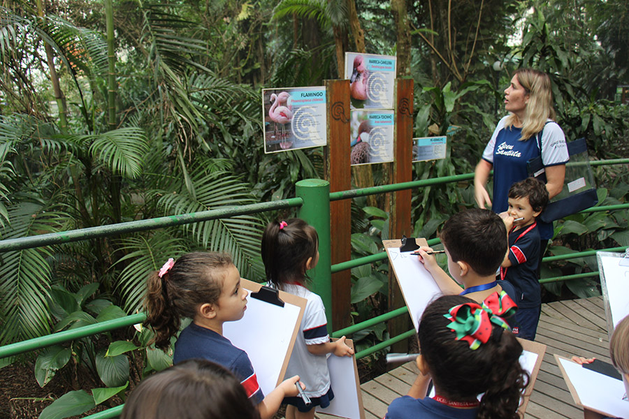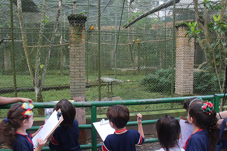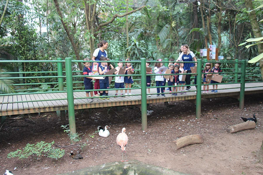 Os pequeninos do Grupo 4 C da Educação Infantil foram ao Orquidário Municipal de Santos para observar e registrar informações sobre pássaros e aves. Munidos de pranchetas e canetas, os alunos tiveram liberdade de expressar o que viam e descobriam durante a vista aos espaços. A atividade, que contempla a área de práticas de linguagem, proporcionou às crianças a análise das características de algumas espécies, procedimentos de leitura e de escrita nas situações de pesquisa.
