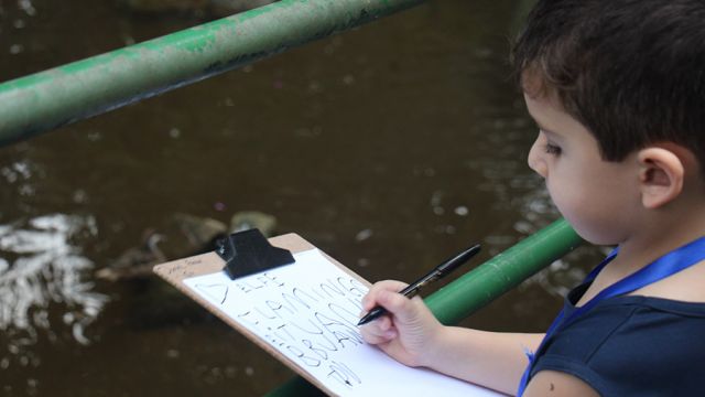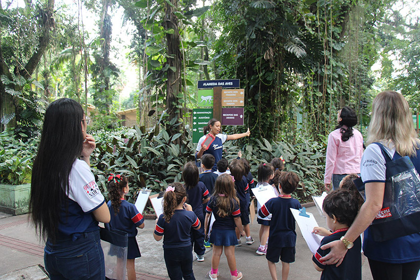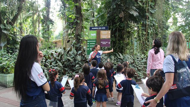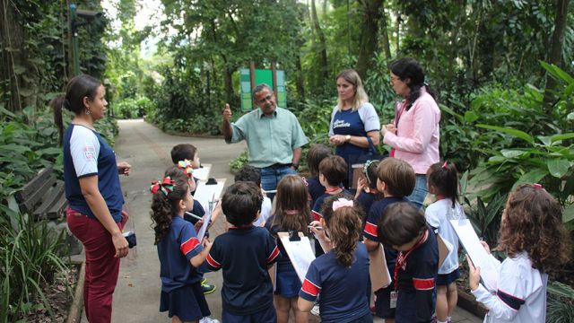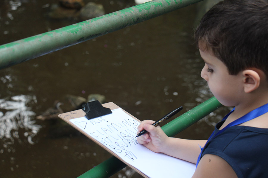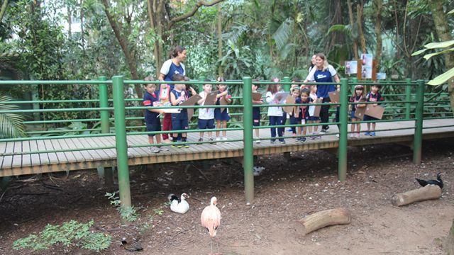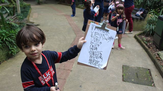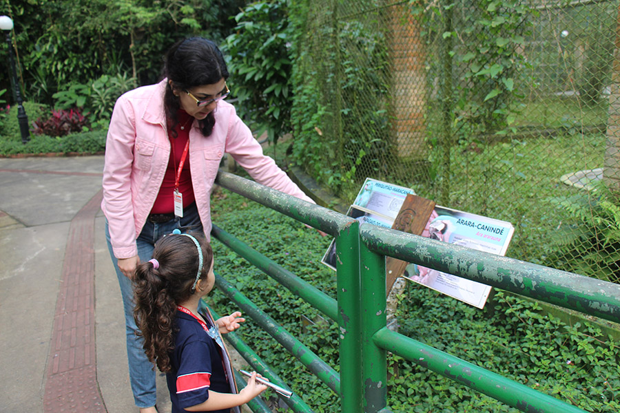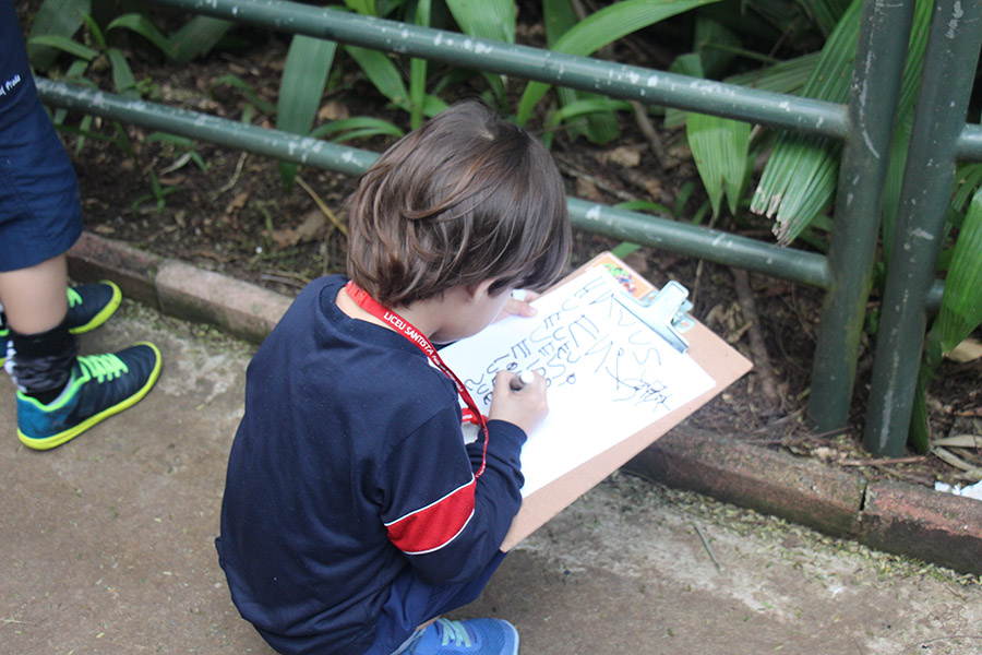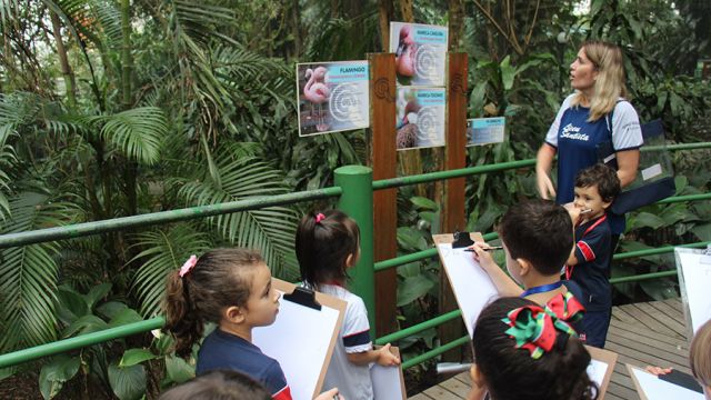 Os pequeninos do Grupo 4 C da Educação Infantil foram ao Orquidário Municipal de Santos para observar e registrar informações sobre pássaros e aves. Munidos de pranchetas e canetas, os alunos tiveram liberdade de expressar o que viam e descobriam durante a vista aos espaços. A atividade, que contempla a área de práticas de linguagem, proporcionou às crianças a análise das características de algumas espécies, procedimentos de leitura e de escrita nas situações de pesquisa.