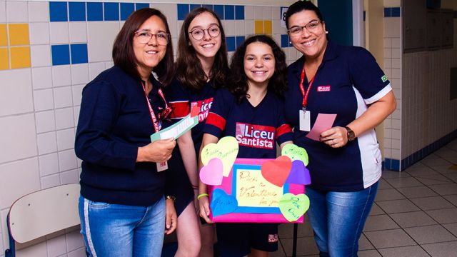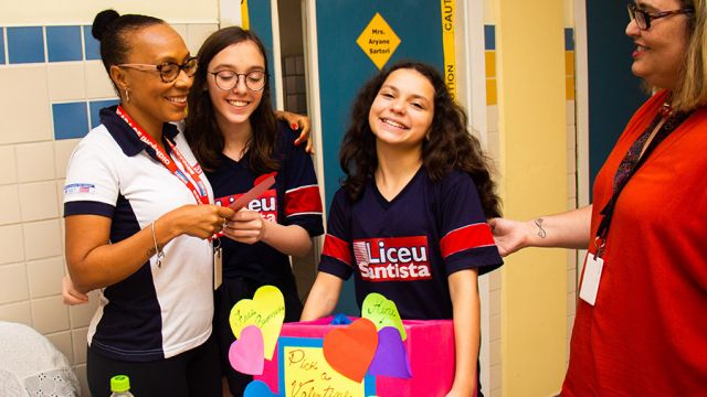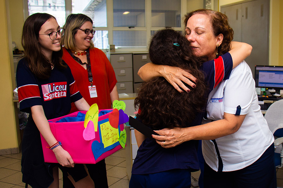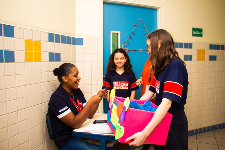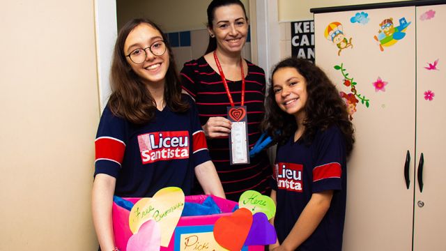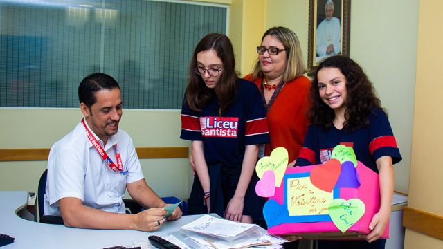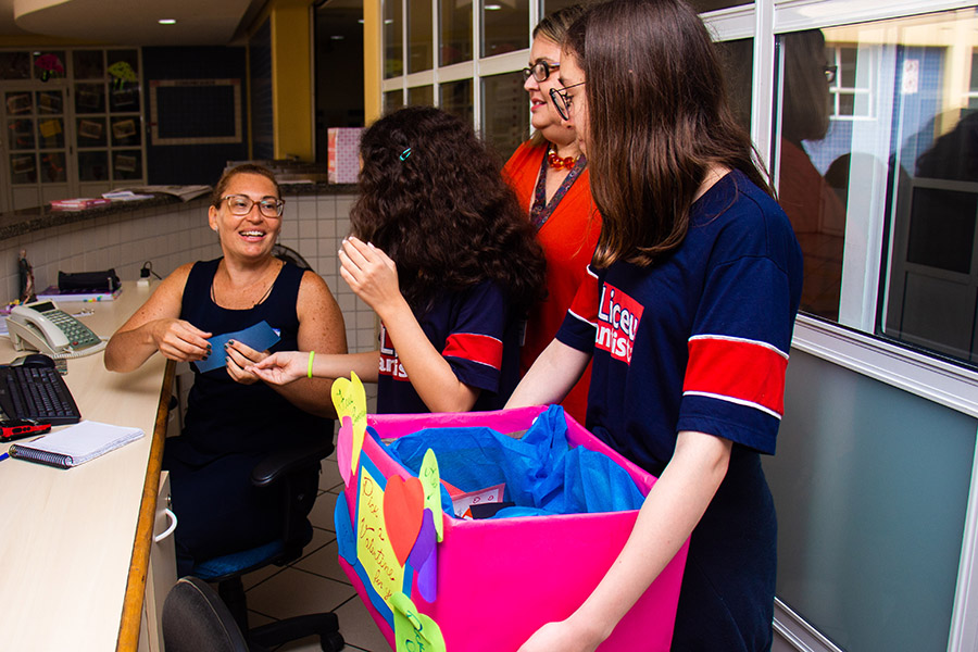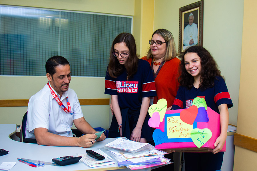 Aproveitando a tradição de trocar presentes, bombons e cartões nesse dia, os liceístas produziram marcadores de livros com mensagens especiais e os colocaram em uma caixa. Na sexta-feira, 14/02, duas alunas acompanhadas pela coordenadora entregaram as mensagens para professores, funcionários e colegas do Fundamental e do Médio. “O mais importante é a sensação de receber uma mensagem escrita com carinho e que simboliza respeito, carinho e amizade.”