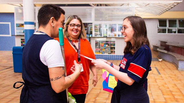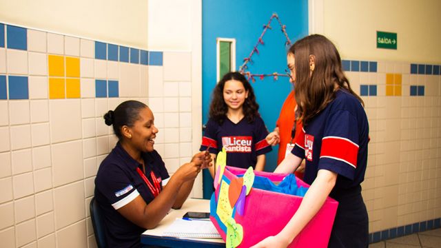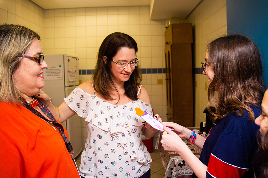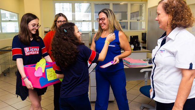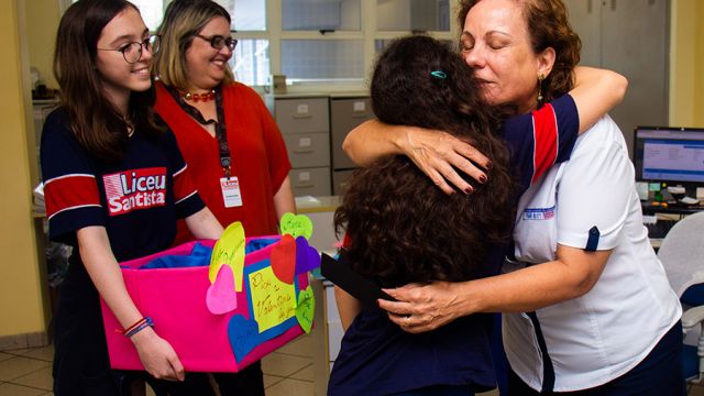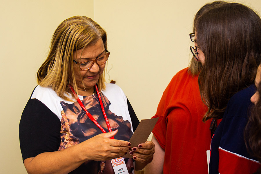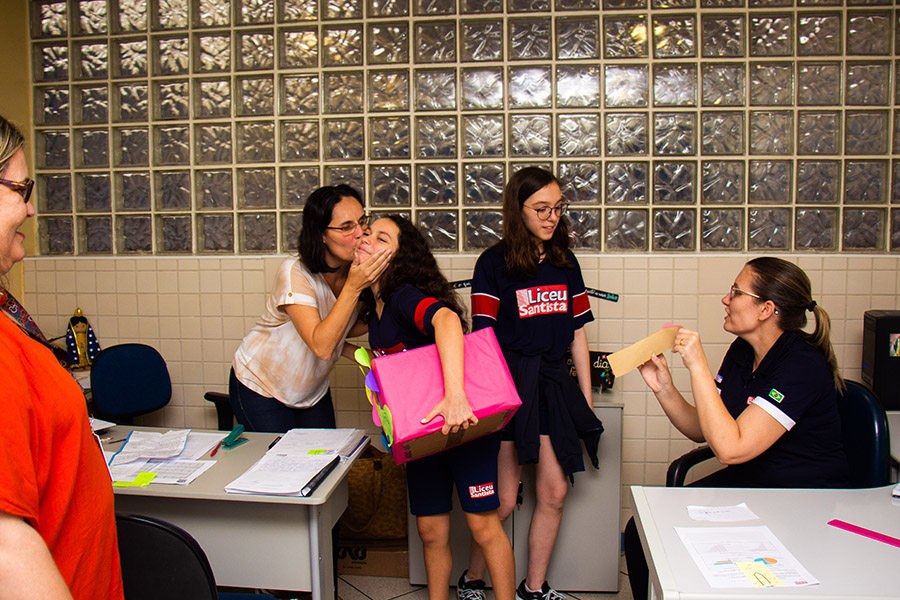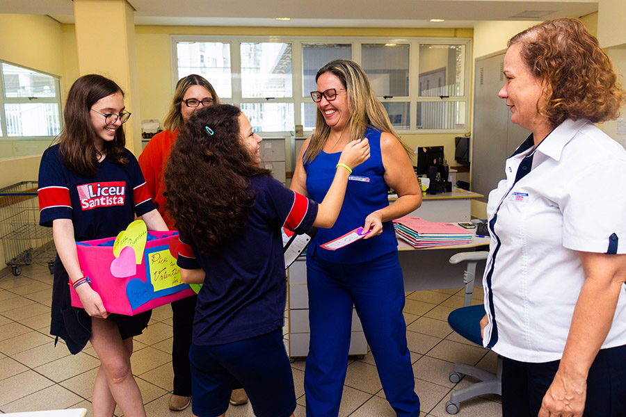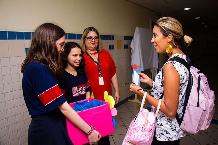 Aproveitando a tradição de trocar presentes, bombons e cartões nesse dia, os liceístas produziram marcadores de livros com mensagens especiais e os colocaram em uma caixa. Na sexta-feira, 14/02, duas alunas acompanhadas pela coordenadora entregaram as mensagens para professores, funcionários e colegas do Fundamental e do Médio. “O mais importante é a sensação de receber uma mensagem escrita com carinho e que simboliza respeito, carinho e amizade.”