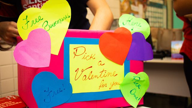 Alunos distribuem marcadores de livros no Valentine´s Day