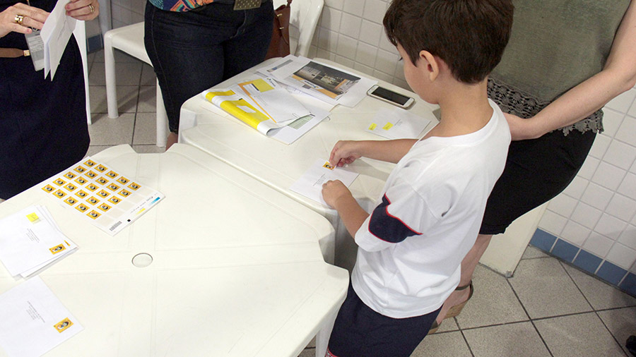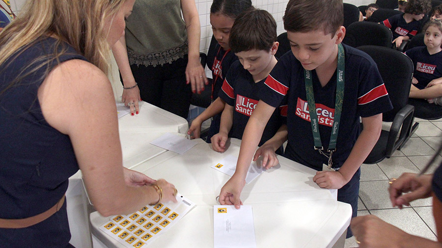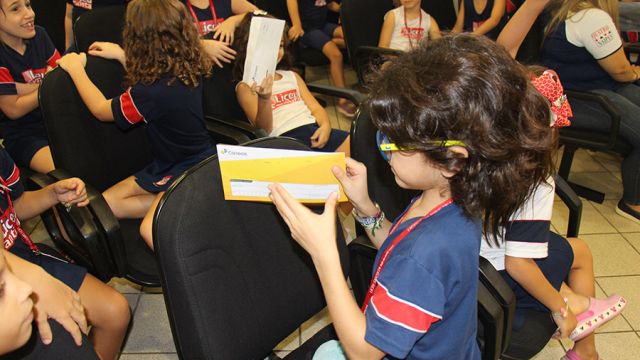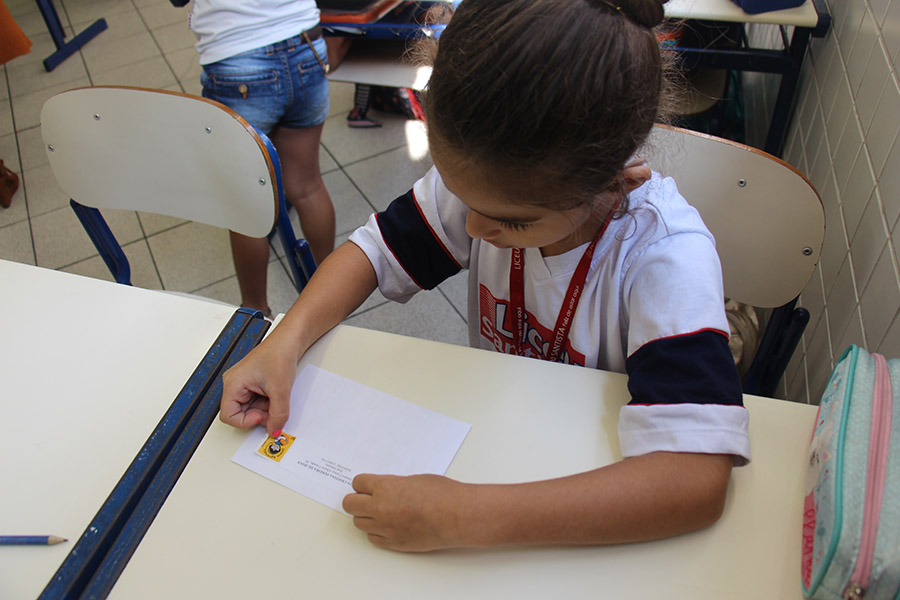 Após as explanações, os estudantes puderam colar os selinhos nos envelopes e abrir uma contagem regressiva para a cartinha chegar às suas casas e surpreender as mães.