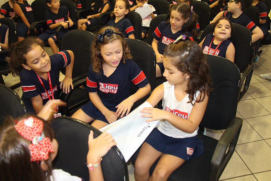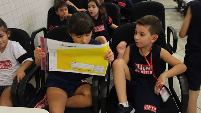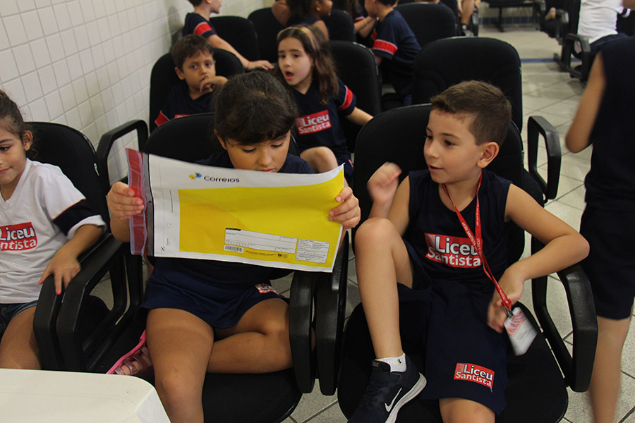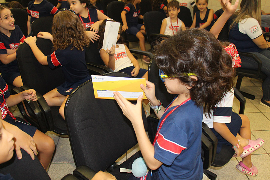 A atividade foi complementada com a presença de representantes dos Correios, que tiraram dúvidas dos liceístas sobre a empresa e todo o processo para a entrega das correspondências, desde os tipos de envelopes, separação por endereço, transporte, carteiros até chegar aos destinatários.