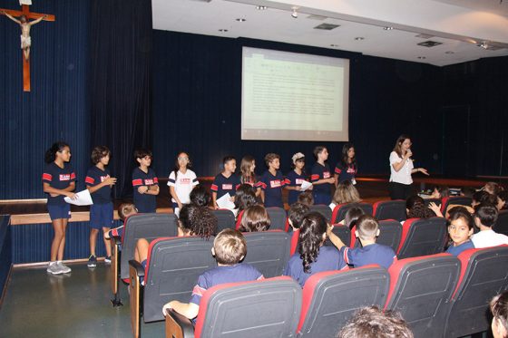 Com o auxílio da coordenação e das professoras, representantes de cada classe destacaram as ações necessárias para uma convivência harmoniosa. Entre elas, o respeito ao espaço e às pessoas que convivem, a importância de trabalhar a prevenção, contribuir para a higiene do pátio, combinação prévia dos lugares para brincar de corrida, buscar a verdade sobre os conflitos, criar boas relações durante o recreio, respeitar as regras e a opinião do outro.