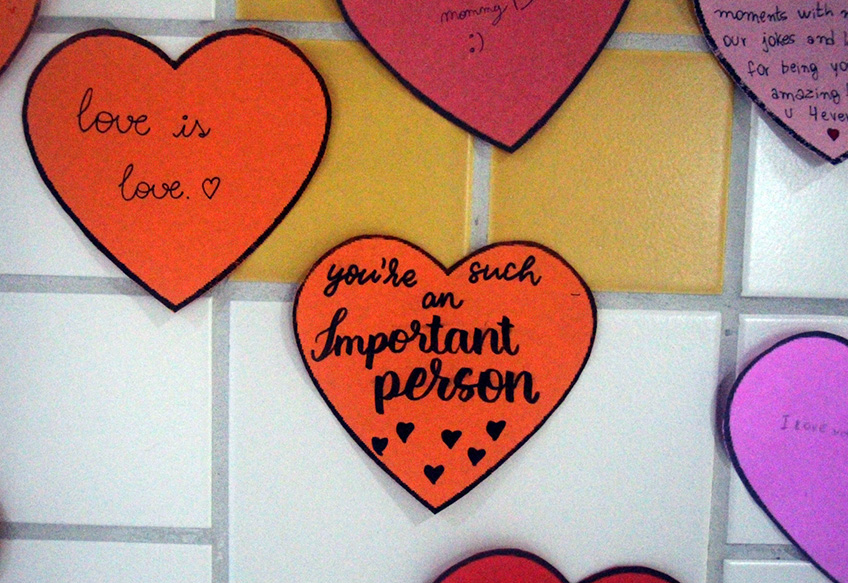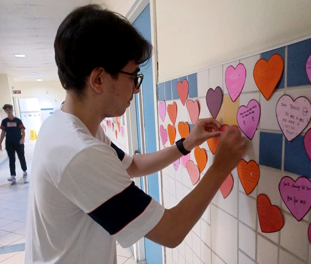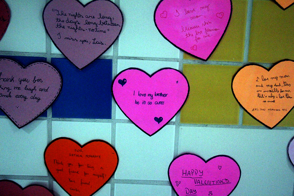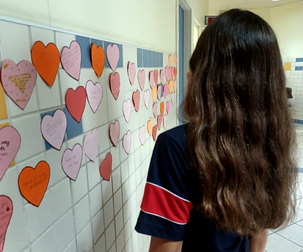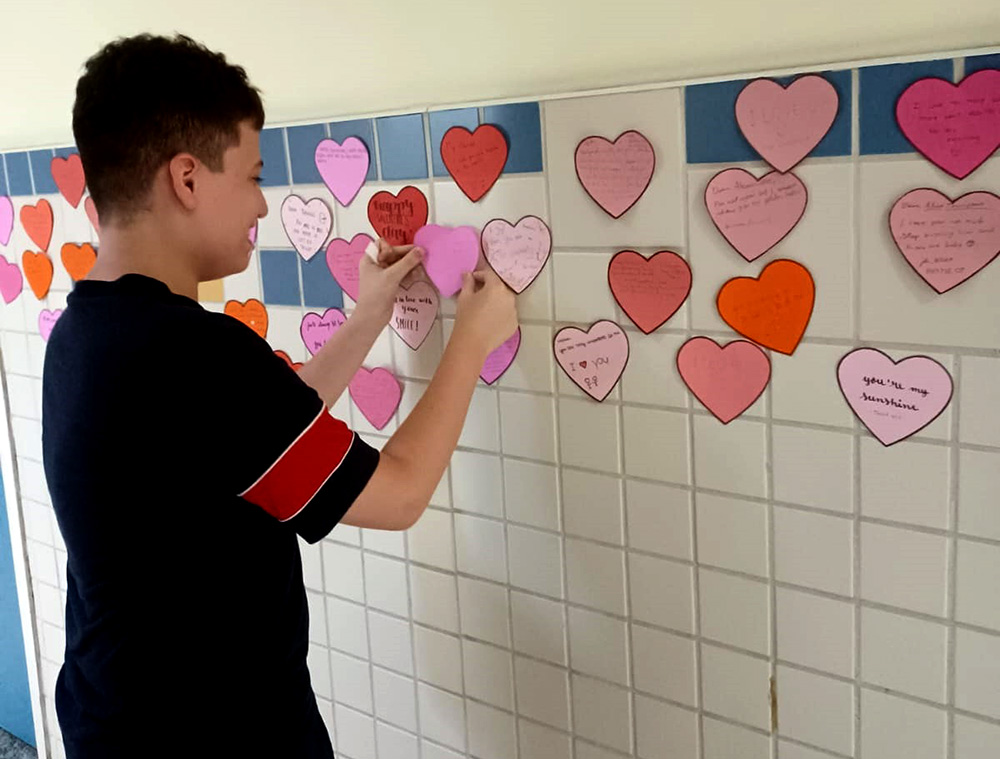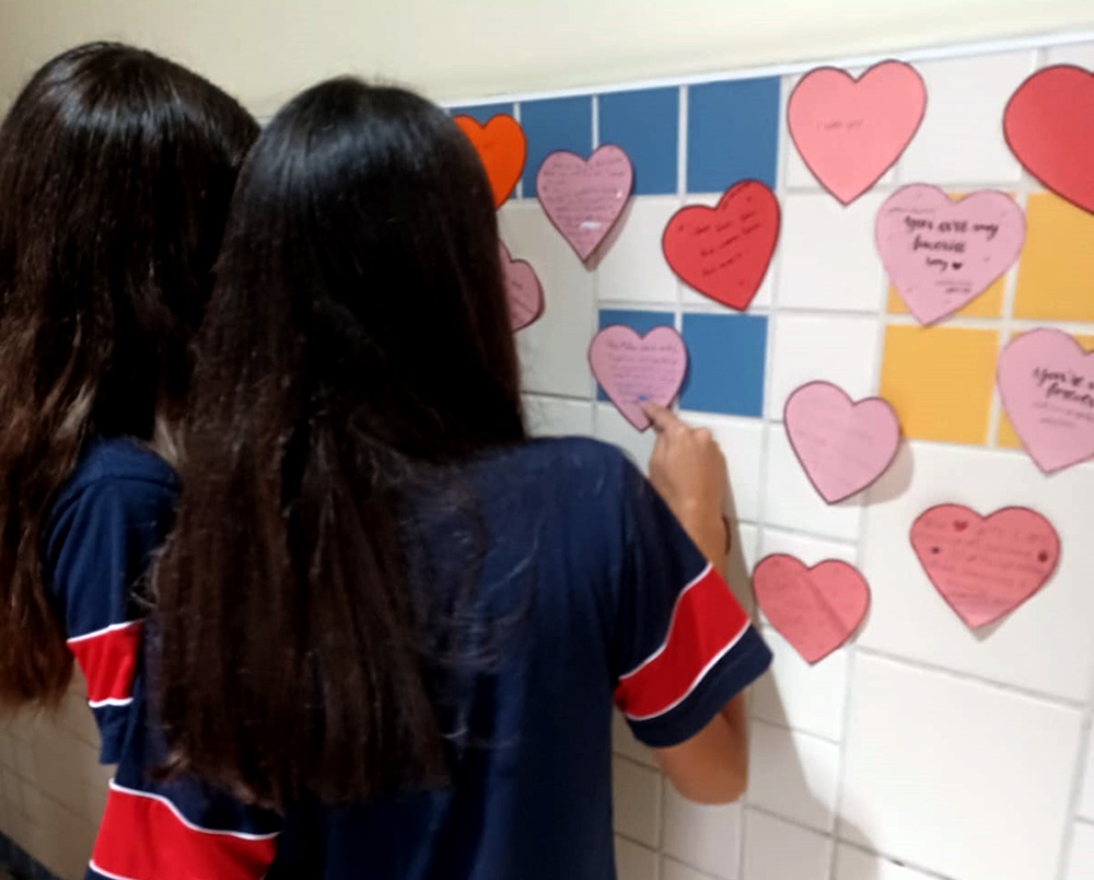 Os estudantes a partir do 6º ano do Ensino Fundamental até o Ensino Médio produziram recadinhos para demosntrar aos seus amigos e familiares o quão importantes eles são na convivência diária. A atividade integra a programação do Ensino Bilíngue para lembrar o Valentine´s Day, comemorado em 14 de fevereiro nos Estados Unidos, Inglaterra e em outros países de língua inglesa.
