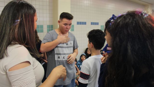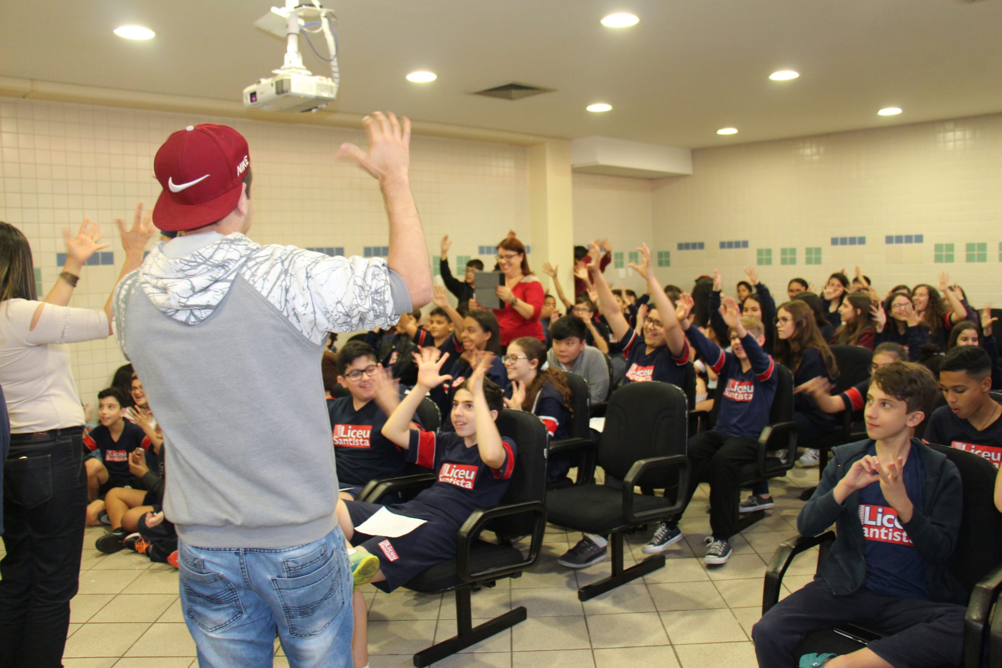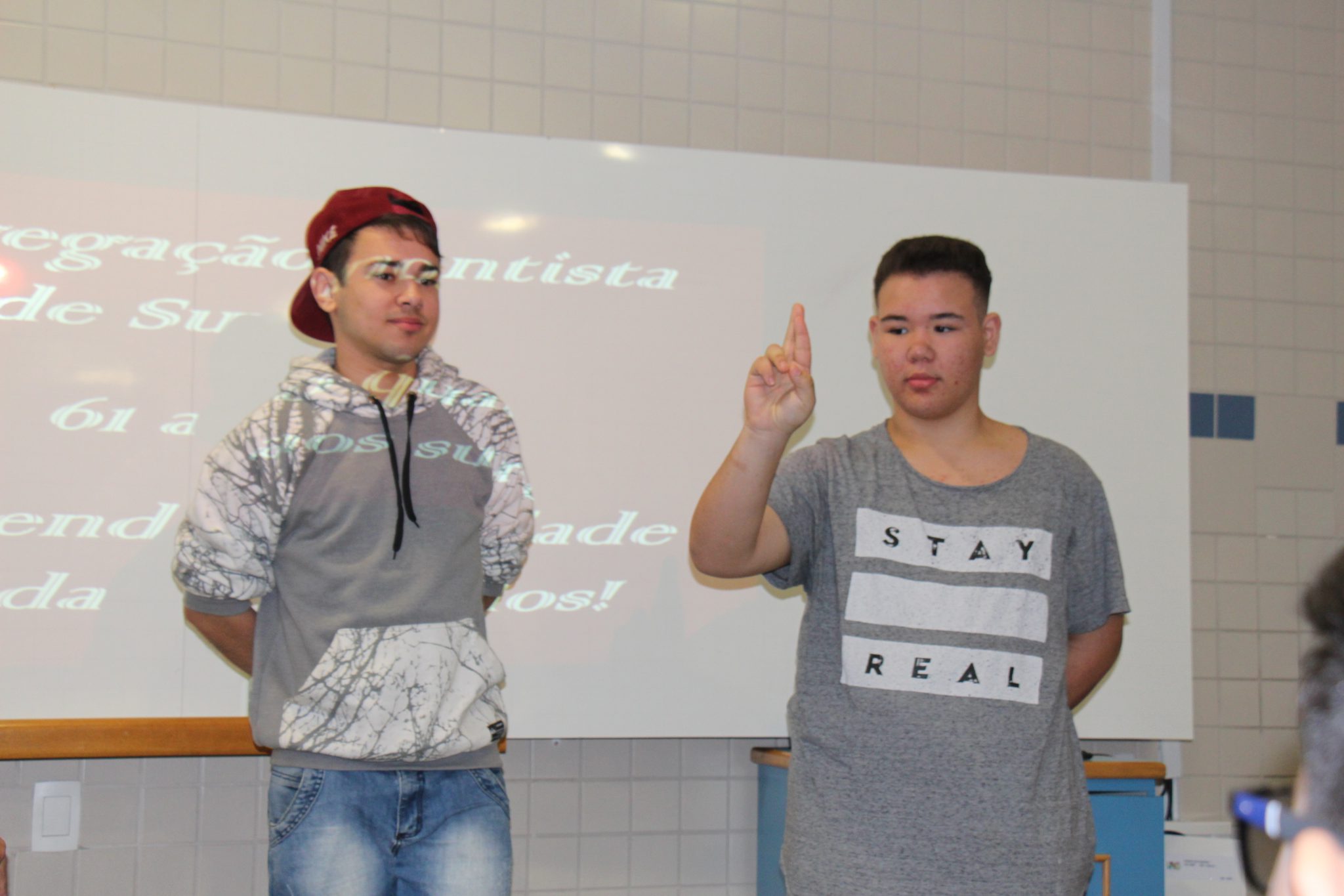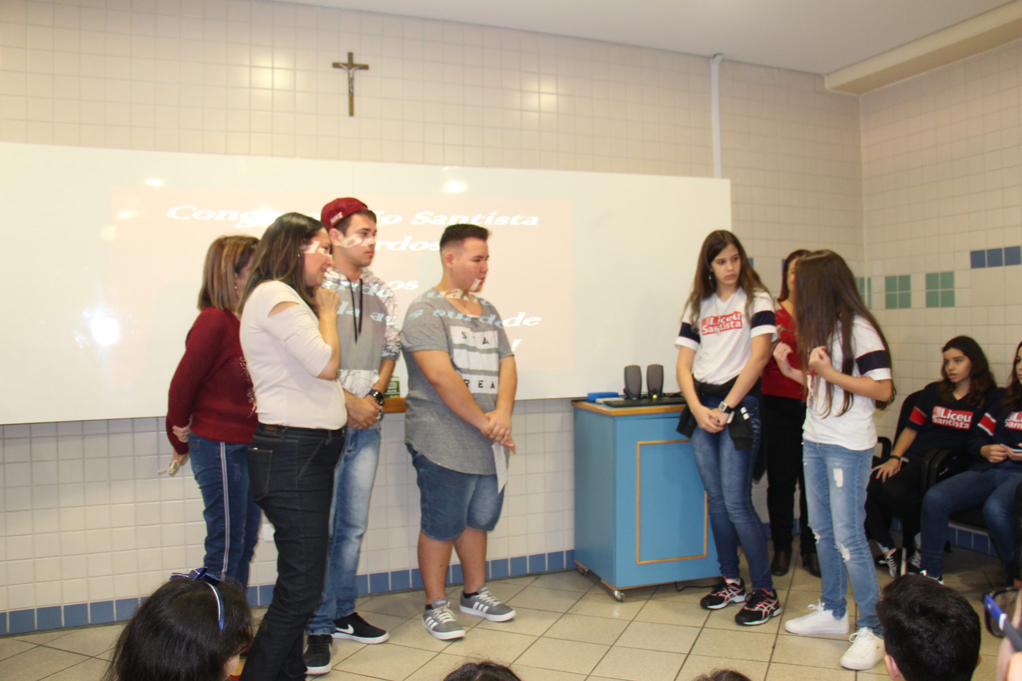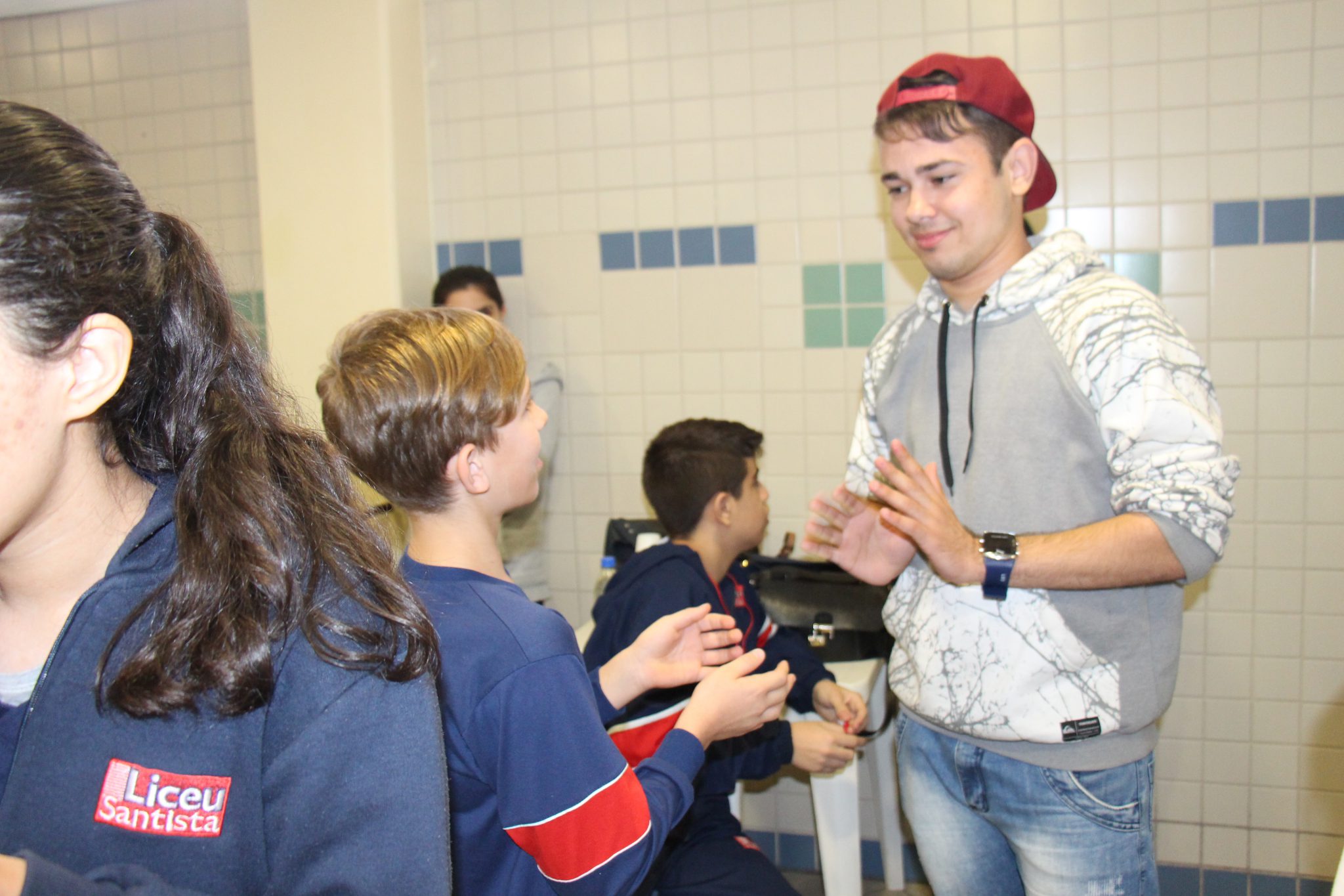 Durante as aulas de Ensino Religioso, os liceístas pesquisaram o alfabeto em LIBRAS e expressões de rápida comunicação, como agradecimentos, cumprimentos e apresentação pessoal. No dia do encontro, puderam interagir com os rapazes na língua de sinais e aprender novas palavras.