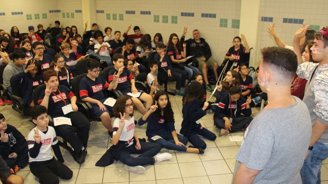 Os alunos também tiveram um momento de pura descontração. A famosa brincadeira do telefone sem fio, que mostra os ruídos de comunicação no envio de uma mensagem, também pôde ser feita utilizando as LIBRAS. Caio fez um sinal que os liceístas tinham de repassar para os amigos até chegar ao Wesley, que estava no final da fila. E adivinhe: como na brincadeira do cochicho, o recado que chegou também não correspondia ao inicial.