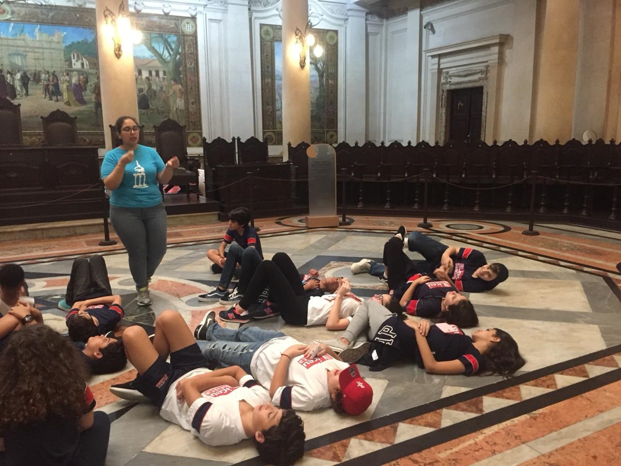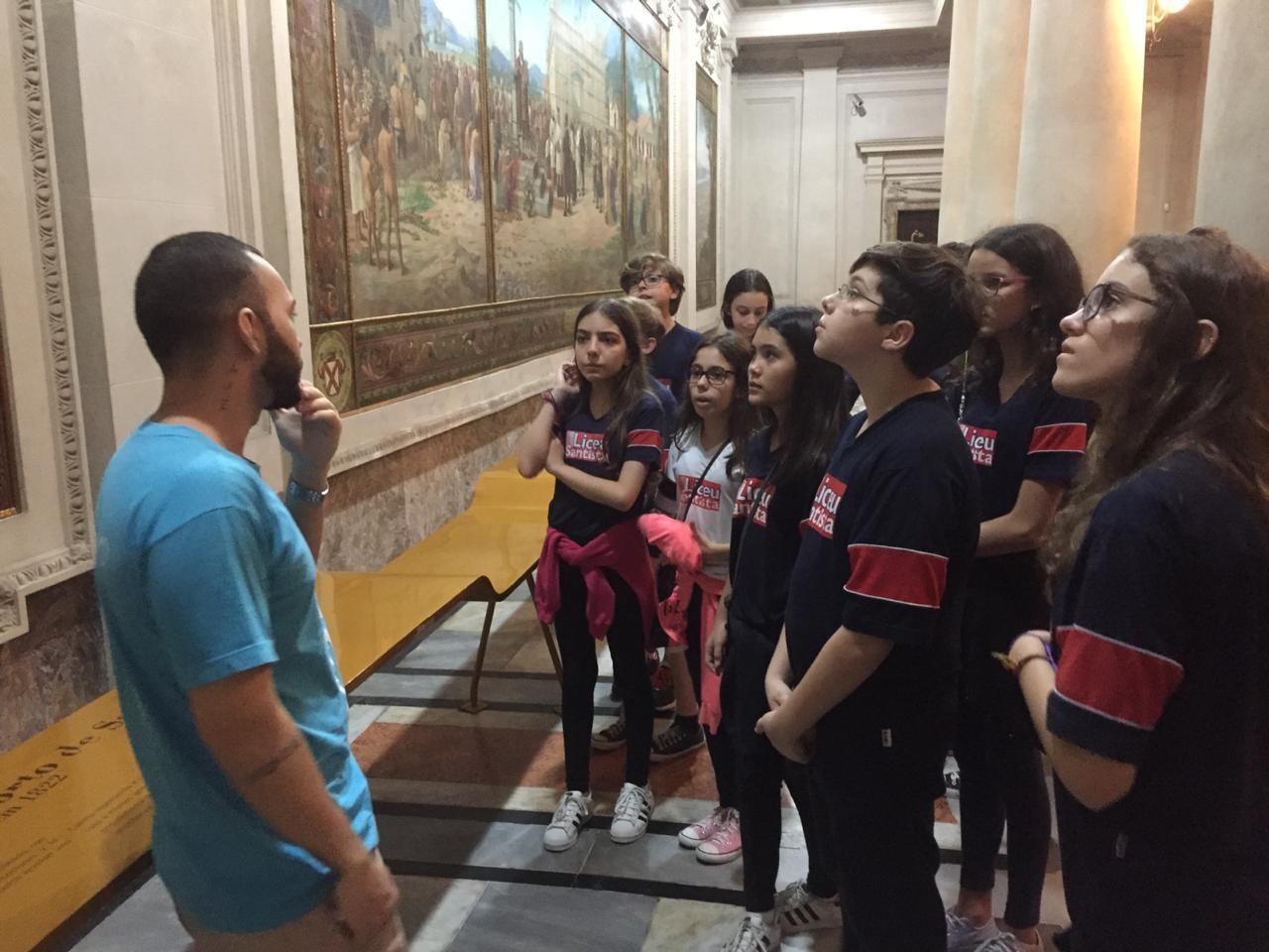 Na Sala de Pregões, os liceístas observaram uma clarabóia com vitral de Benedito Calixto, representando as riquezas do Brasil Colônia, Império e República, a lenda de Anhangüera, Brás Cubas (fundador da Cidade) e bandeirantes como Fernão Dias e Raposo Tavares.