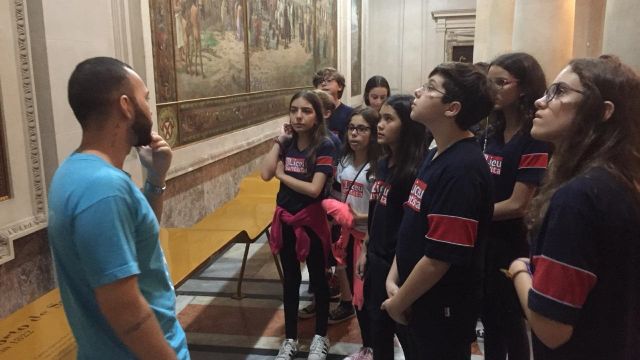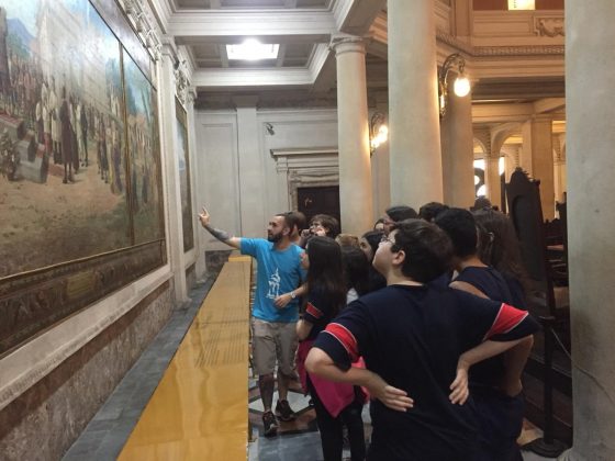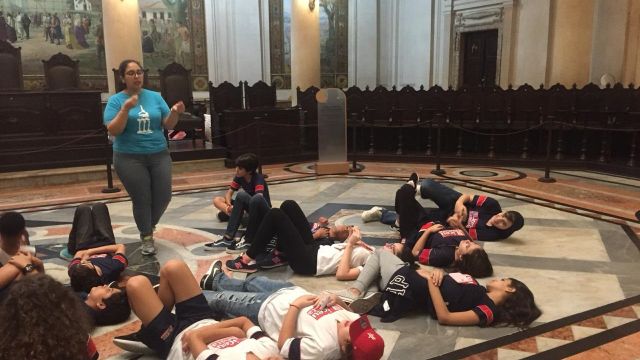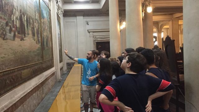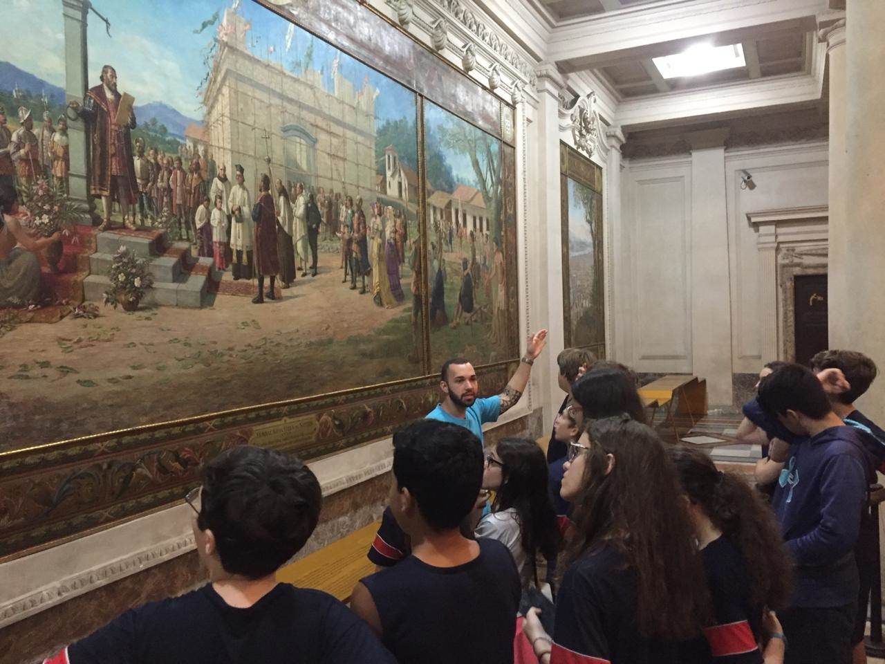Instalado em um prédio de estilo eclético que reúne tradição, arquitetura e história, o Museu do Café – localizado na Bolsa Oficial do Café no Centro Histórico de Santos – resgata a importância do principal produto brasileiro de exportação no final do século 19. A experiência de visitar o espaço, inaugurado em 1998, foi bastante aproveitada pelos alunos do 7º ano do Ensino Fundamental, que, além de apreciarem as obras de arte e mobiliário de época, também aprenderam sobre o ciclo do café, desde o cultivo do grão até a sua consolidação como um dos símbolos nacionais.