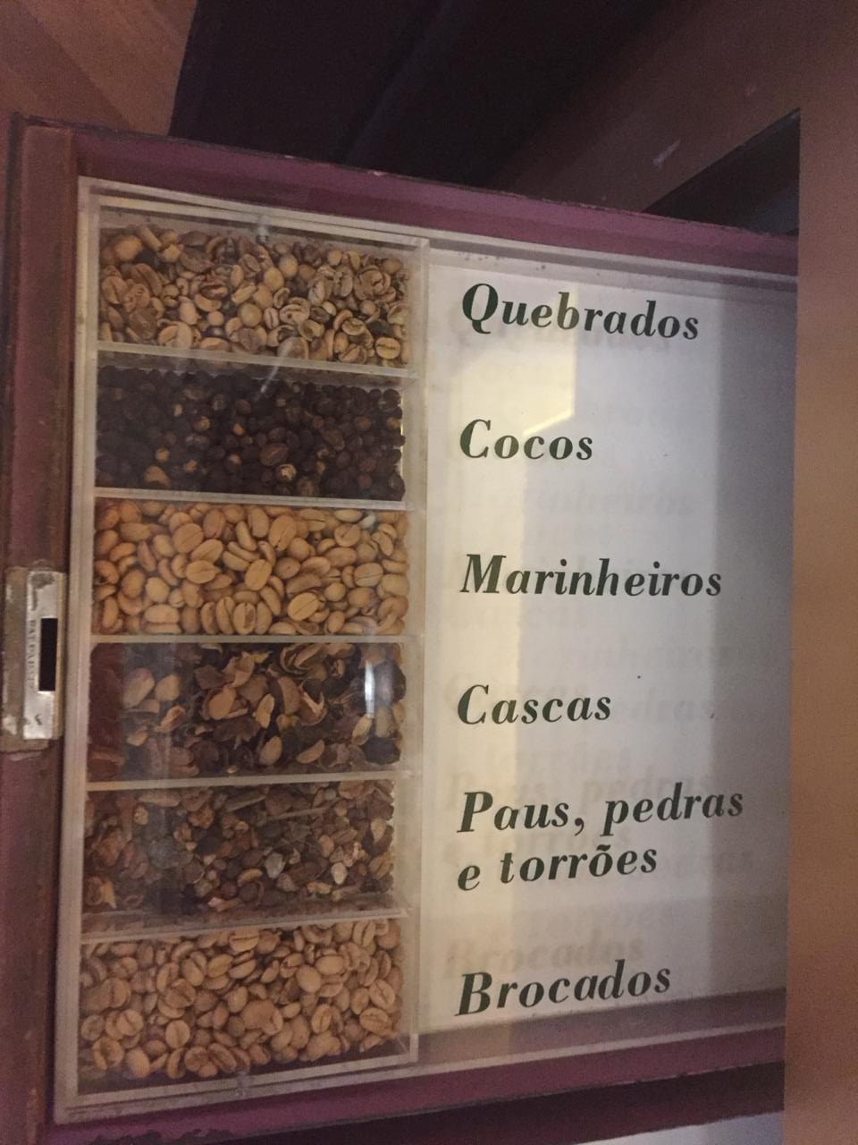 Dividida em quatro módulos, oferece aos visitantes uma visão geral de uma das maiores riquezas brasileiras. O primeiro deles ,”Da planta à xícara”, conta com uma estufa de café e objetos do acervo; o segundo conta a história do café em uma linha do tempo. “A praça de Santos” é retratada no terceiro módulo e “Artes e ofícios”traz como foco o edifício da Bolsa Oficial de Café e sua arquitetura.