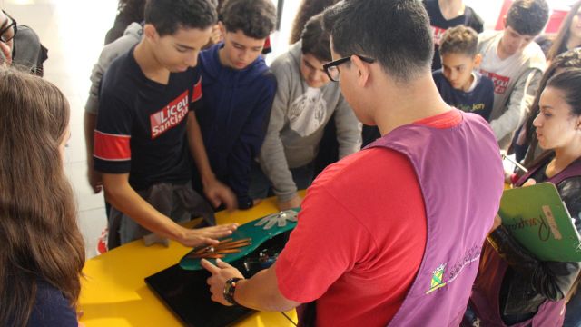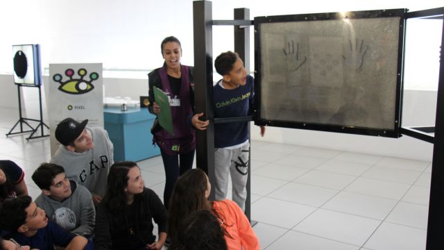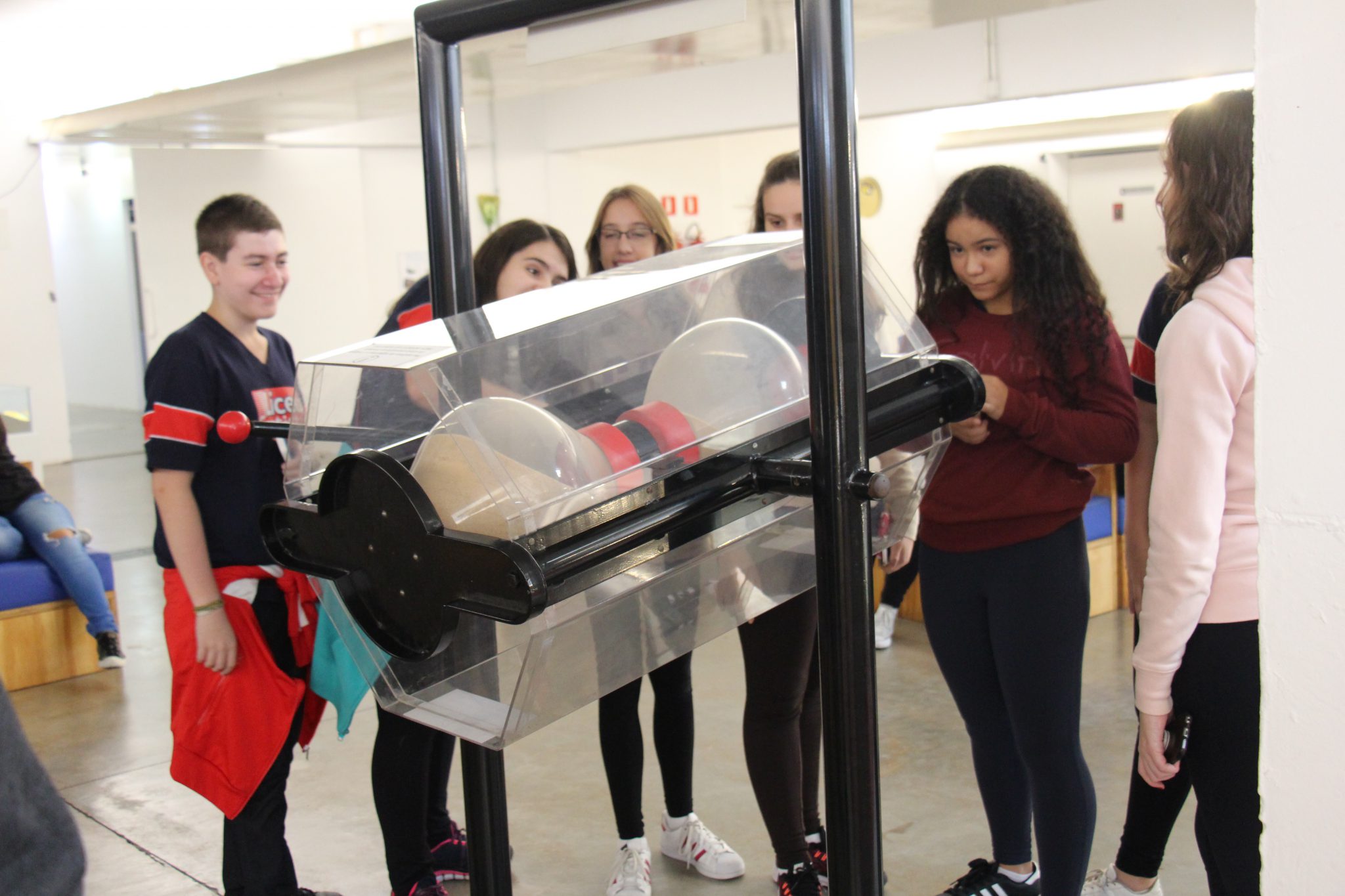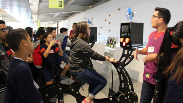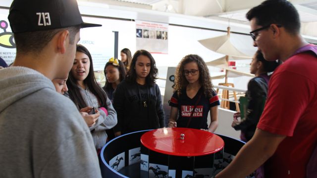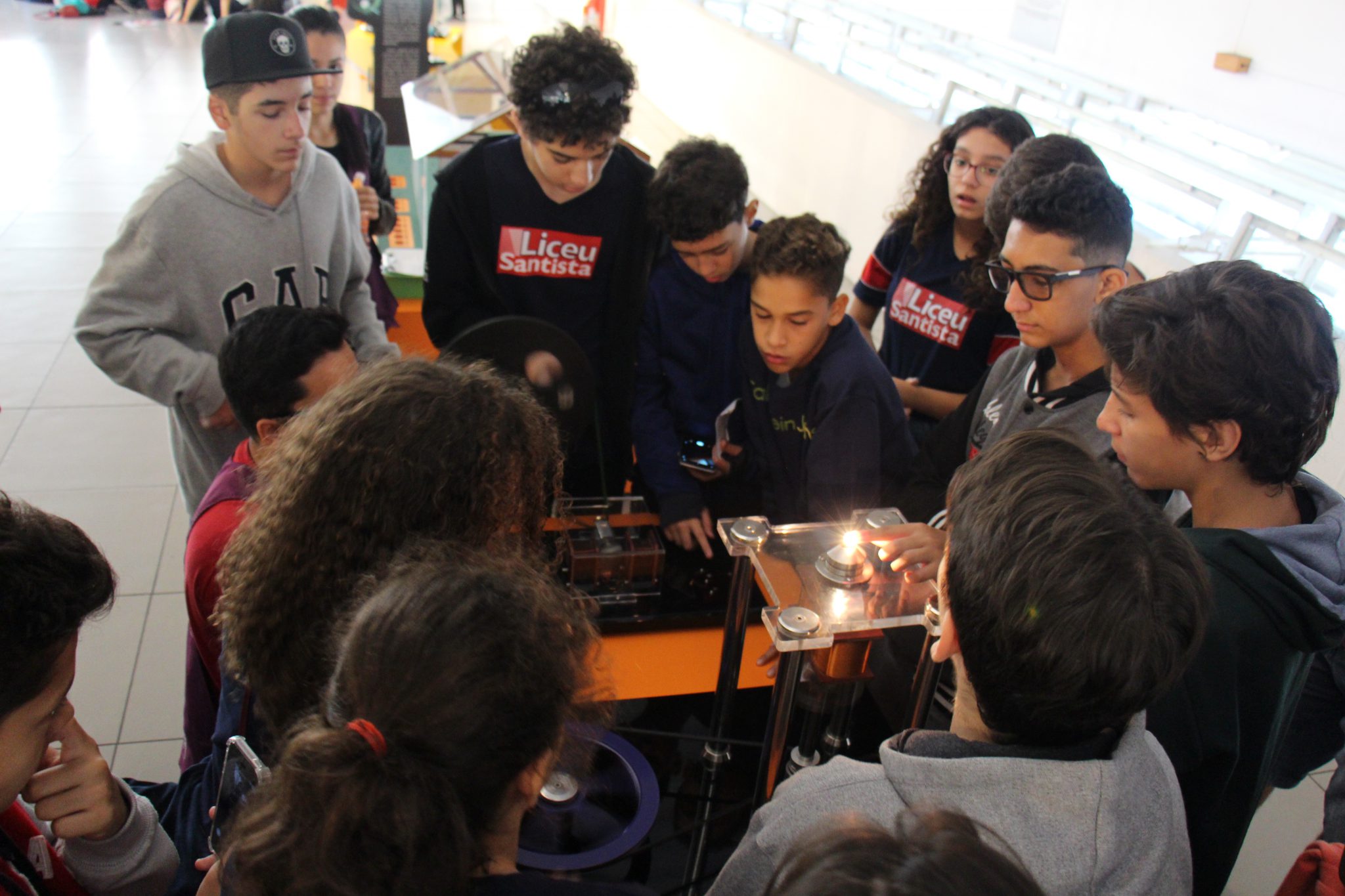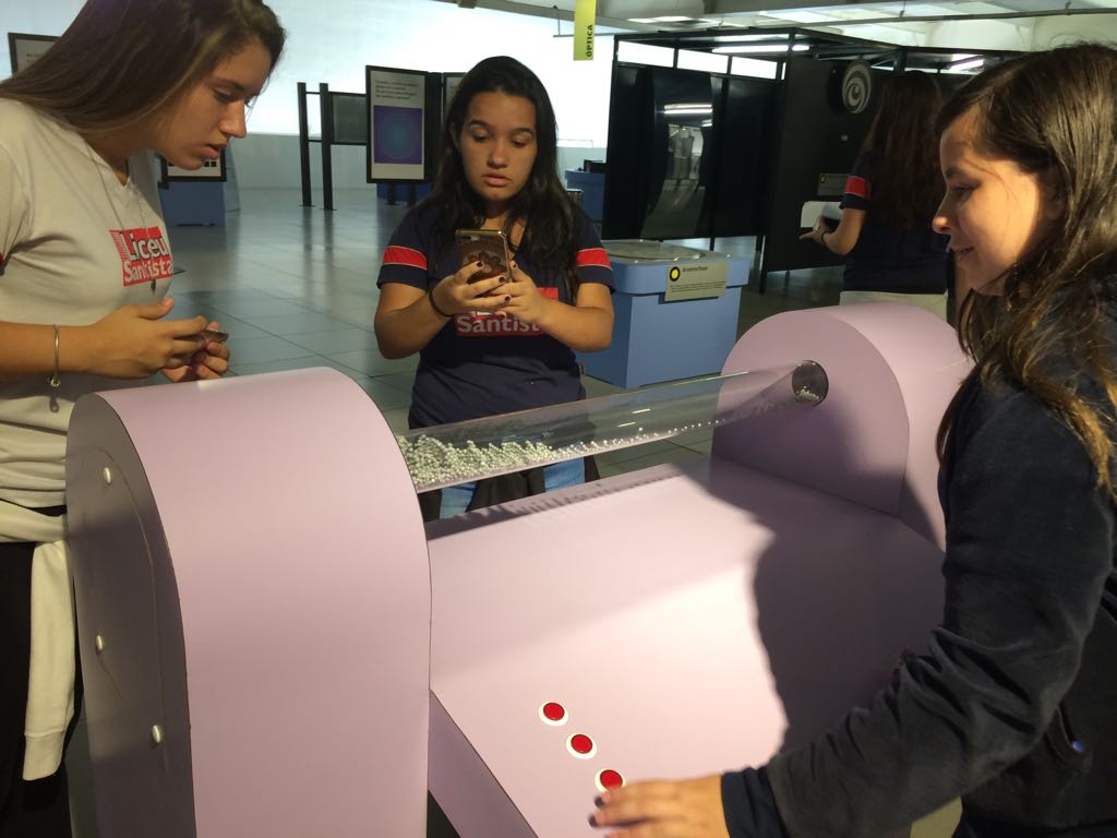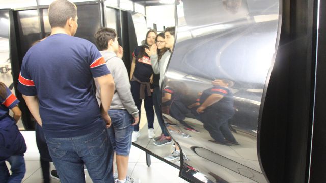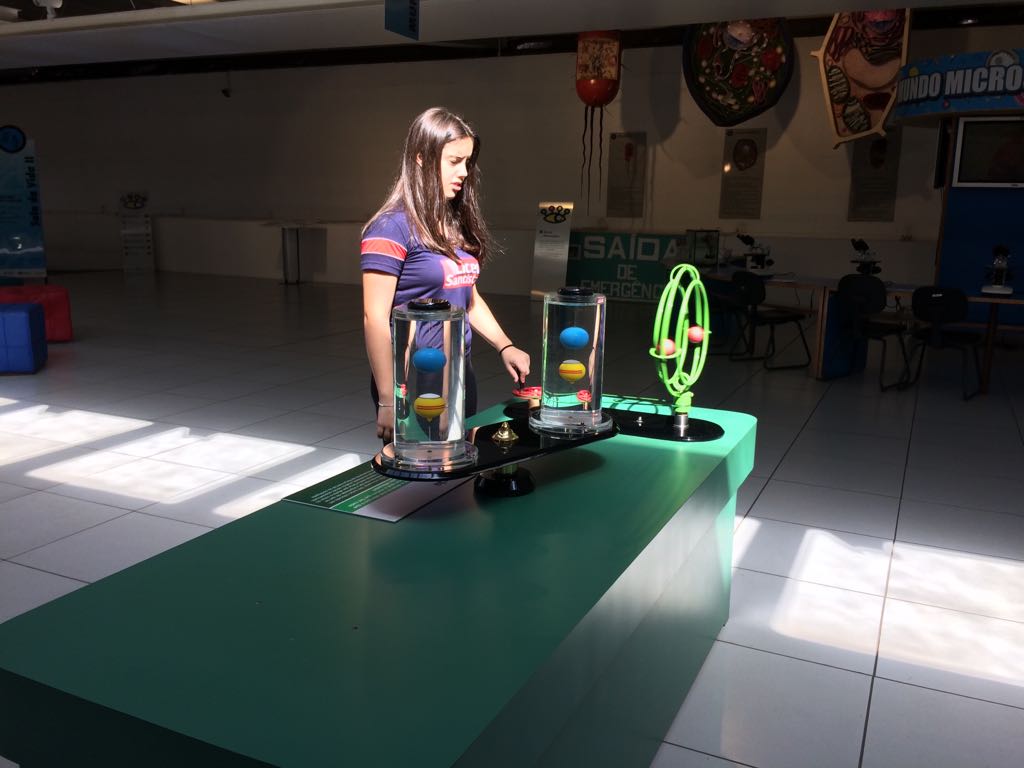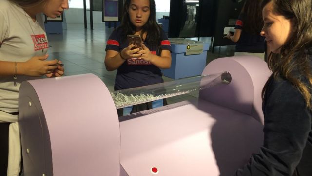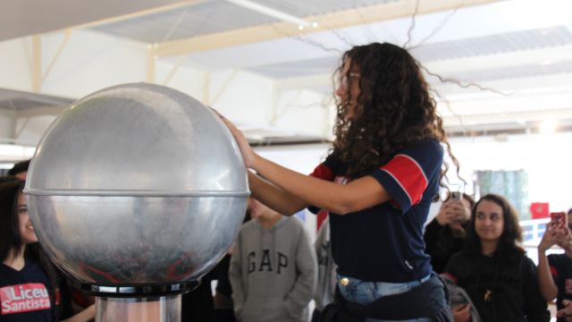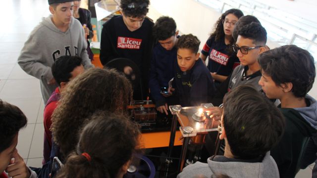 Com o auxílio de monitores, os estudantes vivenciaram experimentos na área da Mecânica (com balanças, engrenagens e polias), dinâmica dos fluidos (gerador de tornados) e Leis de Newton. Em eletricidade, destaque para o Gerador de Van de Graaff (que arrepia os cabelos dos participantes), condutores e isolantes. Em Óptica, os alunos conheceram um espaço dedicado ao estudo da luz e de suas propriedades.