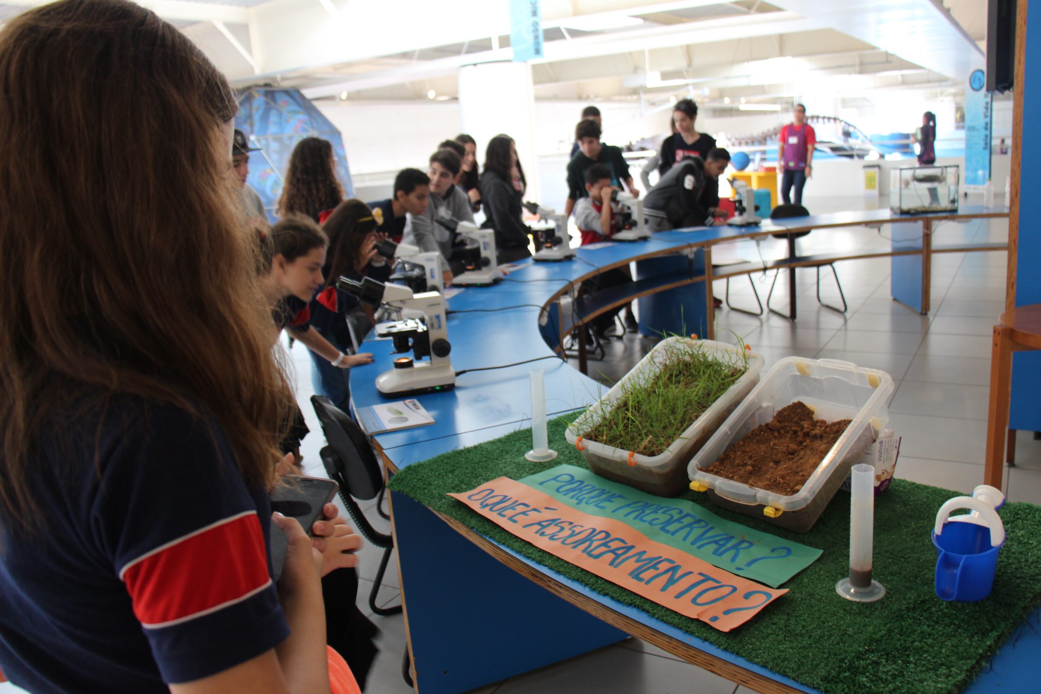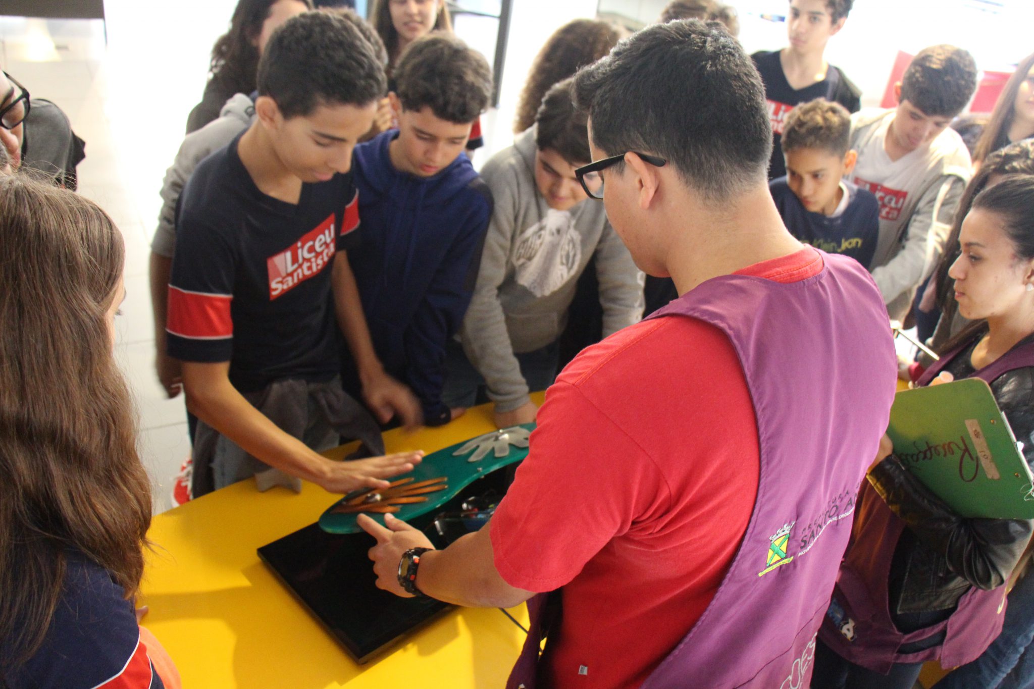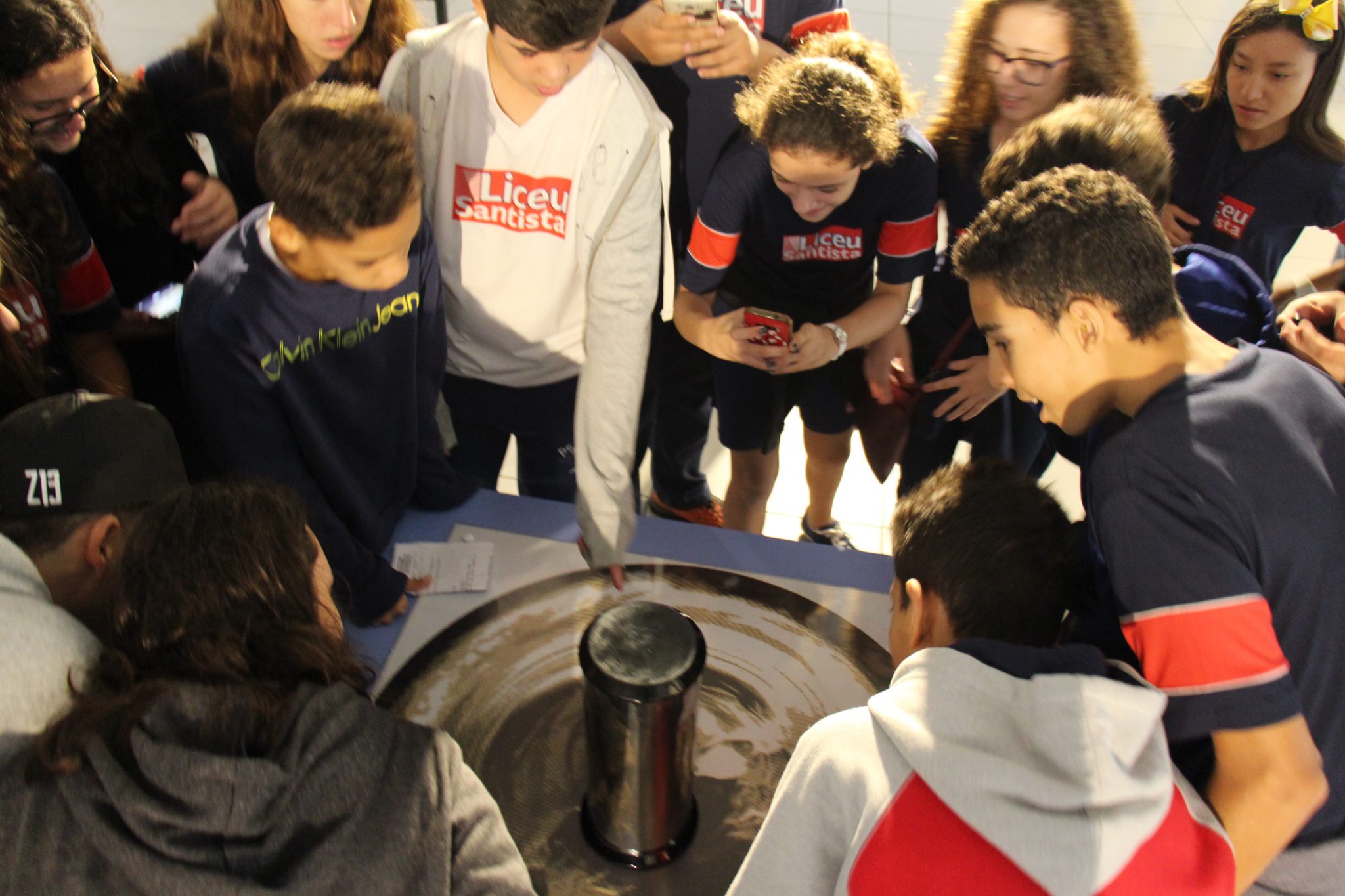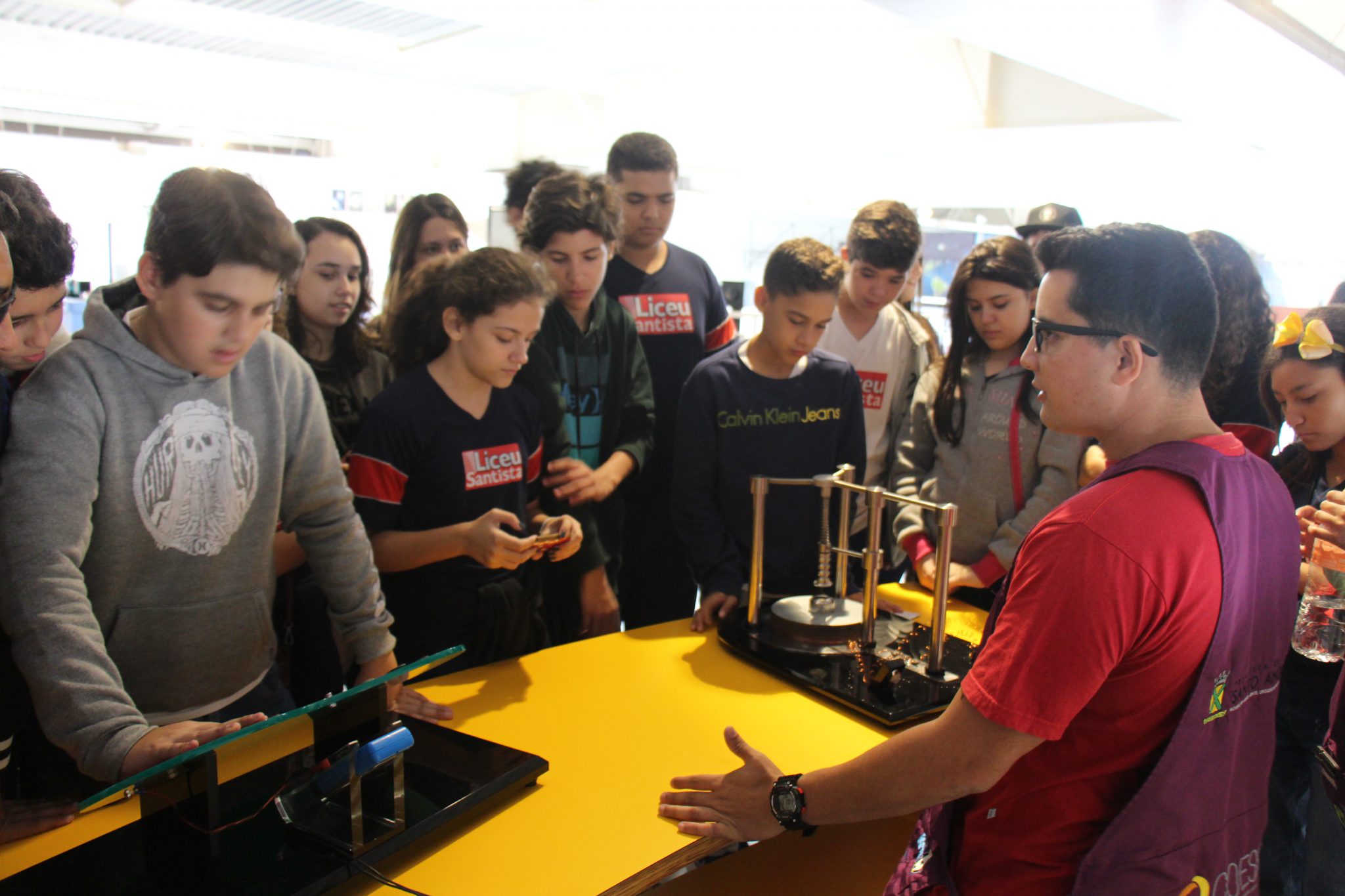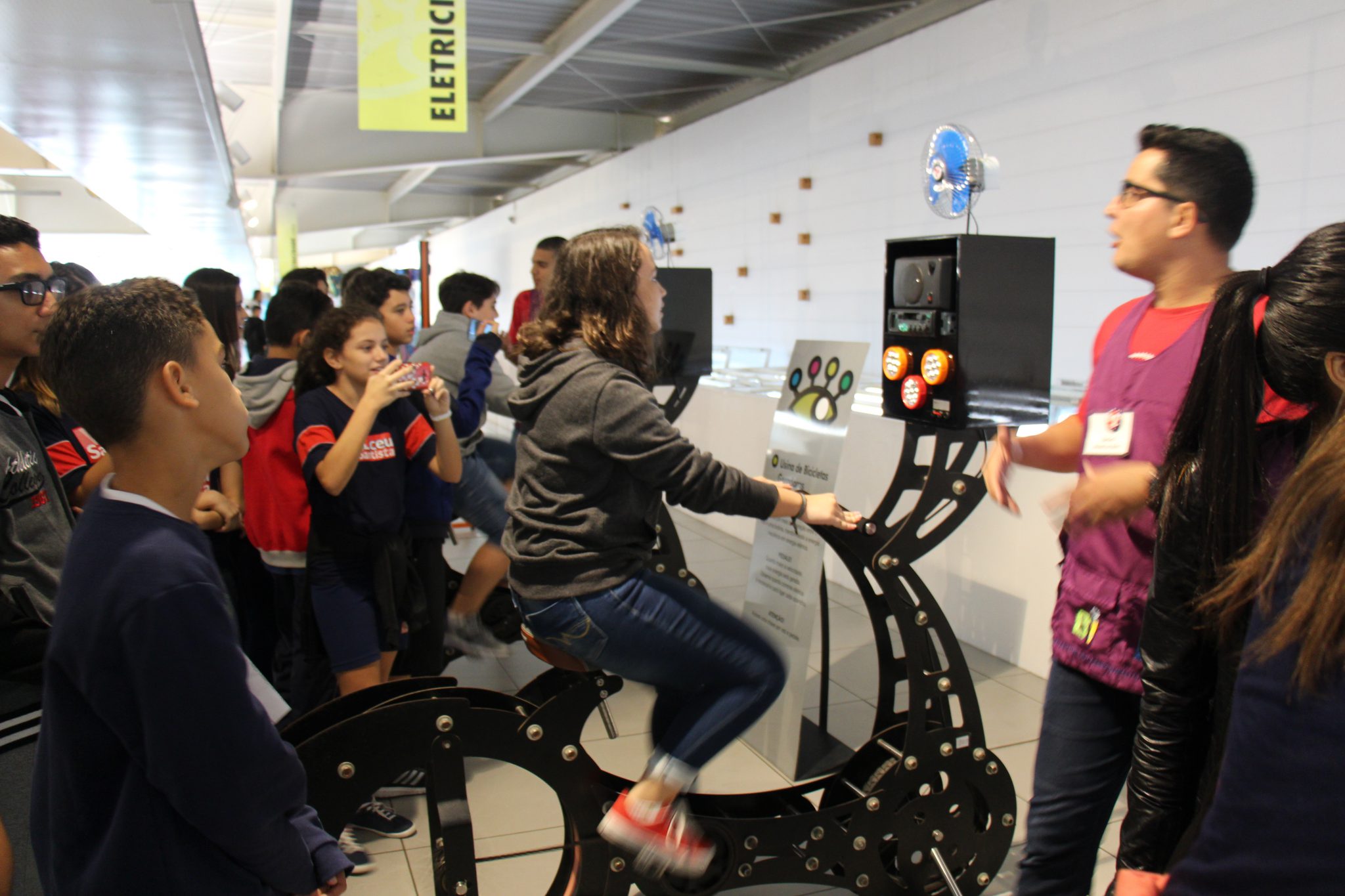 Com o auxílio de monitores, os estudantes vivenciaram experimentos na área da Mecânica (com balanças, engrenagens e polias), dinâmica dos fluidos (gerador de tornados) e Leis de Newton. Em eletricidade, destaque para o Gerador de Van de Graaff (que arrepia os cabelos dos participantes), condutores e isolantes. Em Óptica, os alunos conheceram um espaço dedicado ao estudo da luz e de suas propriedades.