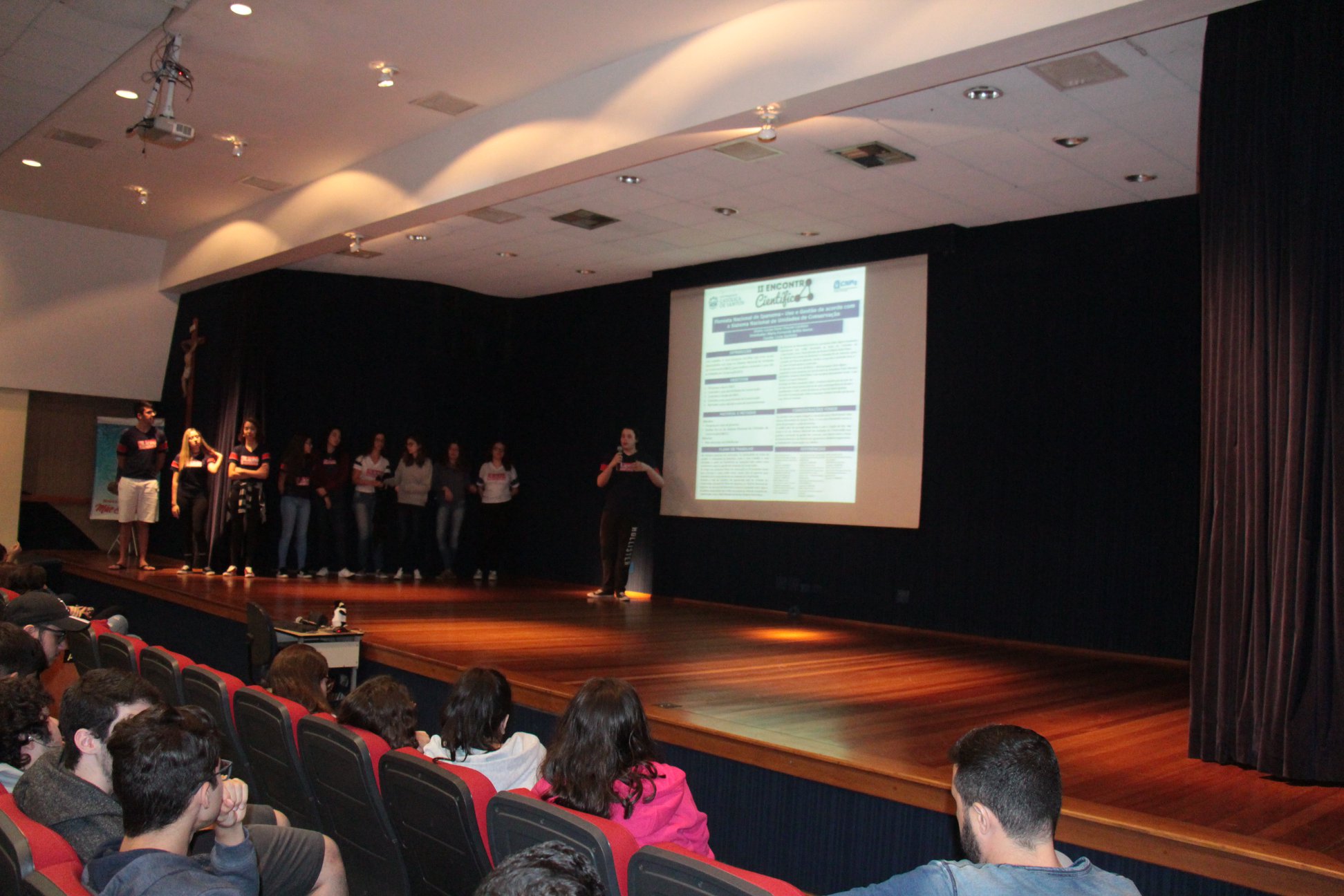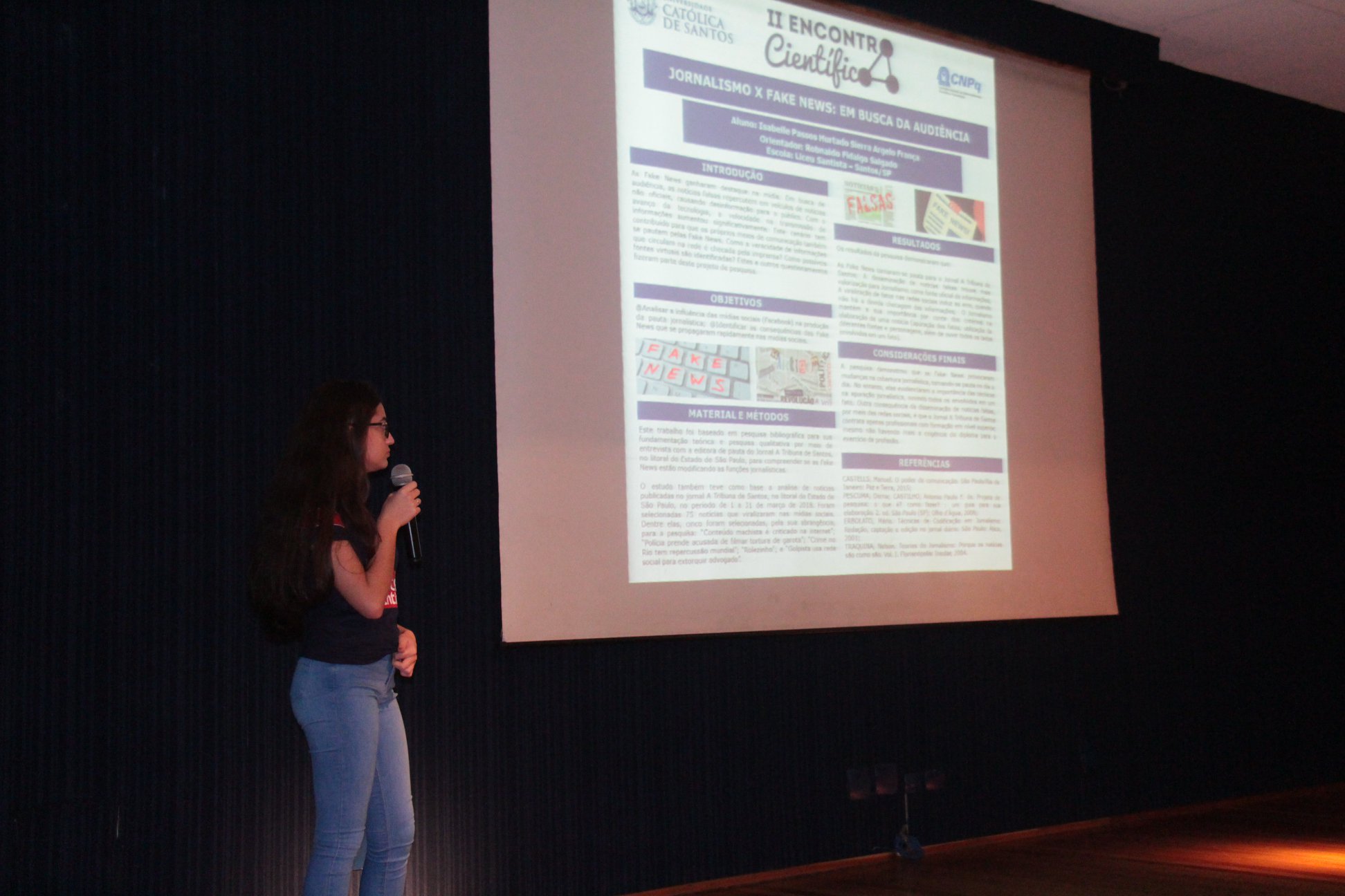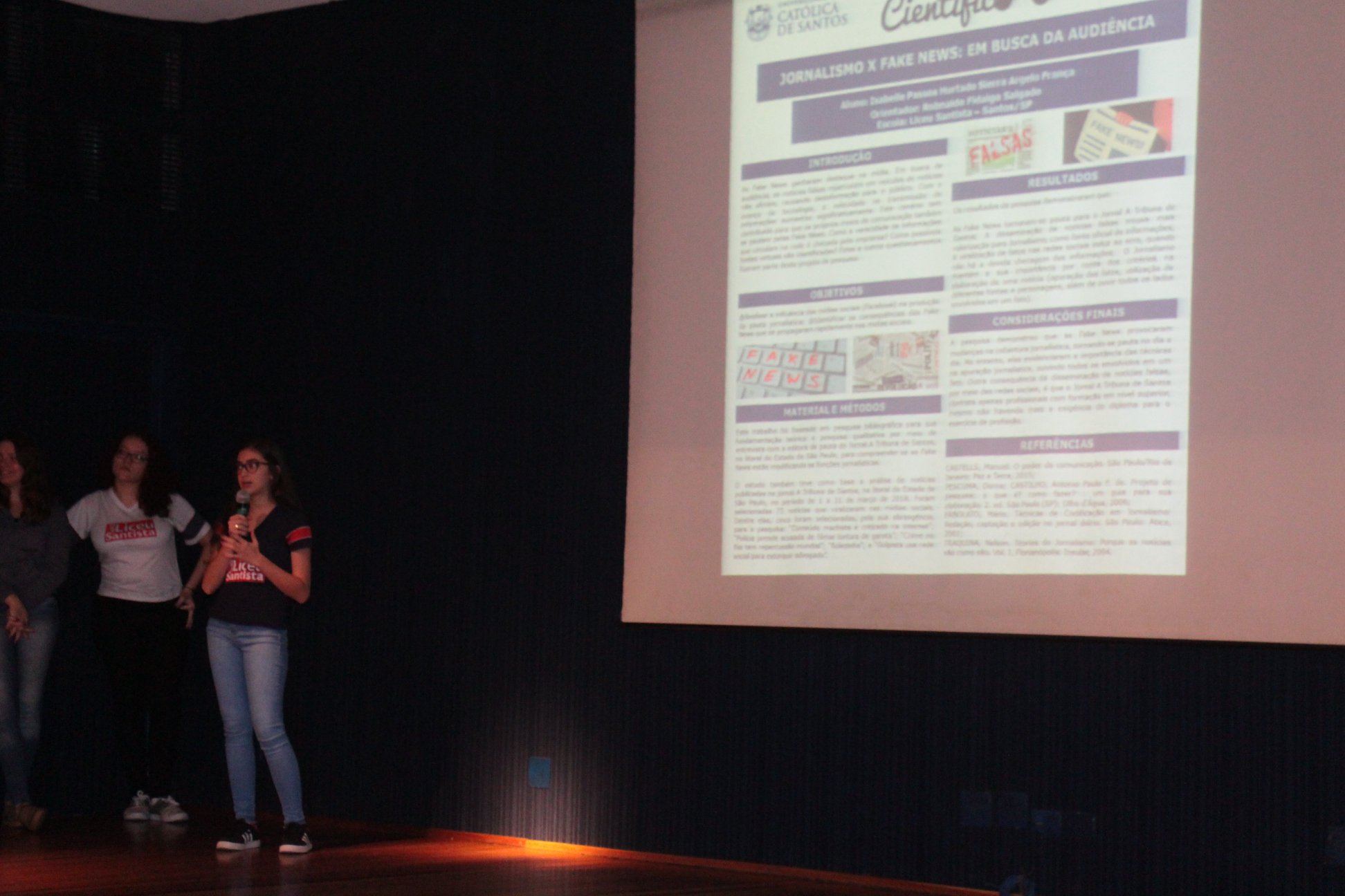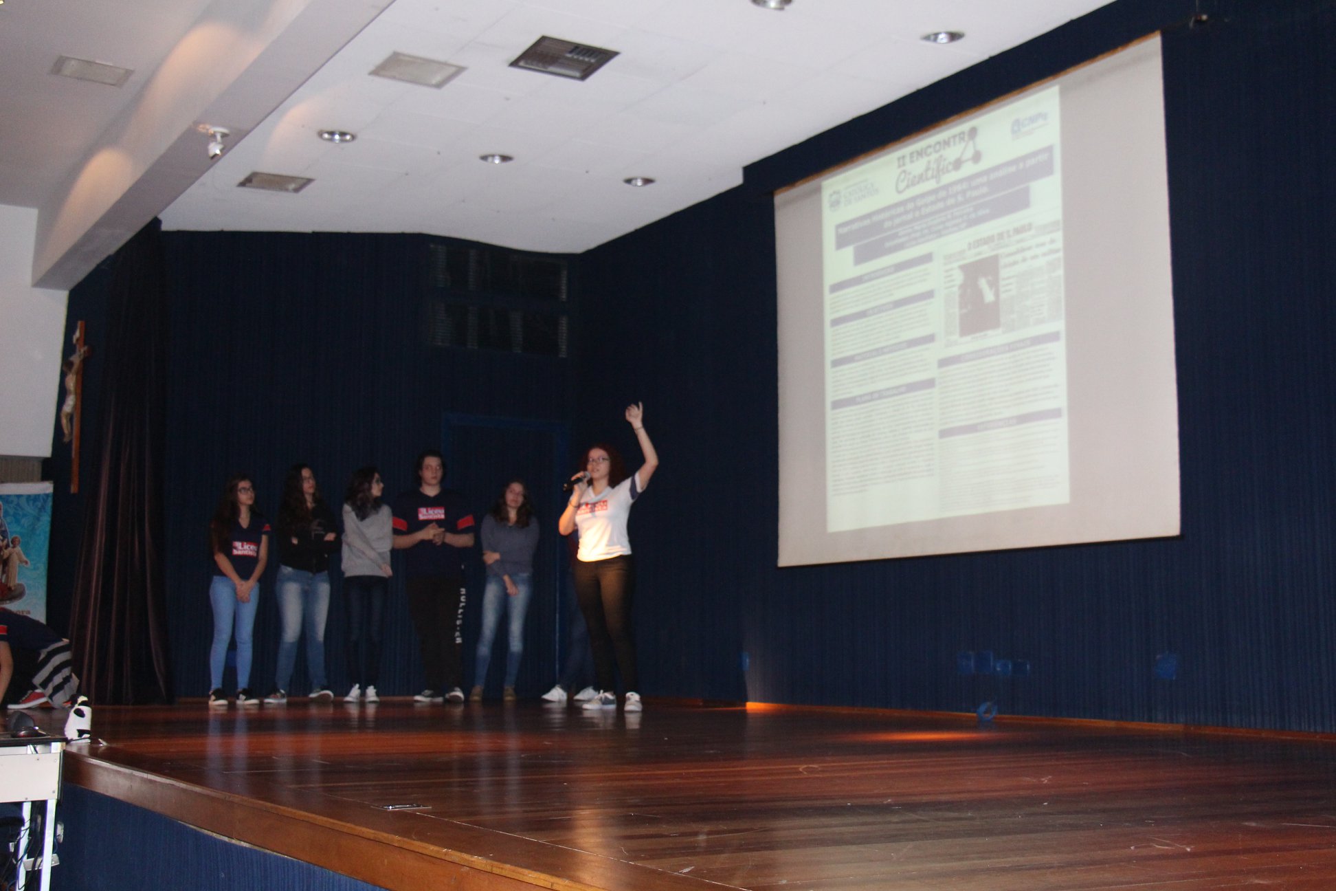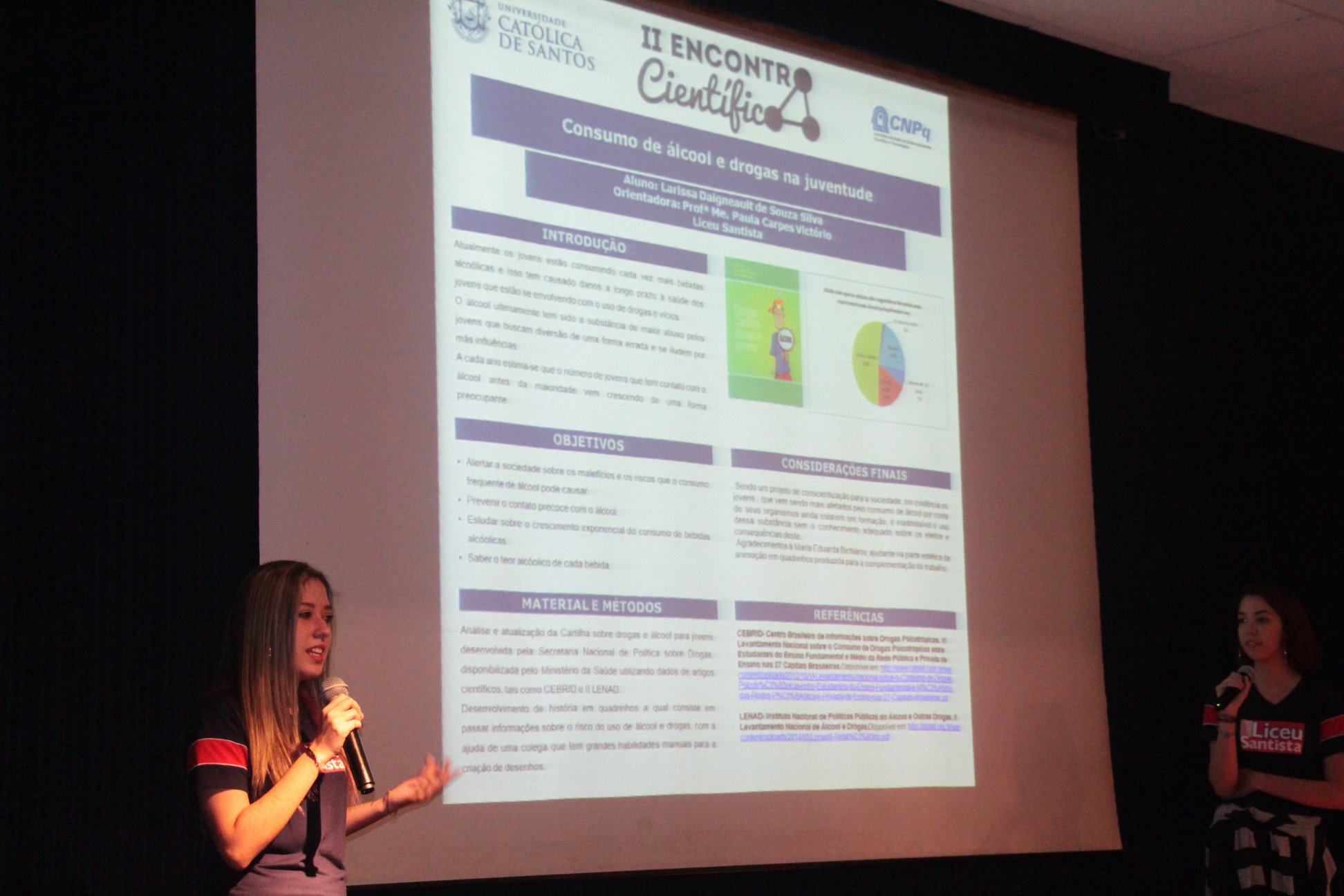 Um grupo formado por dez alunos do 3º ano do Ensino Médio que participaram do Programa de Iniciação Científica da Unisantos no ciclo 2017 / 2018 apresentou seus projetos de pesquisa no 2º Encontro Científico, realizado no Liceu Santista no dia 14 de agosto. Os trabalhos foram orientados por professores pesquisadores da universidade ao longo do ano letivo e abordam temas nas diferentes áreas do conhecimento. O professor Marco Bumba, membro do Comitê de Iniciação Científica, mediou as apresentações.