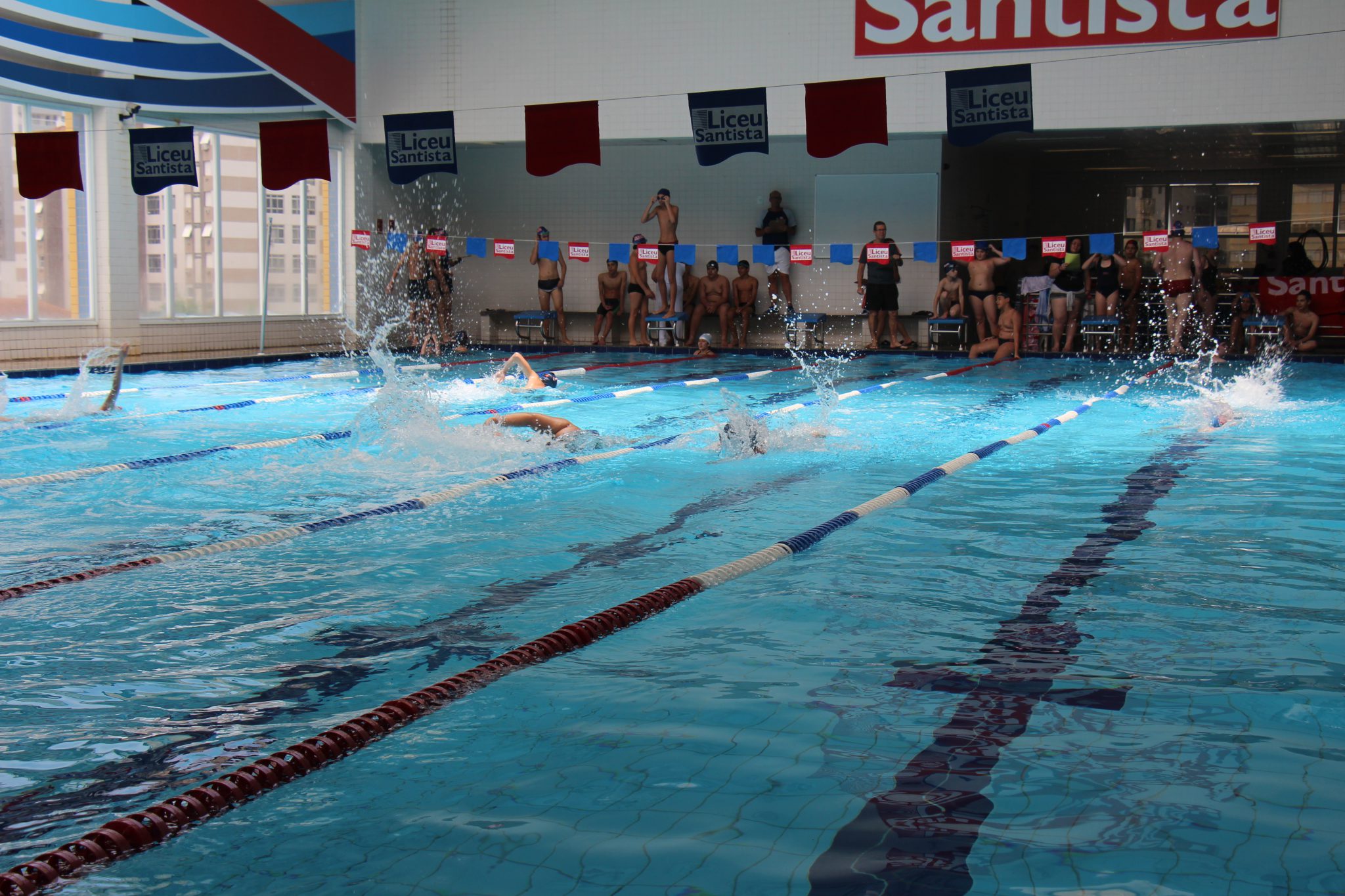 Provas de revezamento são aquelas em que o trabalho de equipe é essencial para a conquista de resultados. À parte do Festival de Natação, em que as provas são demonstrativas, o Liceu Santista realizou um revezamento gigante, de cunho competitivo, com alunos dos Ensinos Fundamental 2 e Médio. O objetivo foi trabalhar a superação dos estudantes por meio de novos desafios, além de contribuir com todos os estímulos educacionais apresentados ao longo do ano letivo na disciplina de natação.