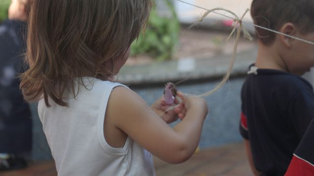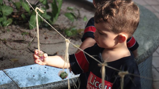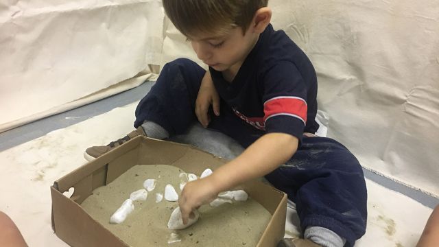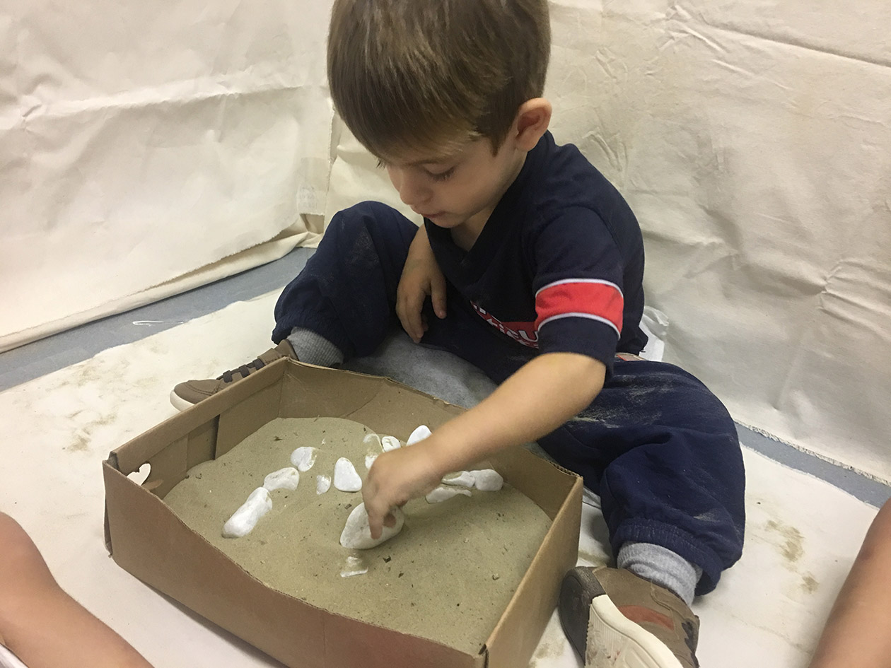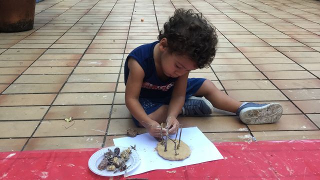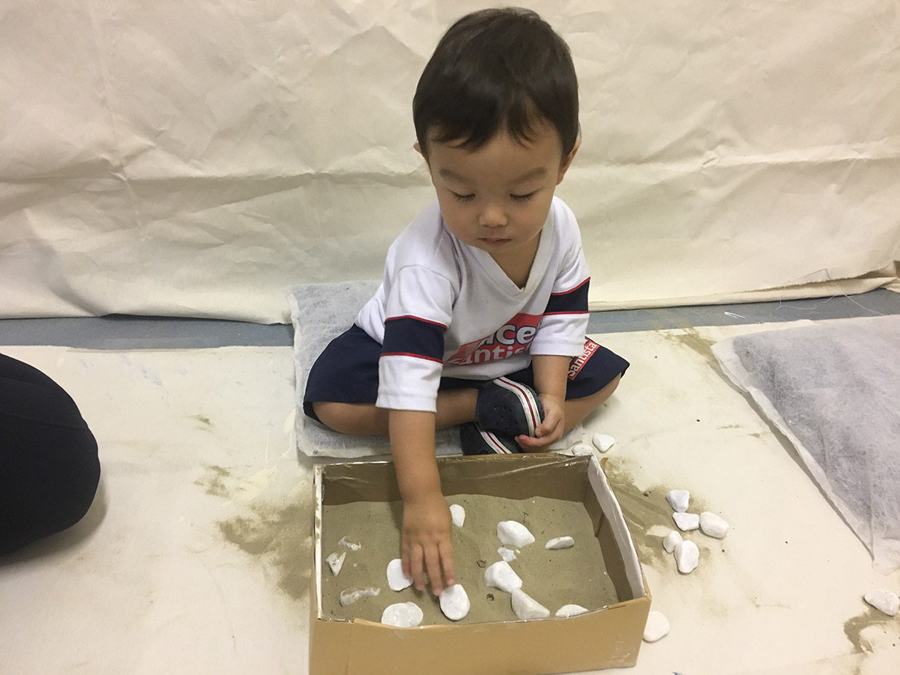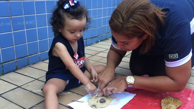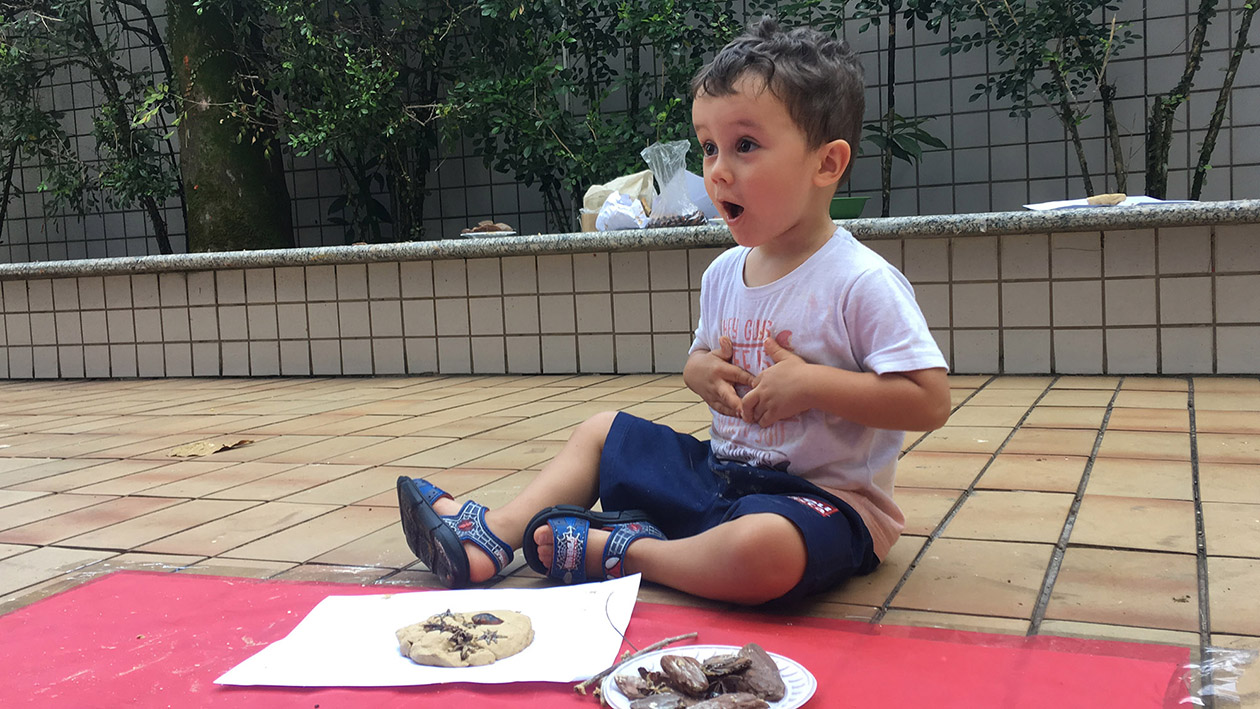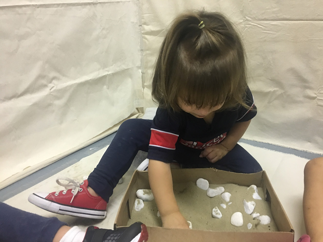 As crianças sentiram o aroma de flores, sua maciez, identificaram o formato irregular das pedras, trabalharam com argila, gravetos, sementes e folhas. Sentiram a delicadeza da areia fininha e a rigidez dos seixos (pedras sem pontas), as sensações de surpresa ao tocarem pedrinhas coloridas de gelo.