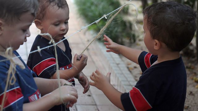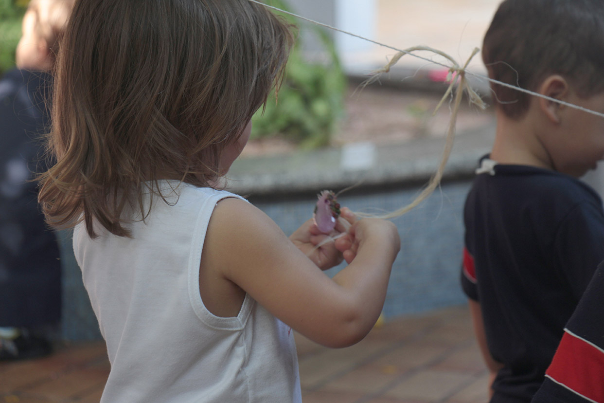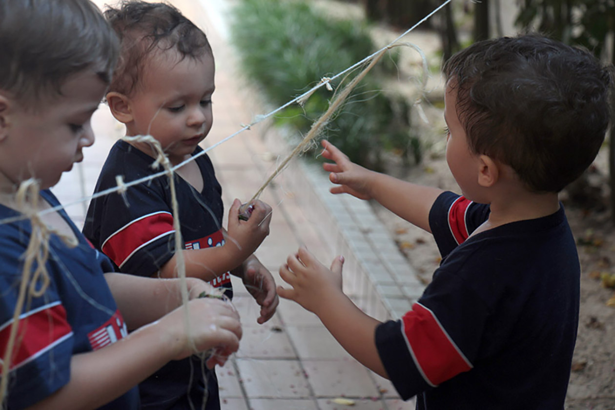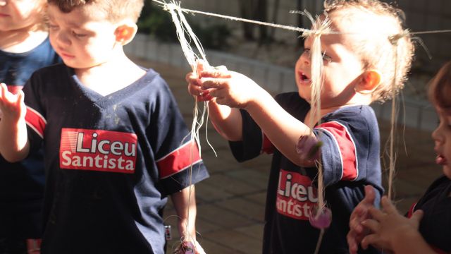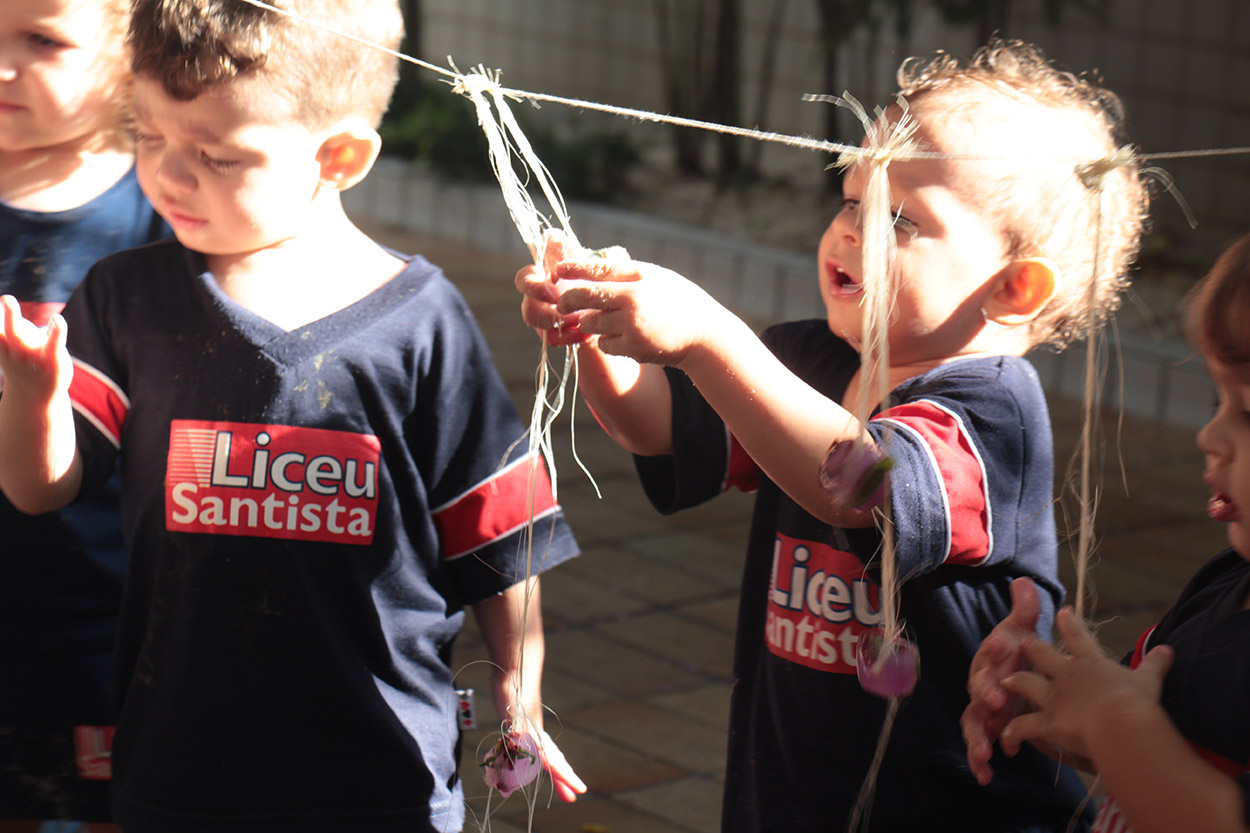 O projeto “Estimula Ação”, desenvolvido pelas recreacionistas Daniela Santiago e Suelen Vieira com os alunos do Grupo 2 Integral da Educação Infantil, busca inspiração em artistas contemporâneos que já utilizam em suas produções o viés sensorial, perceptivo. “Por meio de uma série de atividades, propomos um encontro potente entre o fazer artístico e as experimentações”, explica a recreacionista Daniela.