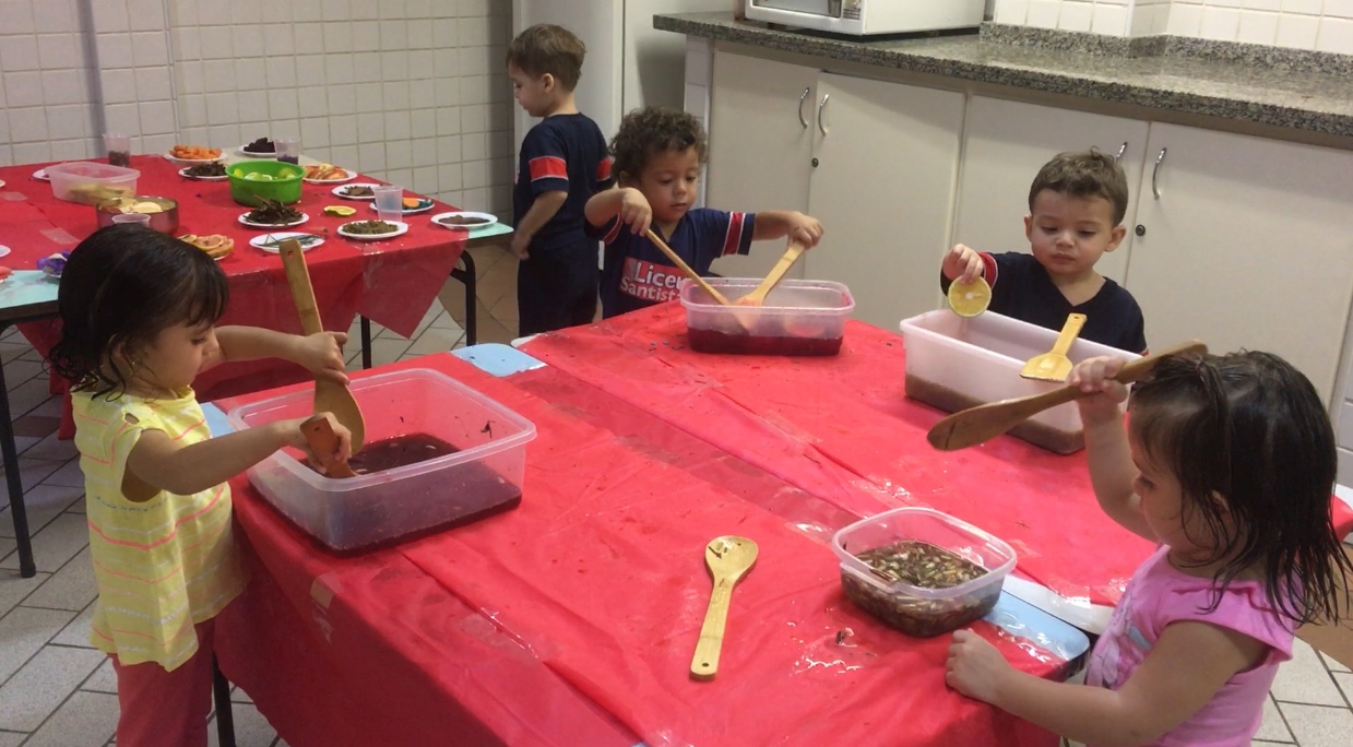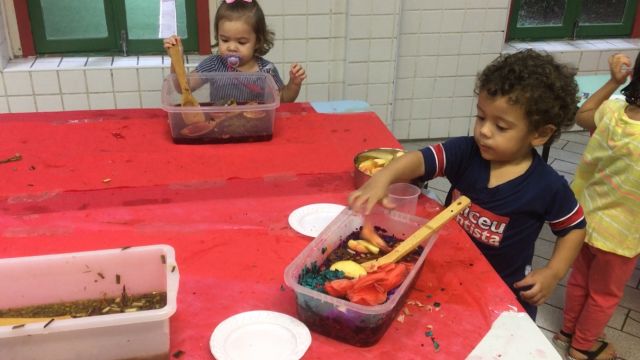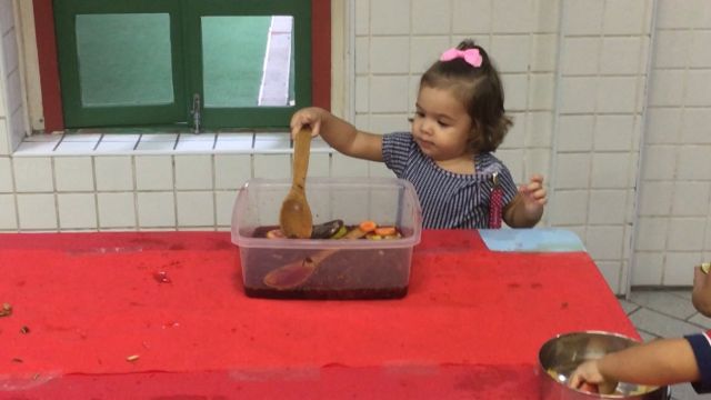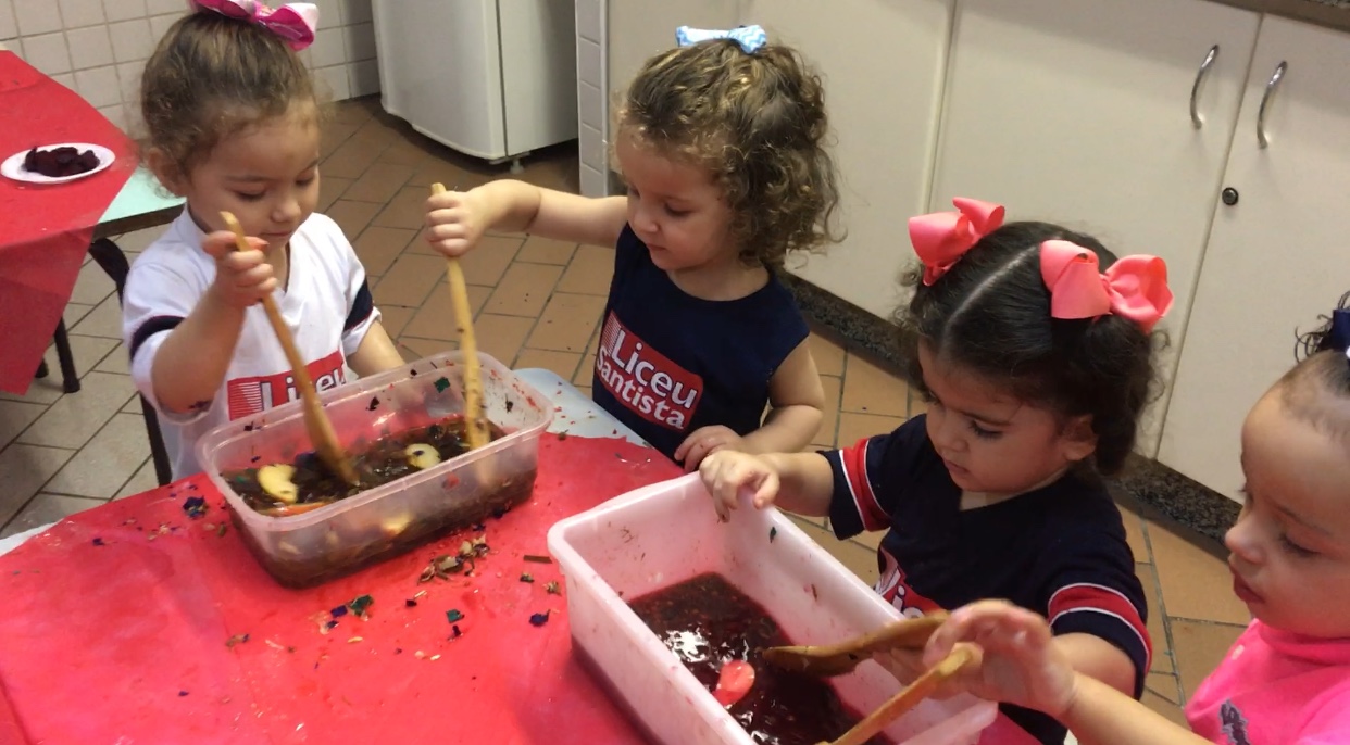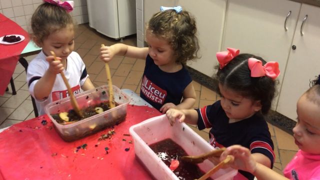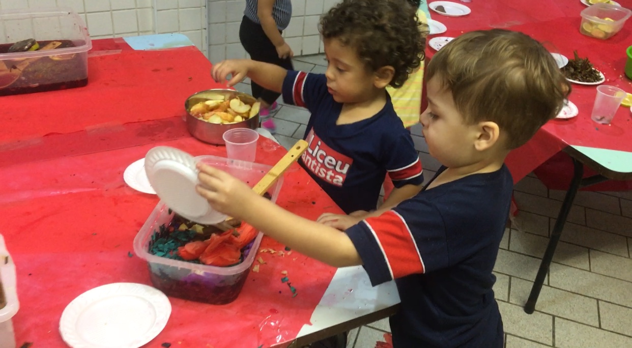 E o mais significativo: para finalizar essa etapa, os alunos fizeram uma verdadeiro “sopão” com os mais inusitados ingredientes. De grama, laranja e pétalas de flores a cenoura, cascalhos, serragem, caldo de beterraba e chá de erva cidreira para perfumar, tudo muito bem misturado para a alegria geral da turminha.