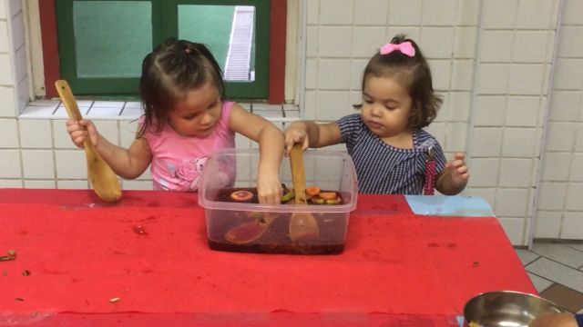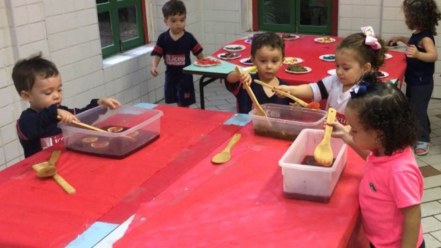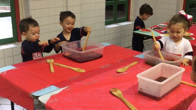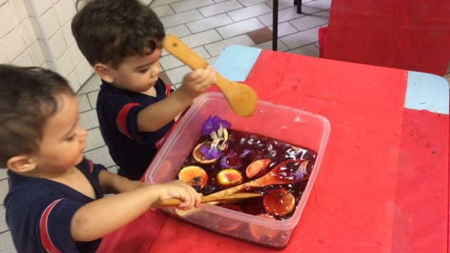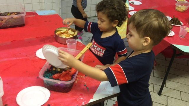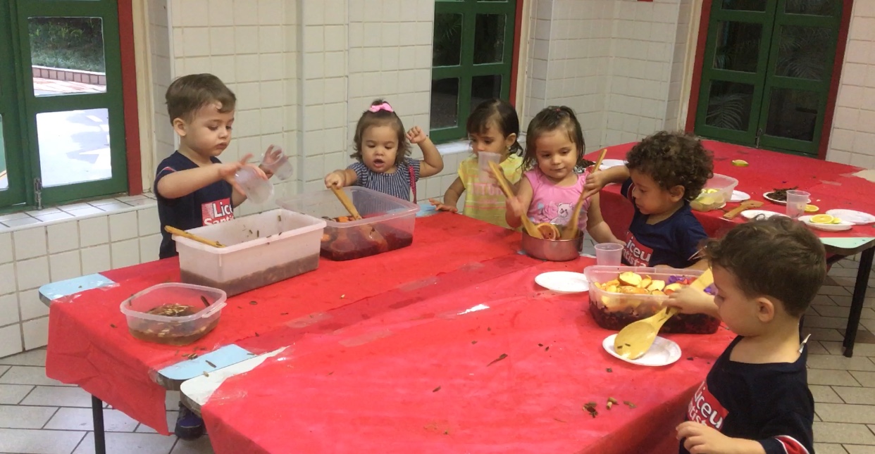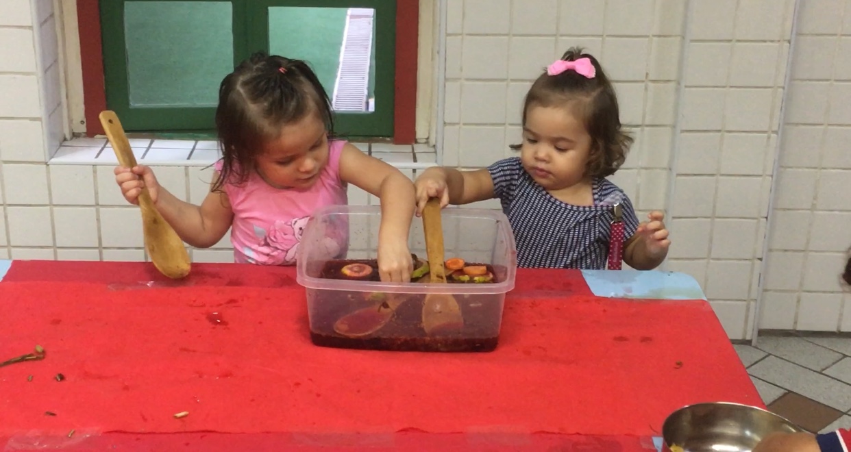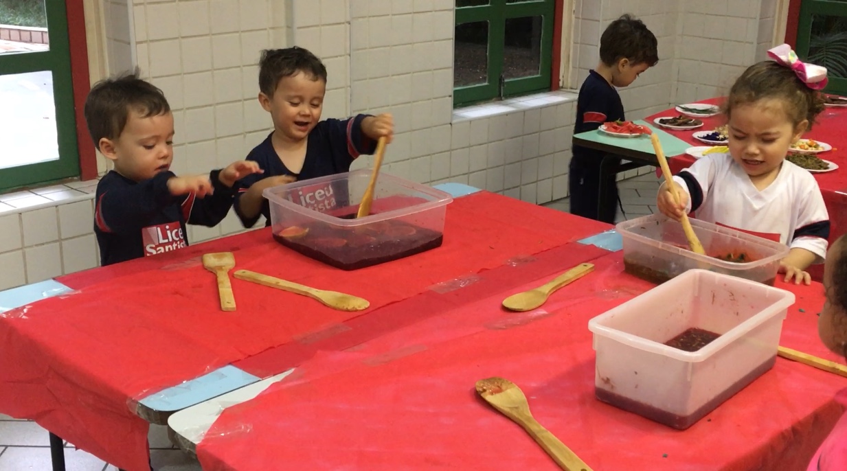 E o mais significativo: para finalizar essa etapa, os alunos fizeram uma verdadeiro “sopão” com os mais inusitados ingredientes. De grama, laranja e pétalas de flores a cenoura, cascalhos, serragem, caldo de beterraba e chá de erva cidreira para perfumar, tudo muito bem misturado para a alegria geral da turminha.