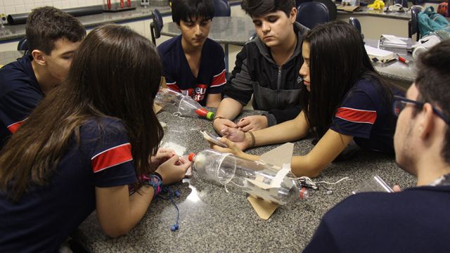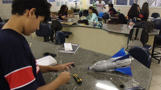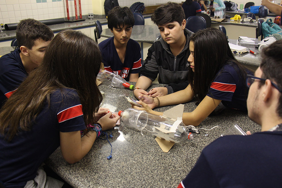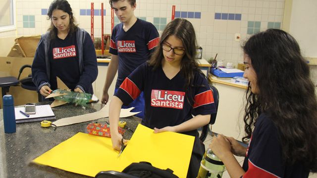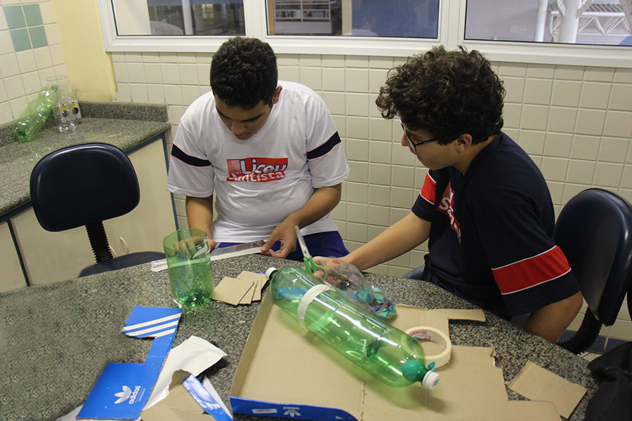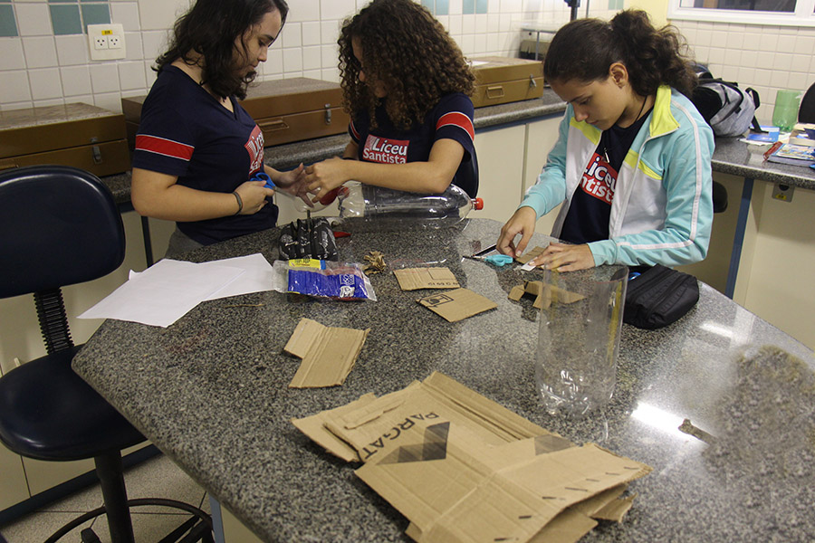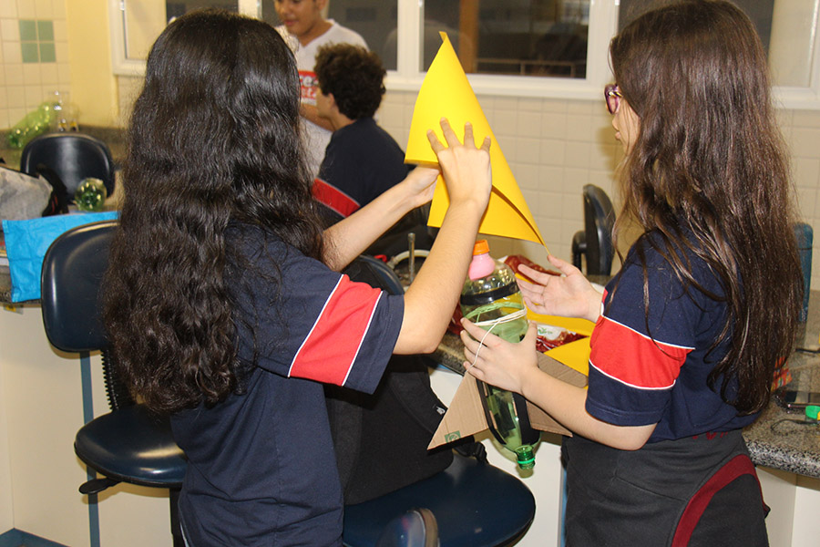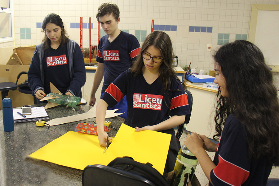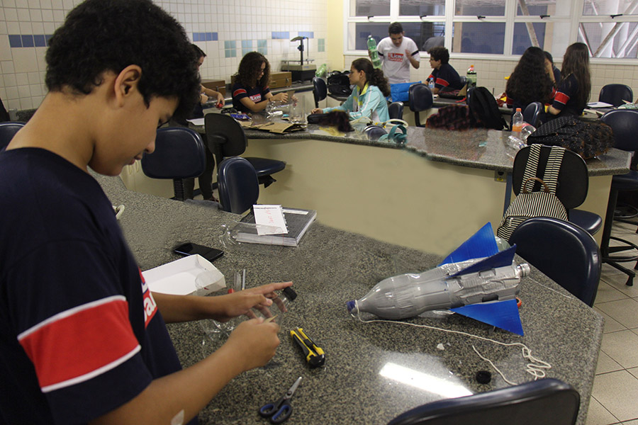 Para isso, eles têm se reunido semanalmente no laboratório de Física com o professor Sérgio Henrique Douwens para projetar e construir o foguete, seguindo a normatização dos organizadores da mostra. Para esta faixa etária, eles podem utilizar garrafas pet e papelão; como combustível, água e ar comprimido (Fund 2), mistura de vinagre e bicarbonato de sódio (Médio).