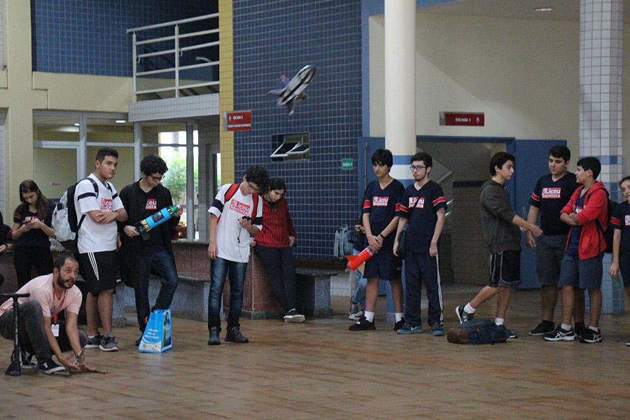 Os foguetes poderão ser lançados obliquamente, pois o objetivo é obter o maior alcance horizontal possível. Por motivo de segurança, os testes de lançamento deverão ser realizados fora da escola, em local a ser confirmado pela coordenação, mas uma prévia pôde ser feita na escola, também sob a supervisão do professor Sérgio.
