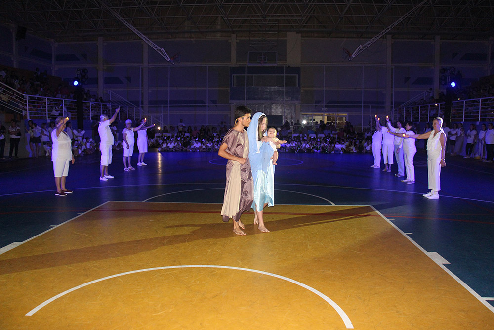 A esperança permeou o espetáculo, que contou com a participação de um grupo de alunos dos Ensinos Fundamental 2 e Médio e também de um ex-aluno que se apresentou no encerramento. No enredo, contado pelas crianças vestidas de branco, o sentimento de desânimo e tristeza foi substituído pela confiança e união, colocando em prática os ensinamentos de Jesus.