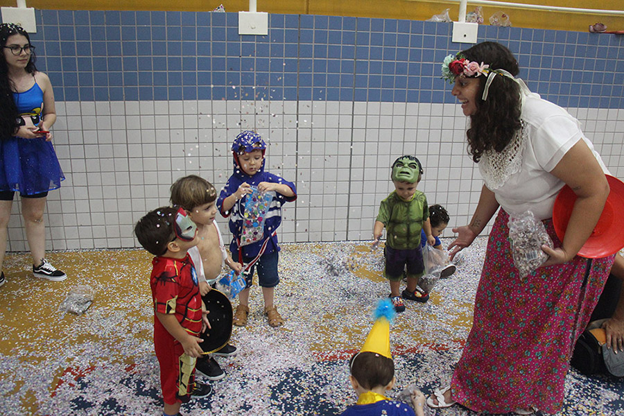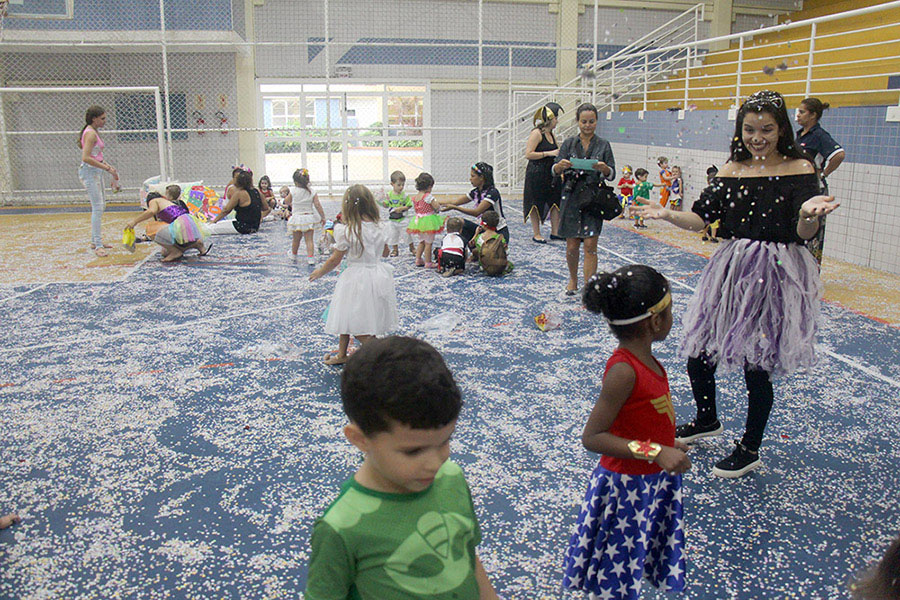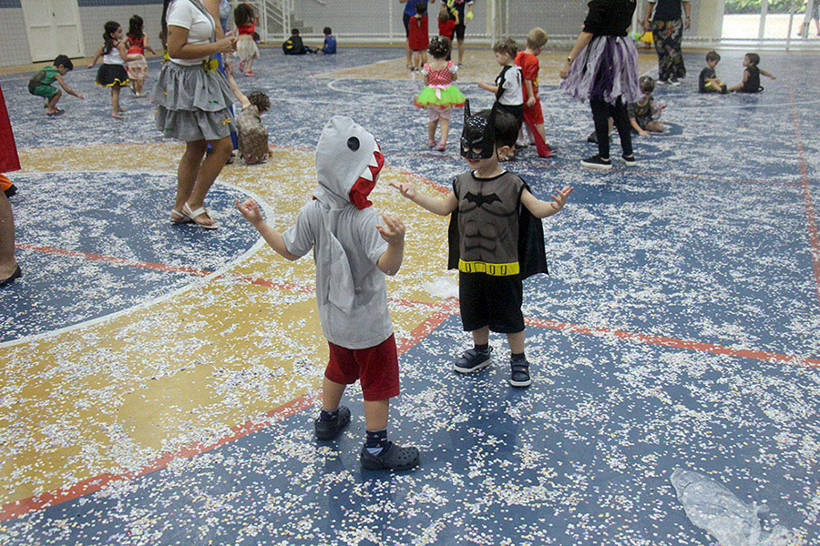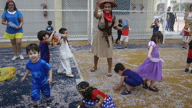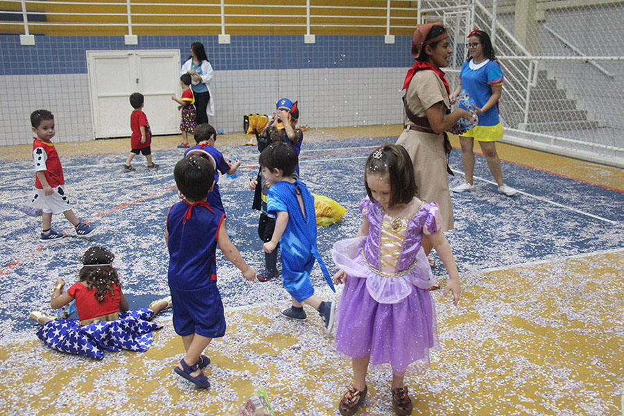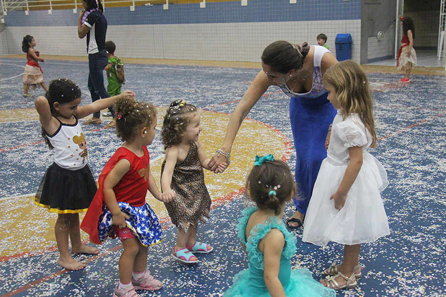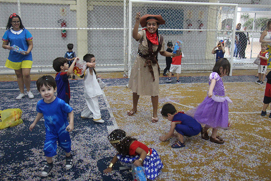 Na Educação Infantil, fadas, bailarinas, super-heróis, borboletas, bichinhos, princesas e, acredite, até um tubarão, todos em miniatura, se reuniram para brincar e aproveitar a companhia dos amigos.
