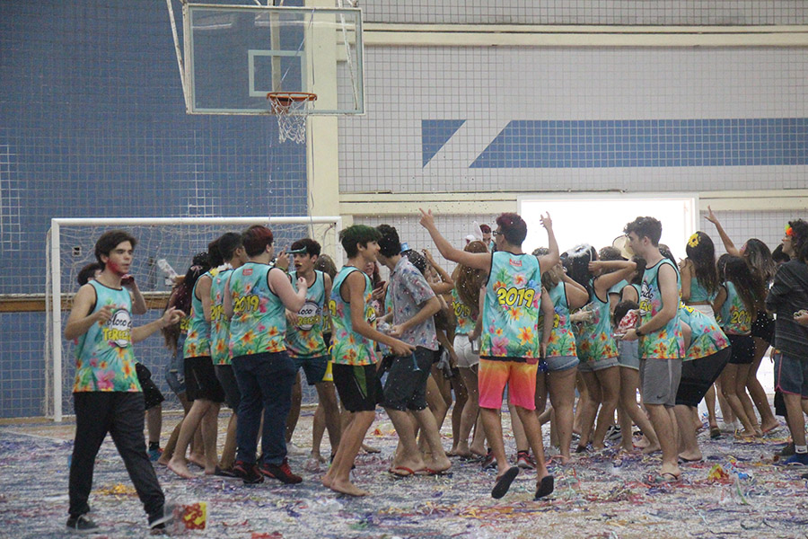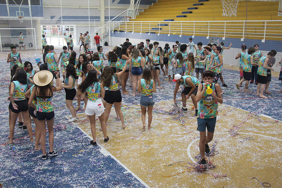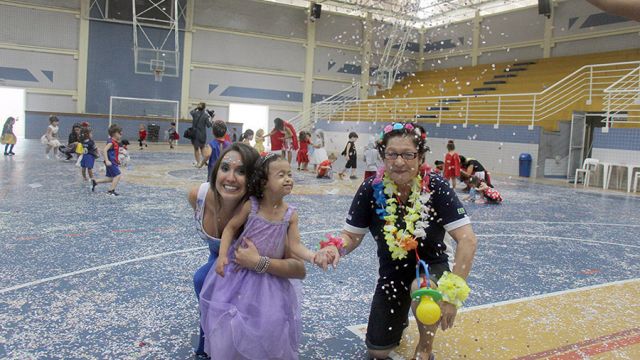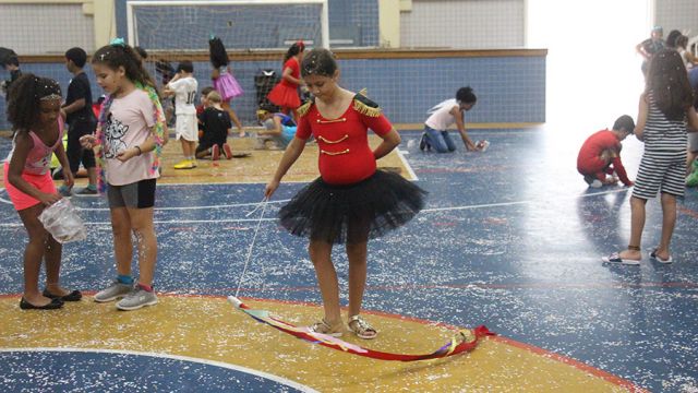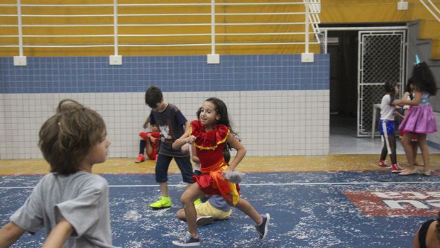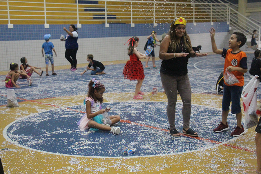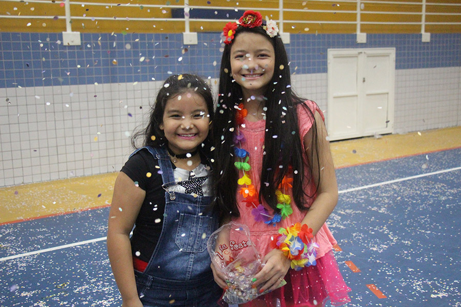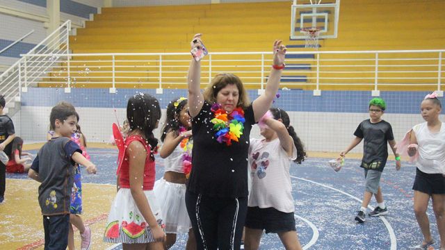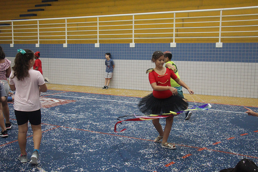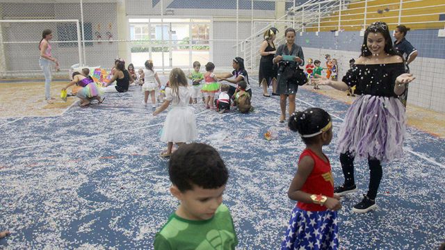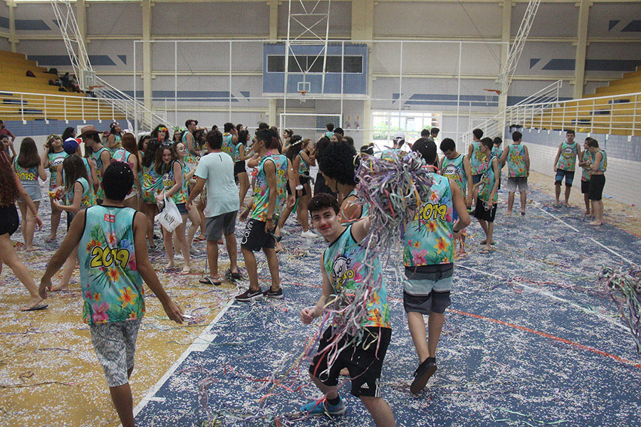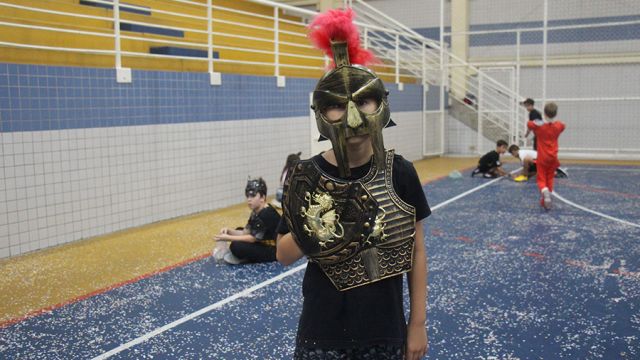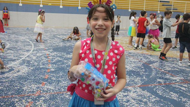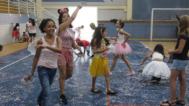 Também no Fundamental 1 não faltou animação. Para os liceístas, o que importava era brincar, correr, jogar confete nos amigos e ser feliz. E eles também capricharam nas fantasias: havaianas, odaliscas, sereias, unicórnios, piratas, centuriões…