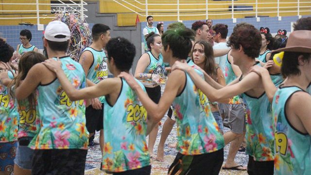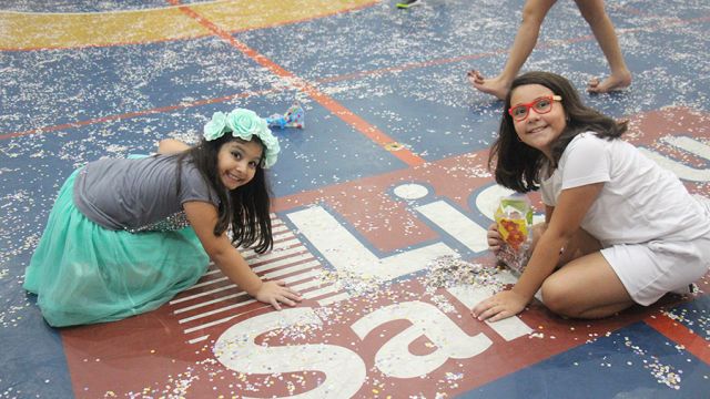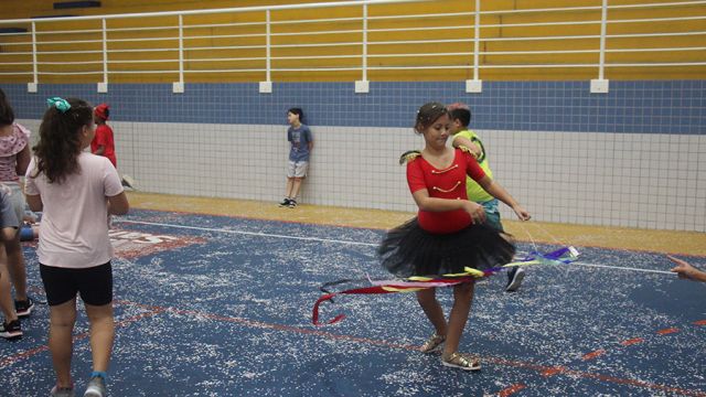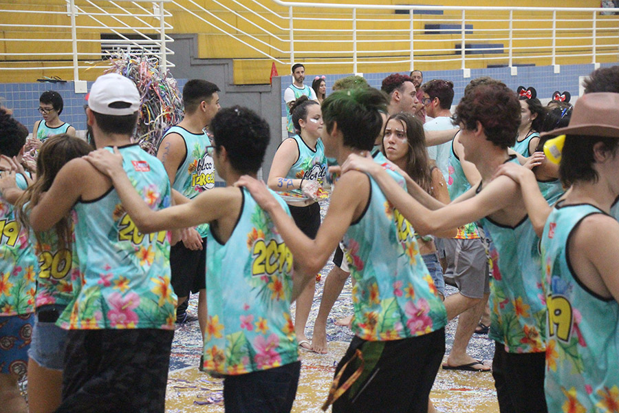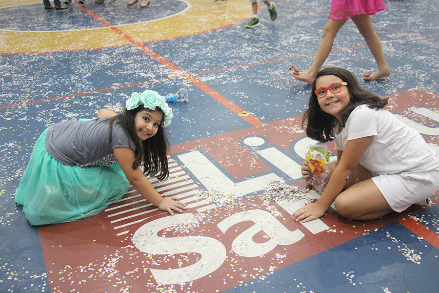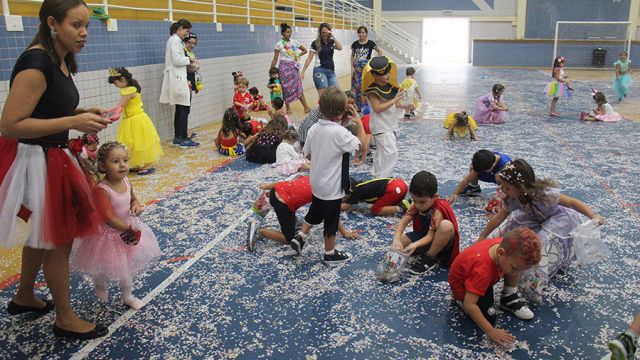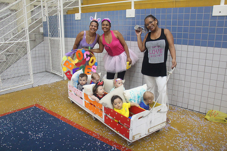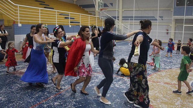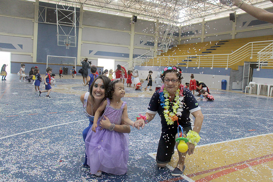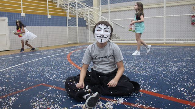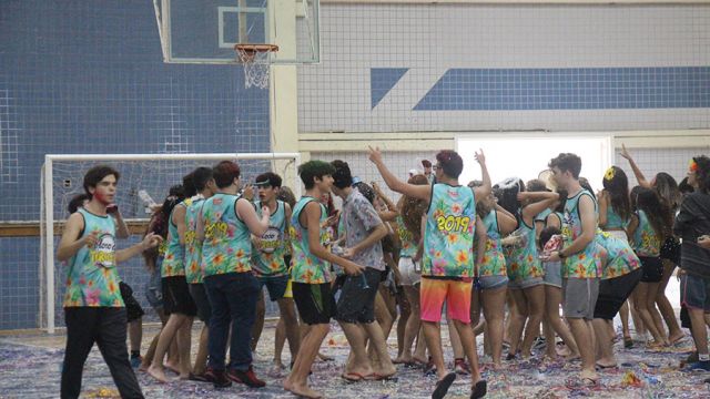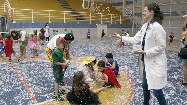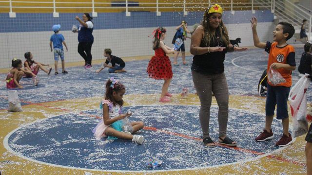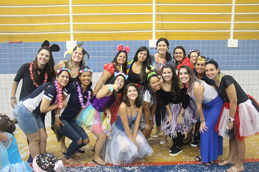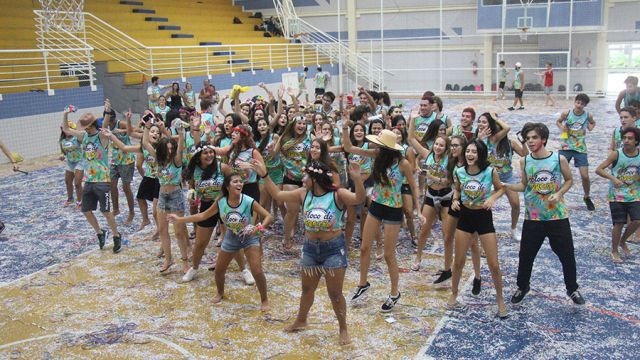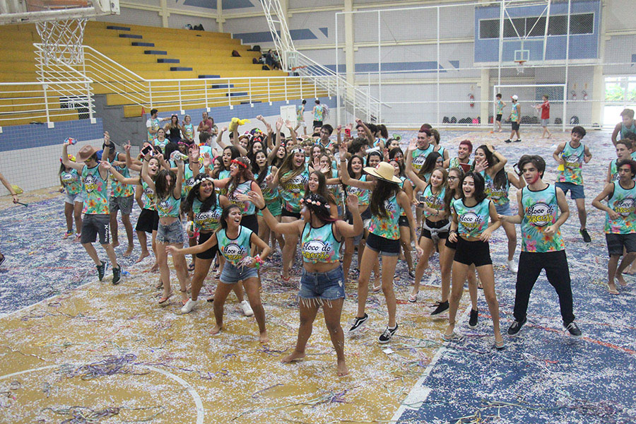 Também no Fundamental 1 não faltou animação. Para os liceístas, o que importava era brincar, correr, jogar confete nos amigos e ser feliz. E eles também capricharam nas fantasias: havaianas, odaliscas, sereias, unicórnios, piratas, centuriões…