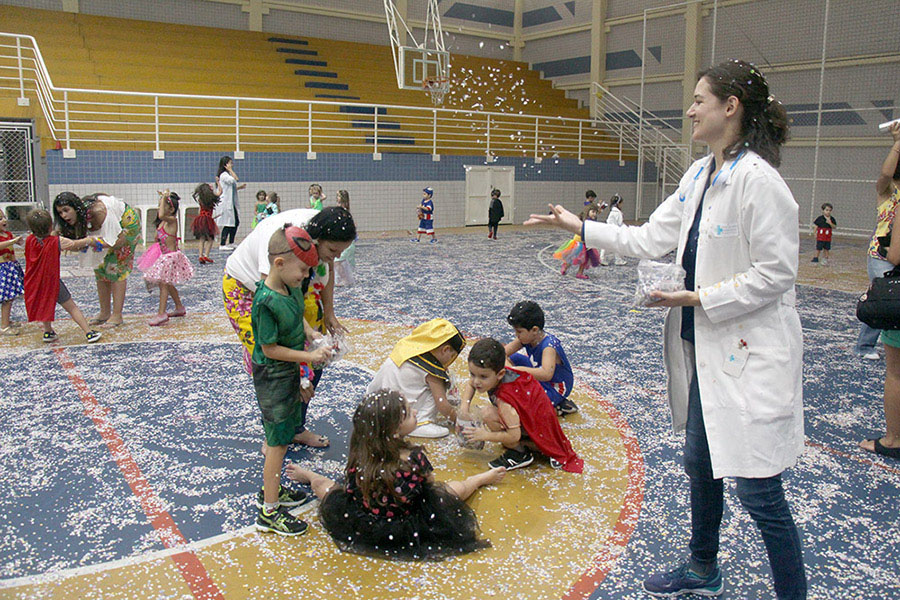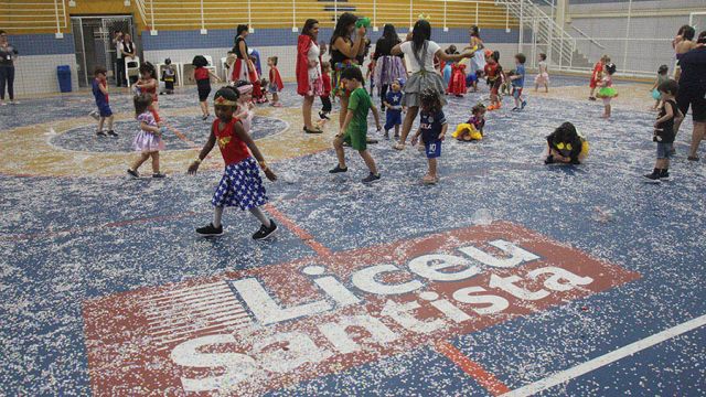 Carnaval é uma festa colorida, animada e cheia de boas surpresas. Ao som de marchinhas antigas, os alunos da Educação Infantil ao 5º ano do Ensino Fundamental – e um momento especial com os alunos do 3º ano do Ensino Médio – se divertiram no ginásio poliesportivo do Liceu Santista. Liceístas do Fundamental 2 participaram de um recreio festivo para festejar o carnaval.
