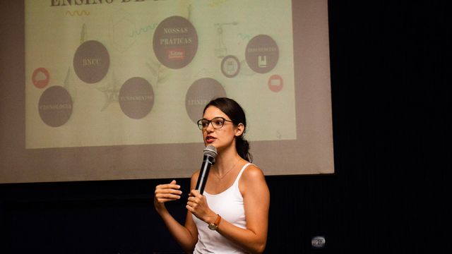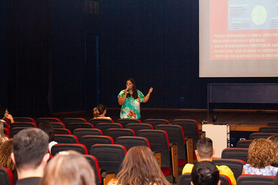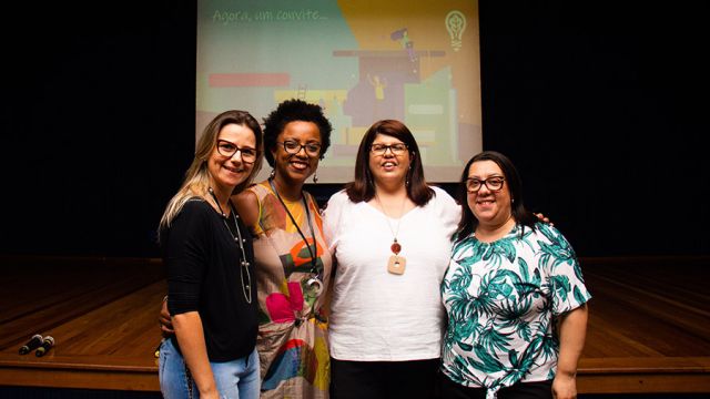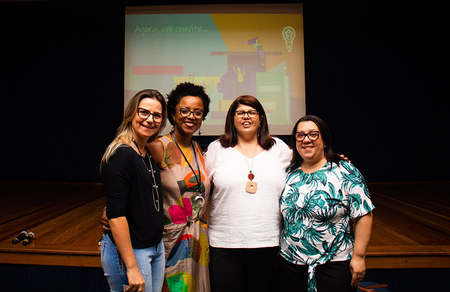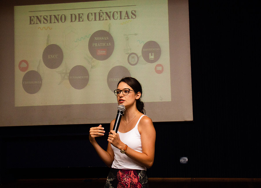 Duplas de professores de cursos distintos trouxeram estudos sobre a Base Nacional Comum Curricular por meio do trabalho pedagógico nas áreas de Linguagem (Cláudia Heloísa Andria e Regiane Brito), Matemática (Daniela Santos e Andréa Leocádio), Humanas (Almir José e Jenifer Sabatini) e Ciências da Natureza (Flávio Roca e Patrícia Barsotti).
