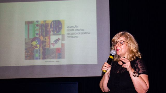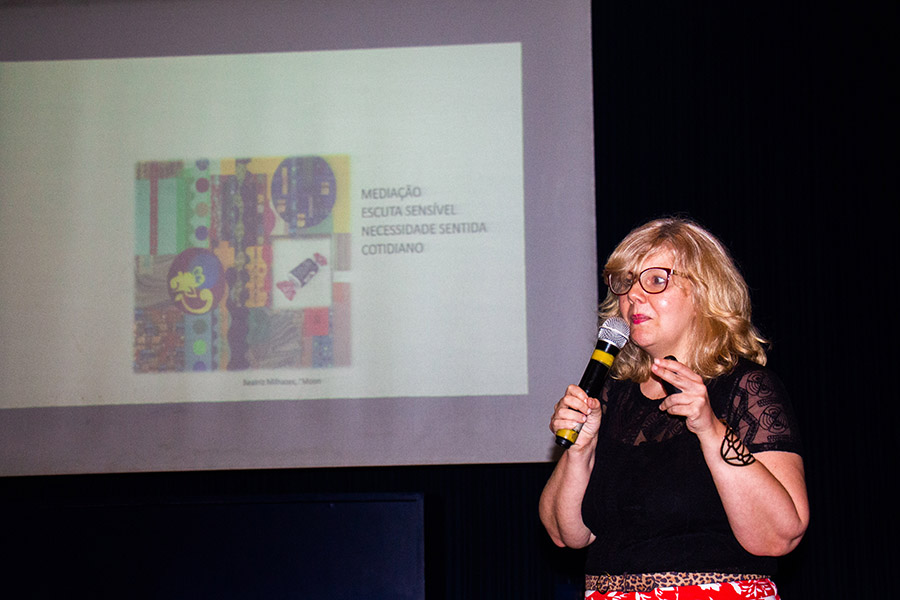 A mediadora cultural Viviane Almeida instigou os professores a refletirem sobre cultura. “Cultura inútil? Mas precisa ser útil? Cultura importa? Quais os sentimentos e sensações que a palavra cultura suscita?” foram algumas das indagações.