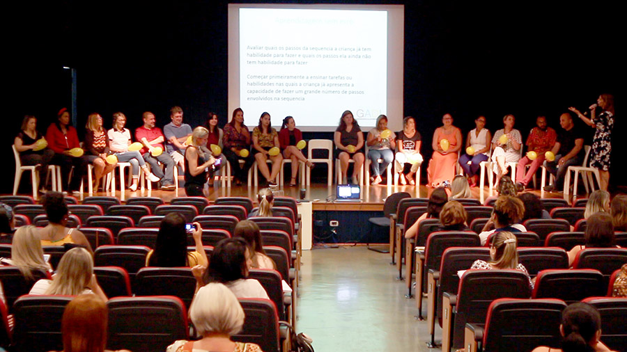Fechando a Formação 2020, as psicólogas Tatiana Lopes e Paola Buck Gianini fizeram uma explanação sobre TEA (Transtorno do Espectro Autista), detalhando as características diagnósticas, respostas comportamentais e mediação escolar. Também abordaram os critérios para organizar um currículo adaptado a partir da observação dos comportamentos e estratégias de mediação da aprendizagem.