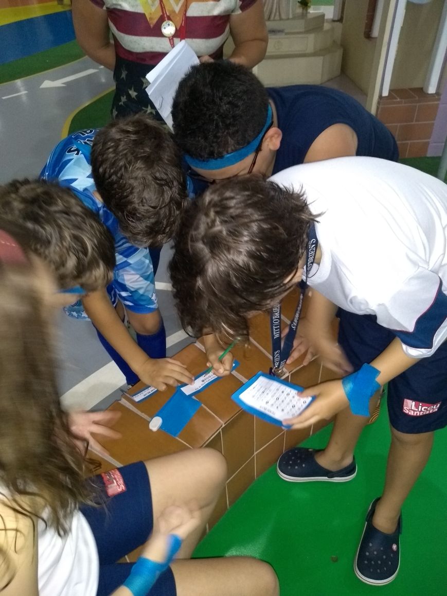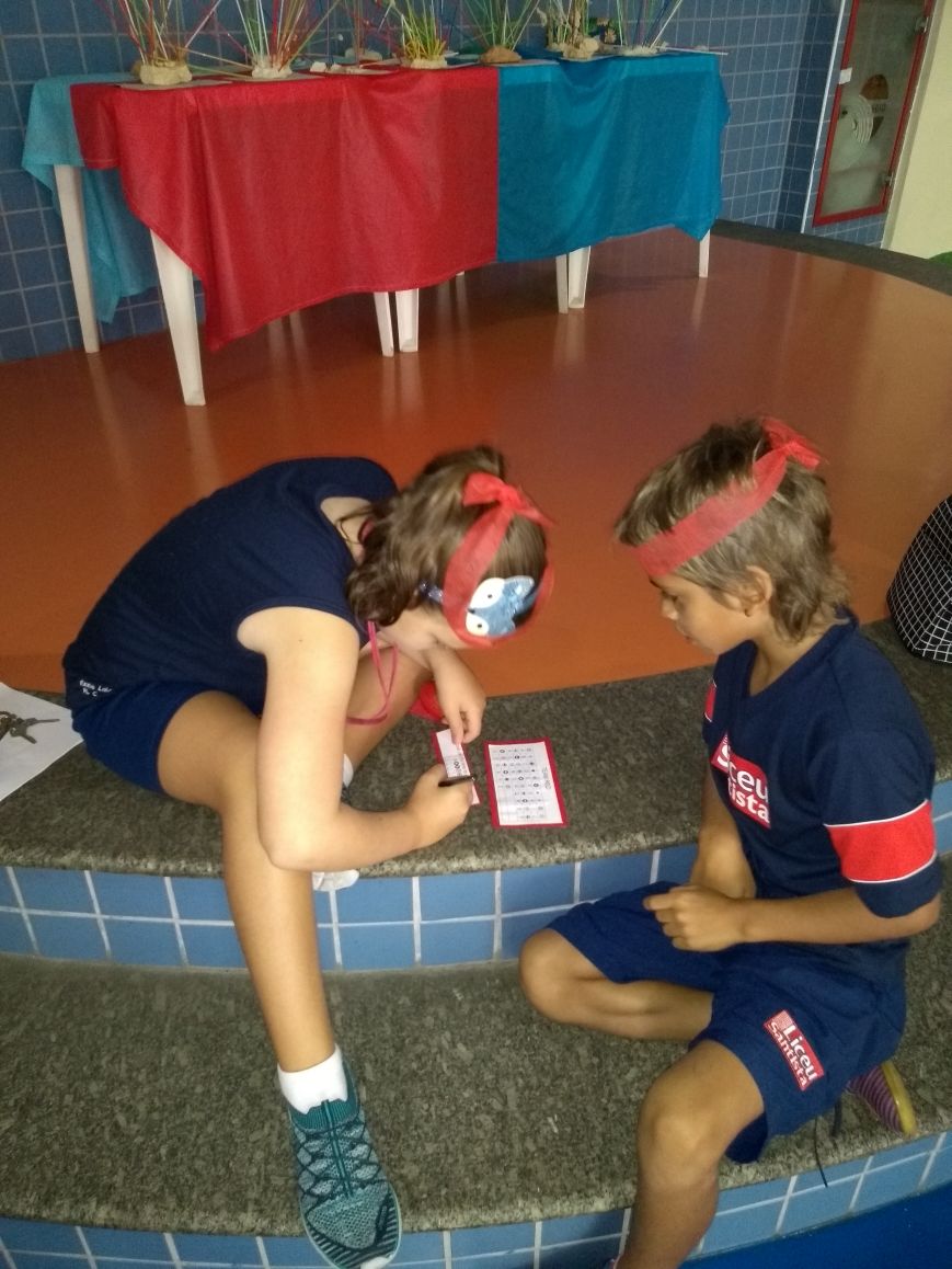 Para os maiores, do 4º e 5º ano, as dicas precisavam ser decifradas, pois, mesmo em inglês, estavam grafadas em códigos secretos. O jeito foi se concentrar para descobrir a pista.