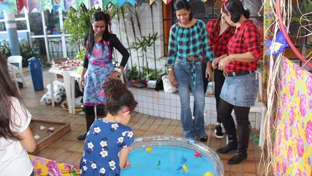 Como Festa Junina também é sinônimo de brincadeiras, as crianças se divertiram com a pescaria, boca do palhaço, canaleta, dardo, pula-pula, tobogã, cama elástica e touro mecânico. E o que dizer das comidas típicas, como canjica, pinhão, churros, maçã do amor, milho verde, cachorro quente e mexicano?