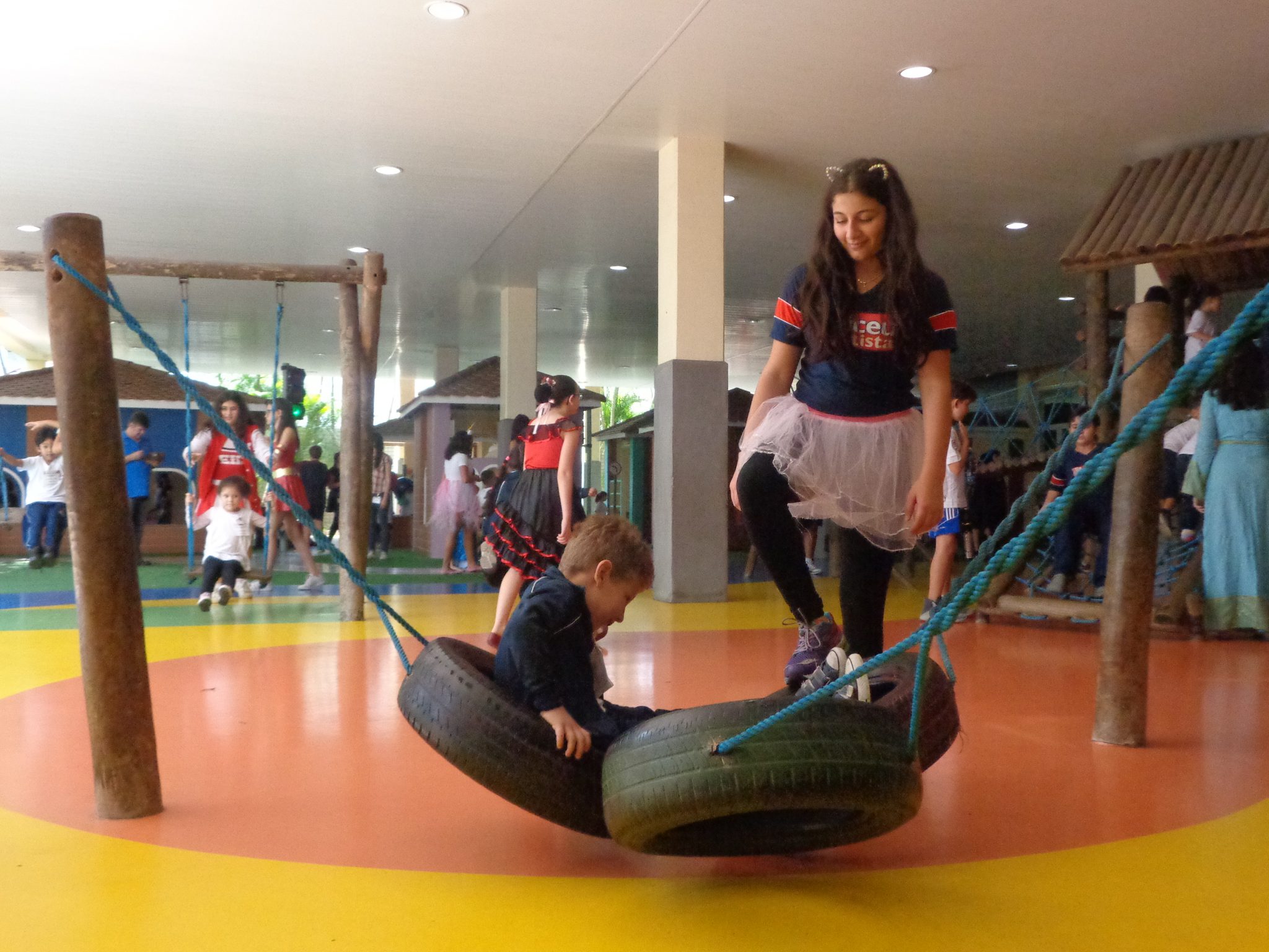Para fechar o mês da criança no Liceu Santista, os alunos dos Ensinos Fundamental e Médio que participam do grupo FASE (Falando Sério) prepararam uma festa para lá de especial para as crianças atendidas pela Creche Ancilla Domini, de Santos. Na quarta-feira, 25 de outubro, o ginásio poliesportivo e o playground da Educação Infantil se encheram de cores e alegria para receber os pequeninos, que brincaram muito e deliciaram-se com um lanche preparado com muito carinho pela escola.