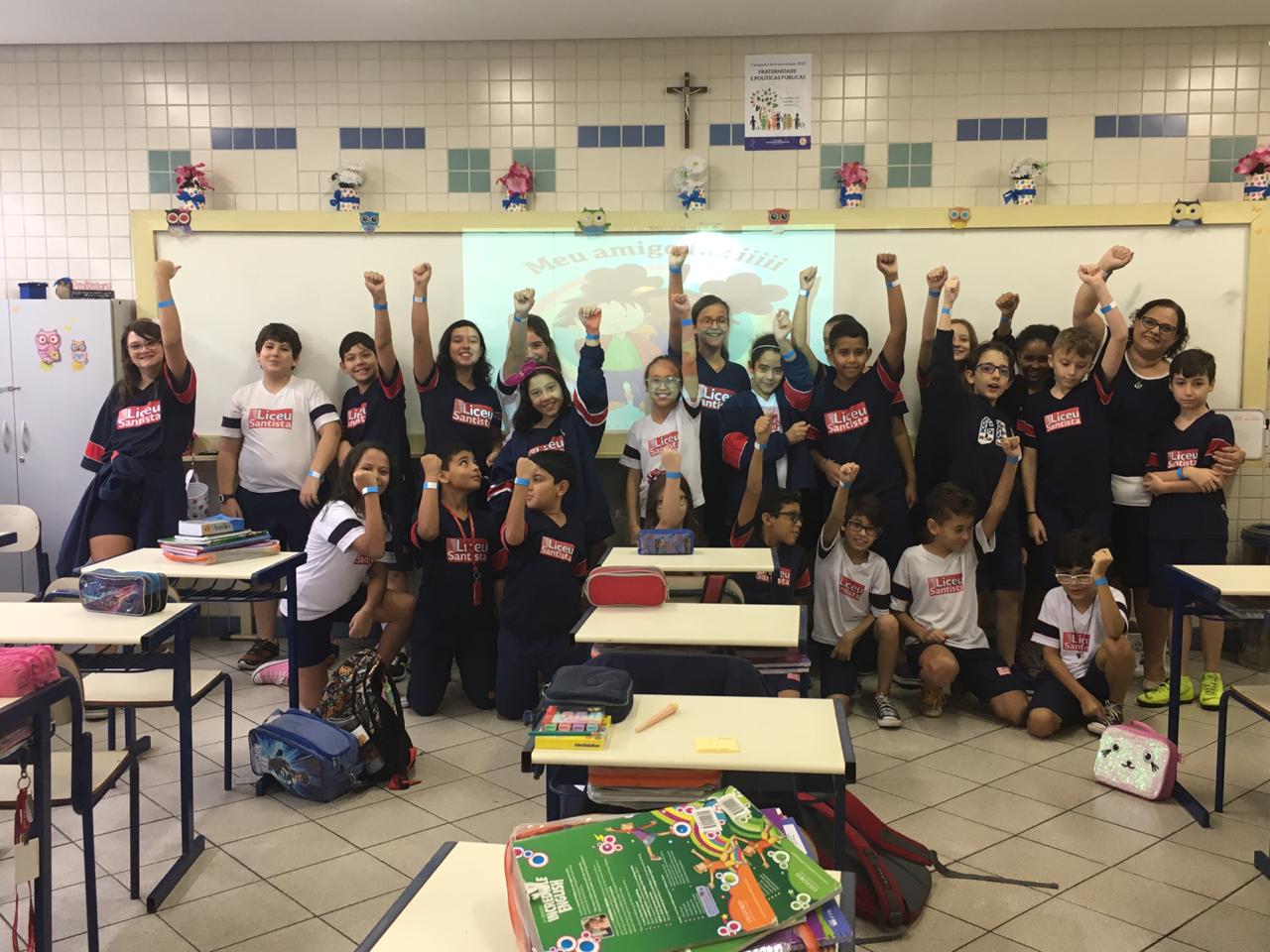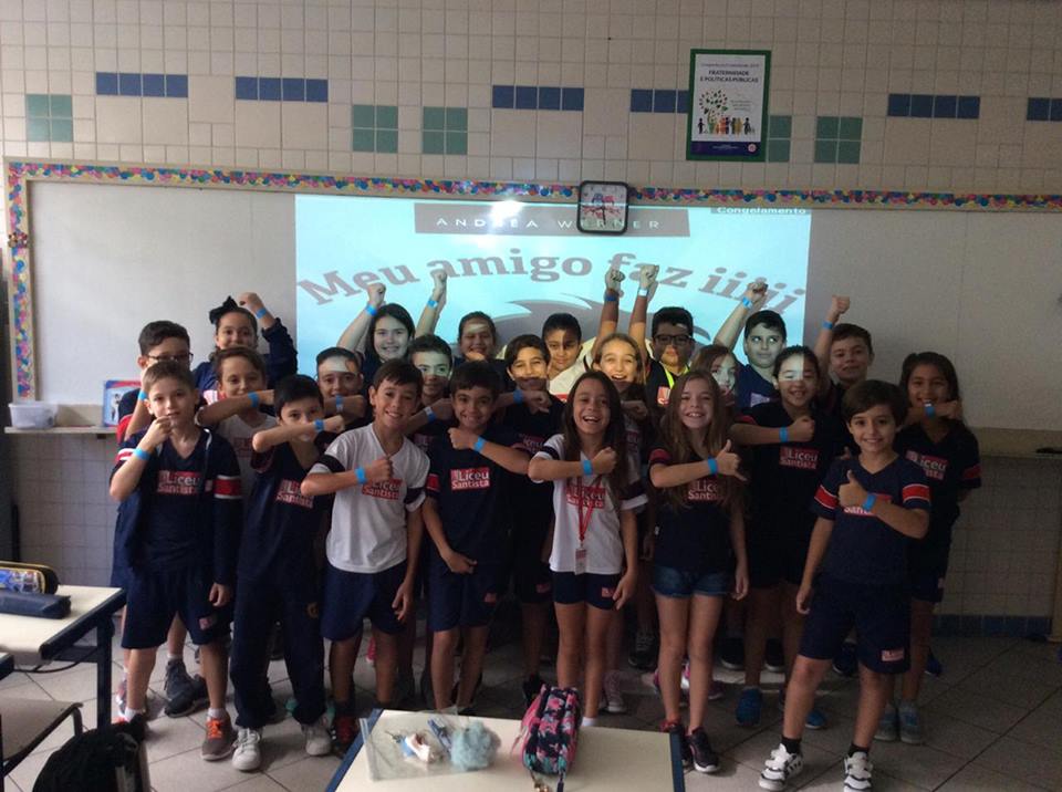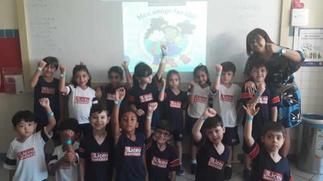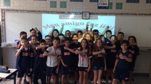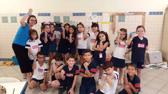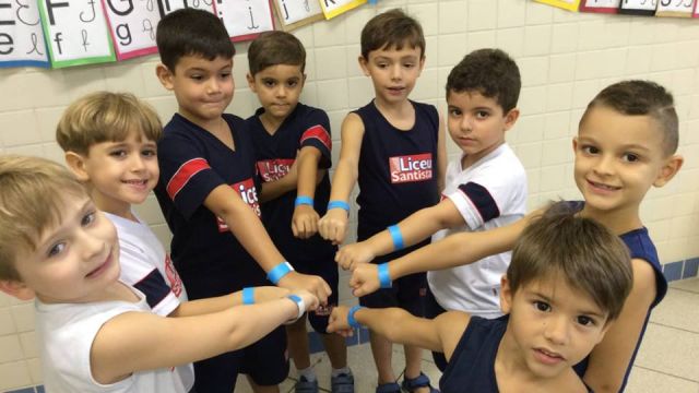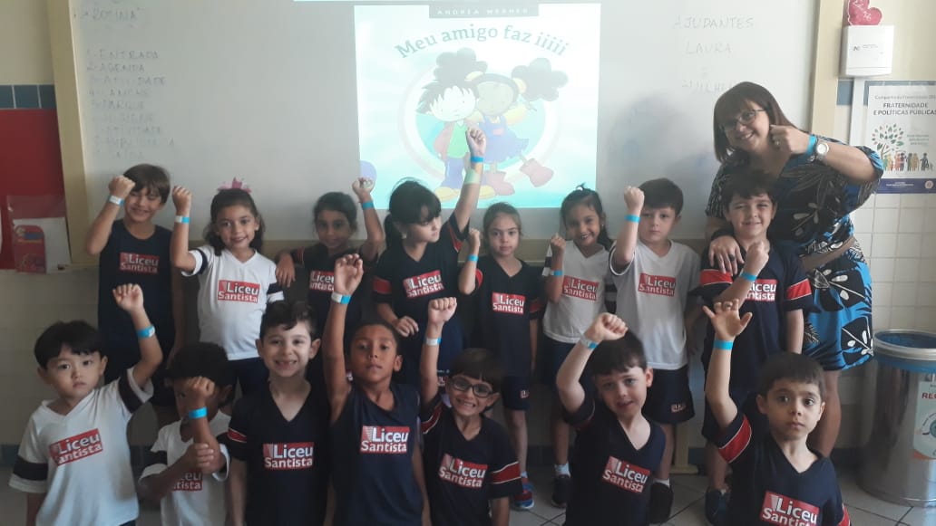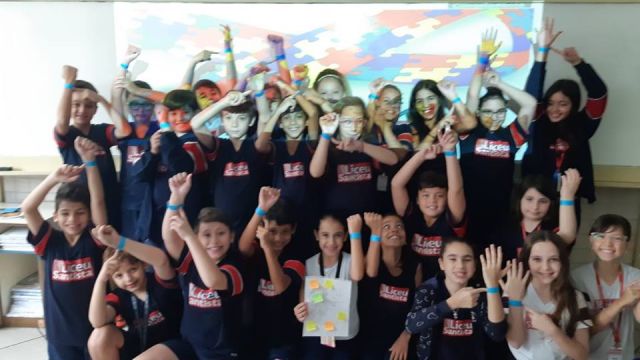 O azul é a cor escolhida para as ações de conscientização do autismo. No dia comemorativo, todos os alunos do Fundamental 1 receberam uma pulseirinha azul, que foi personalizada por eles com palavras de apoio à causa. Professores e funcionários também vestiram azul para marcar a data.