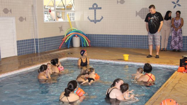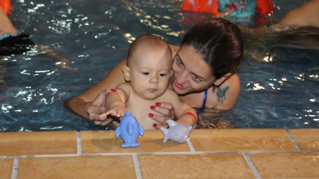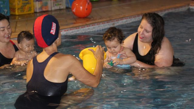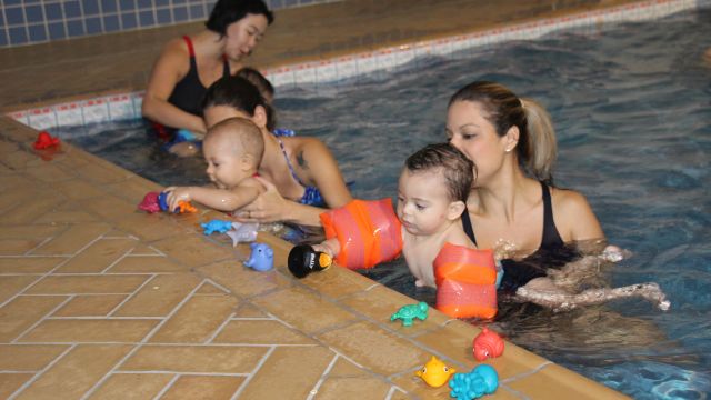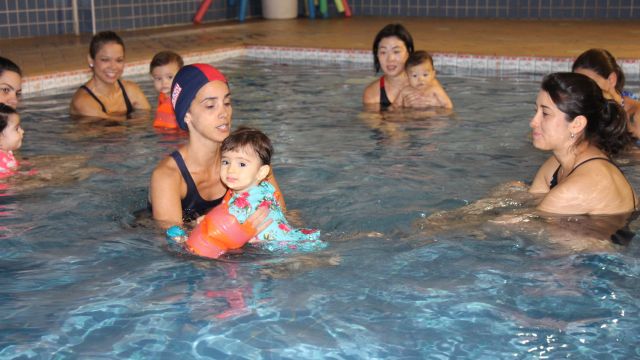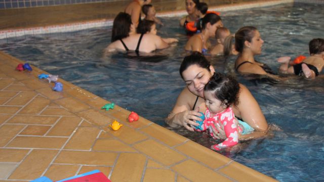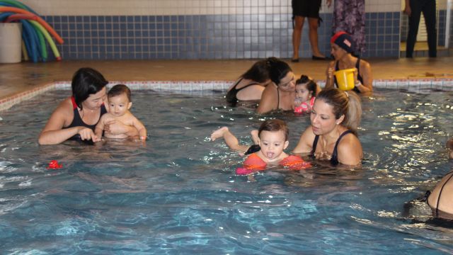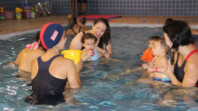 Quer coisa melhor do que passar momentos de puro encanto com seus bebês dentro da piscina? Esse foi o presente para as mães do berçário, que, de dentro da piscina, participaram de uma aula especial com a professora Flávia Gazolli. De forma lúdica, elas vivenciaram as atividades que estimulam as potencialidades da criança, trabalhando a sua relação com o espaço, com o objeto, com o outro e consigo mesma.