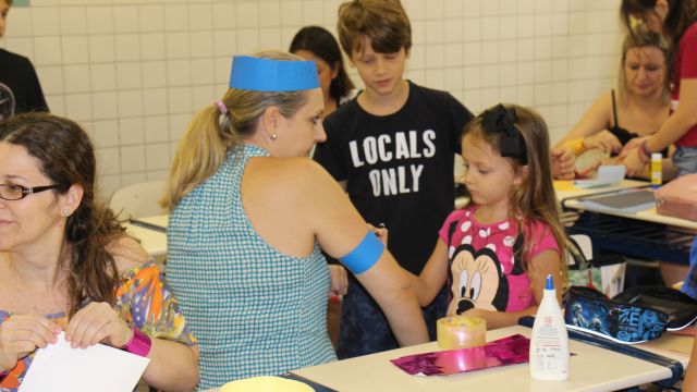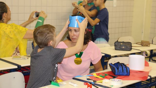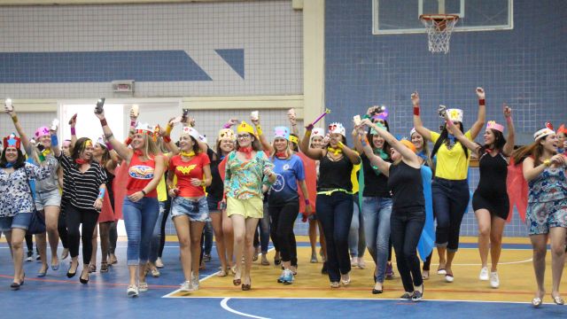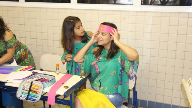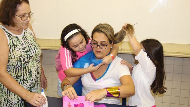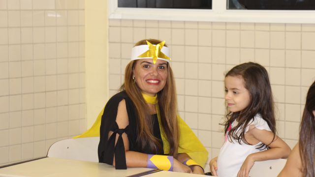Festa boa é quando todo mundo se diverte, fica feliz, se emociona. As mães de alunos do 1º ao 5º ano do Ensino Fundamental participaram de uma oficina de transformação. Com o auxílio dos filhos-assistentes, elas se caracterizaram de super-heroína de acordo com o seu super-poder: ser divertida, esportista, fashion ou divertida. Depois, foi se reunir e comemorar com as crianças, que ainda encantaram as homenageadas interpretando a canção “Maria, Maria”, de Milton Nascimento.