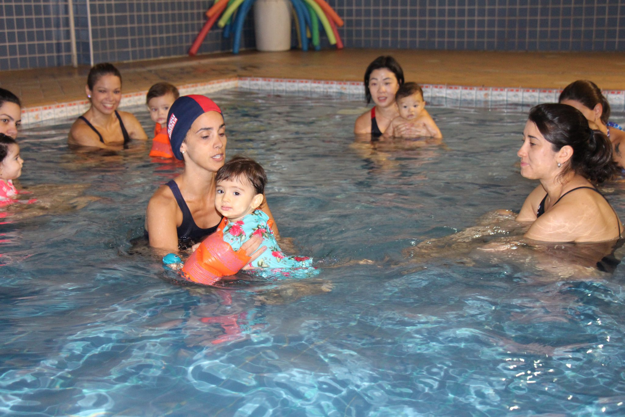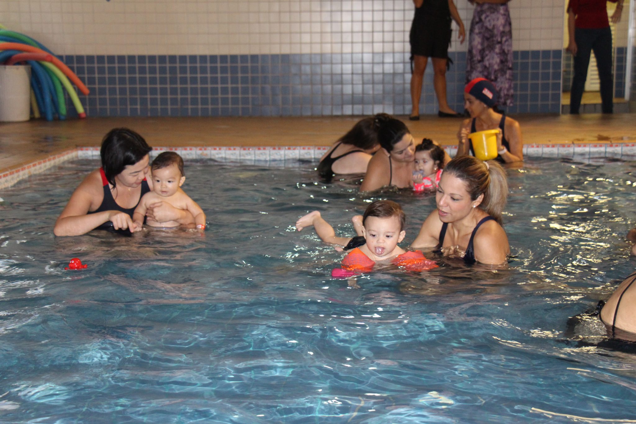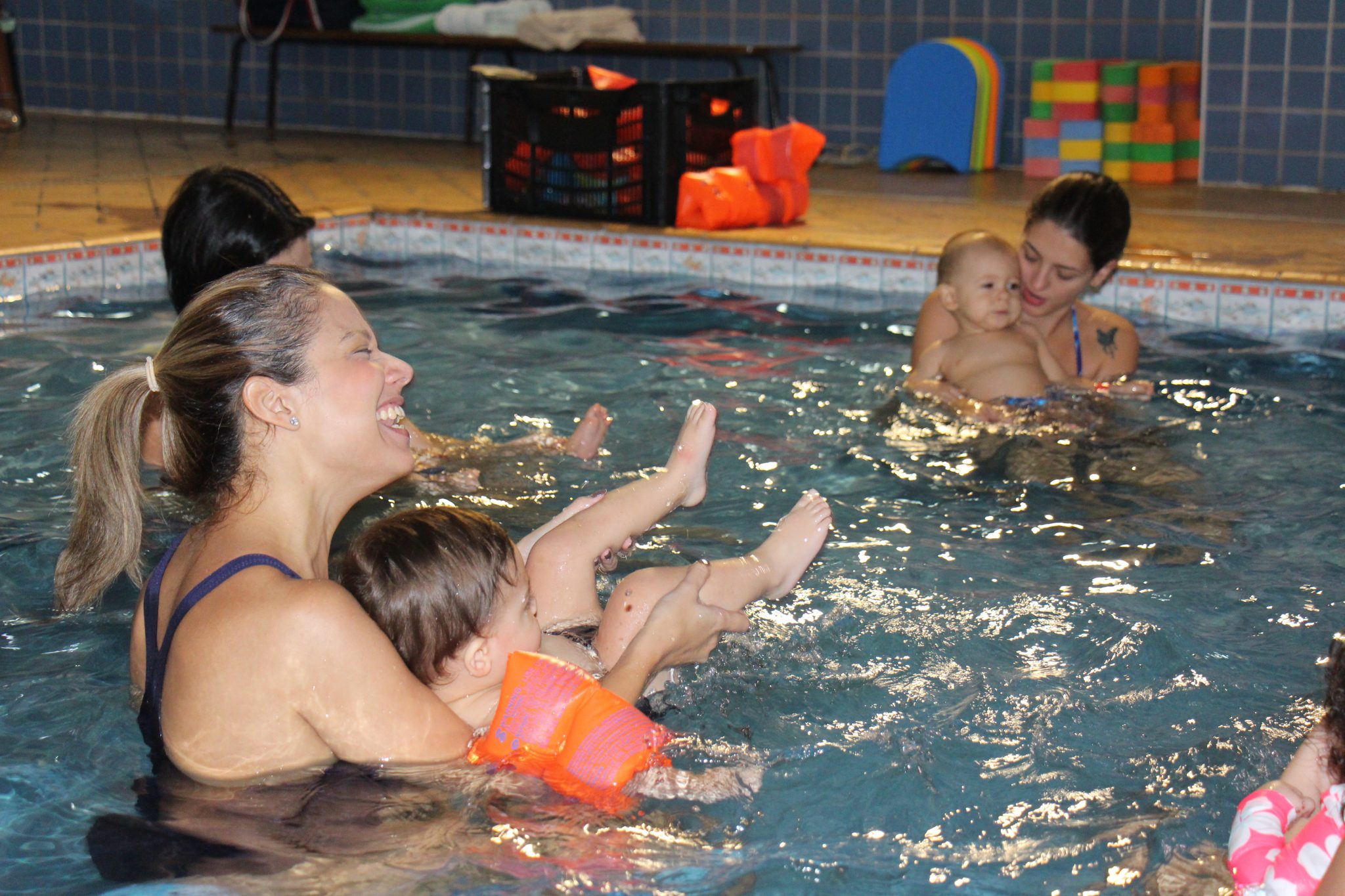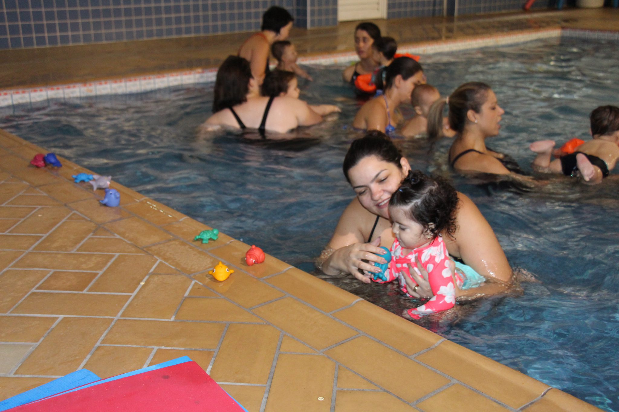 Quer coisa melhor do que passar momentos de puro encanto com seus bebês dentro da piscina? Esse foi o presente para as mães do berçário, que, de dentro da piscina, participaram de uma aula especial com a professora Flávia Gazolli. De forma lúdica, elas vivenciaram as atividades que estimulam as potencialidades da criança, trabalhando a sua relação com o espaço, com o objeto, com o outro e consigo mesma.