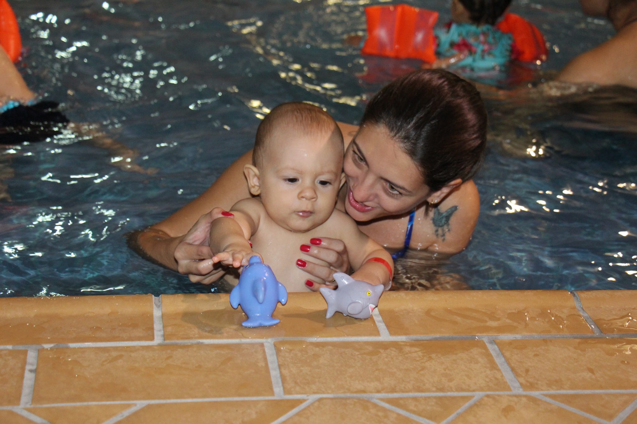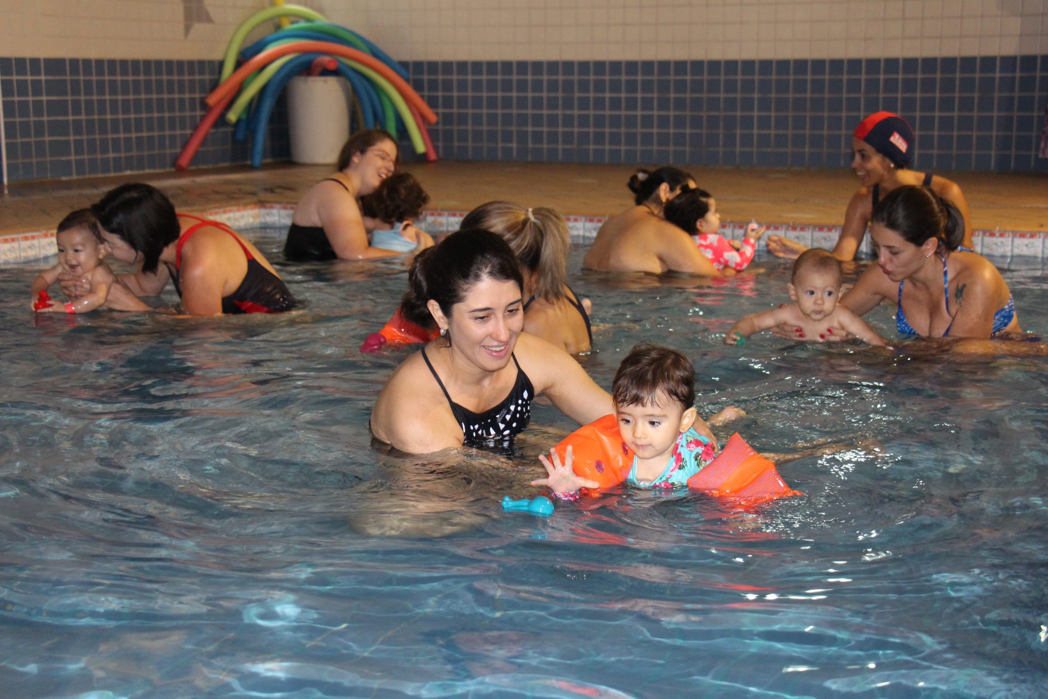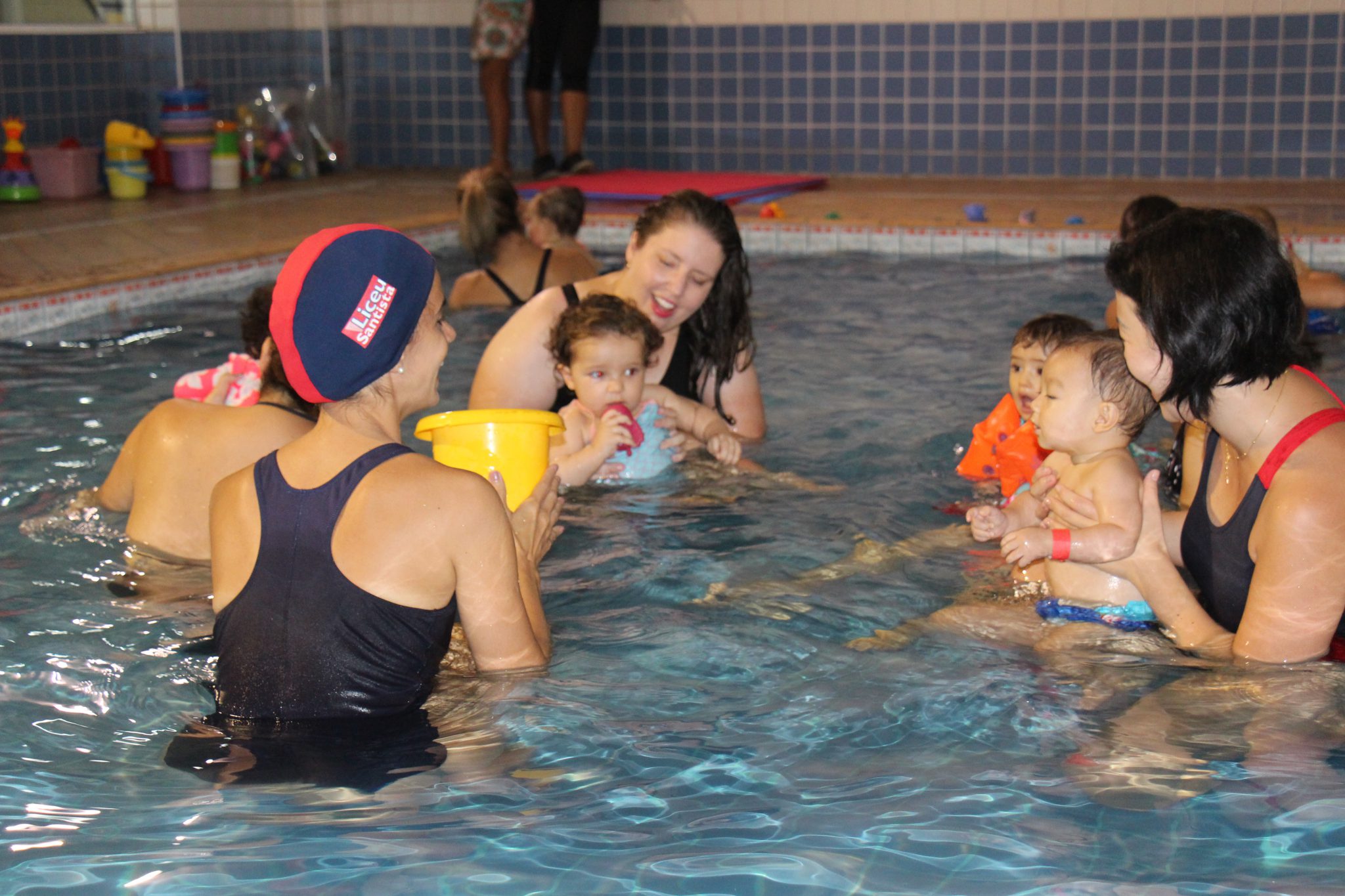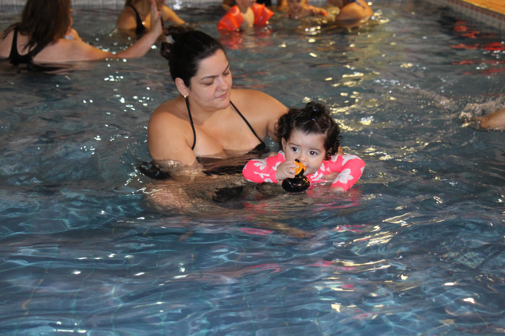Quer coisa melhor do que passar momentos de puro encanto com seus bebês dentro da piscina? Esse foi o presente para as mães do berçário, que, de dentro da piscina, participaram de uma aula especial com a professora Flávia Gazolli. De forma lúdica, elas vivenciaram as atividades que estimulam as potencialidades da criança, trabalhando a sua relação com o espaço, com o objeto, com o outro e consigo mesma.