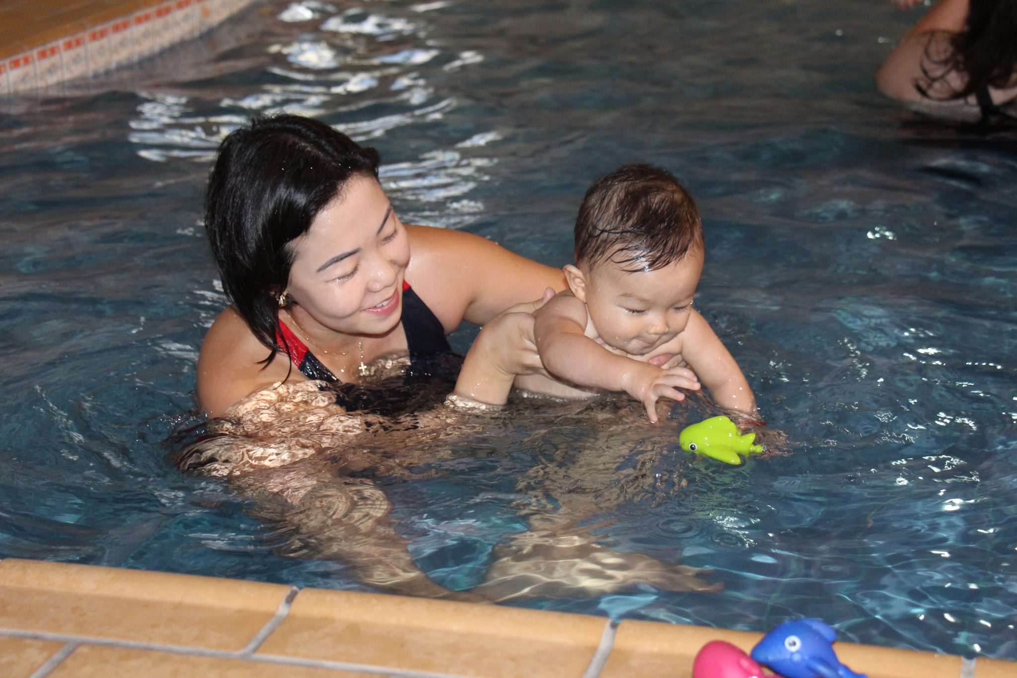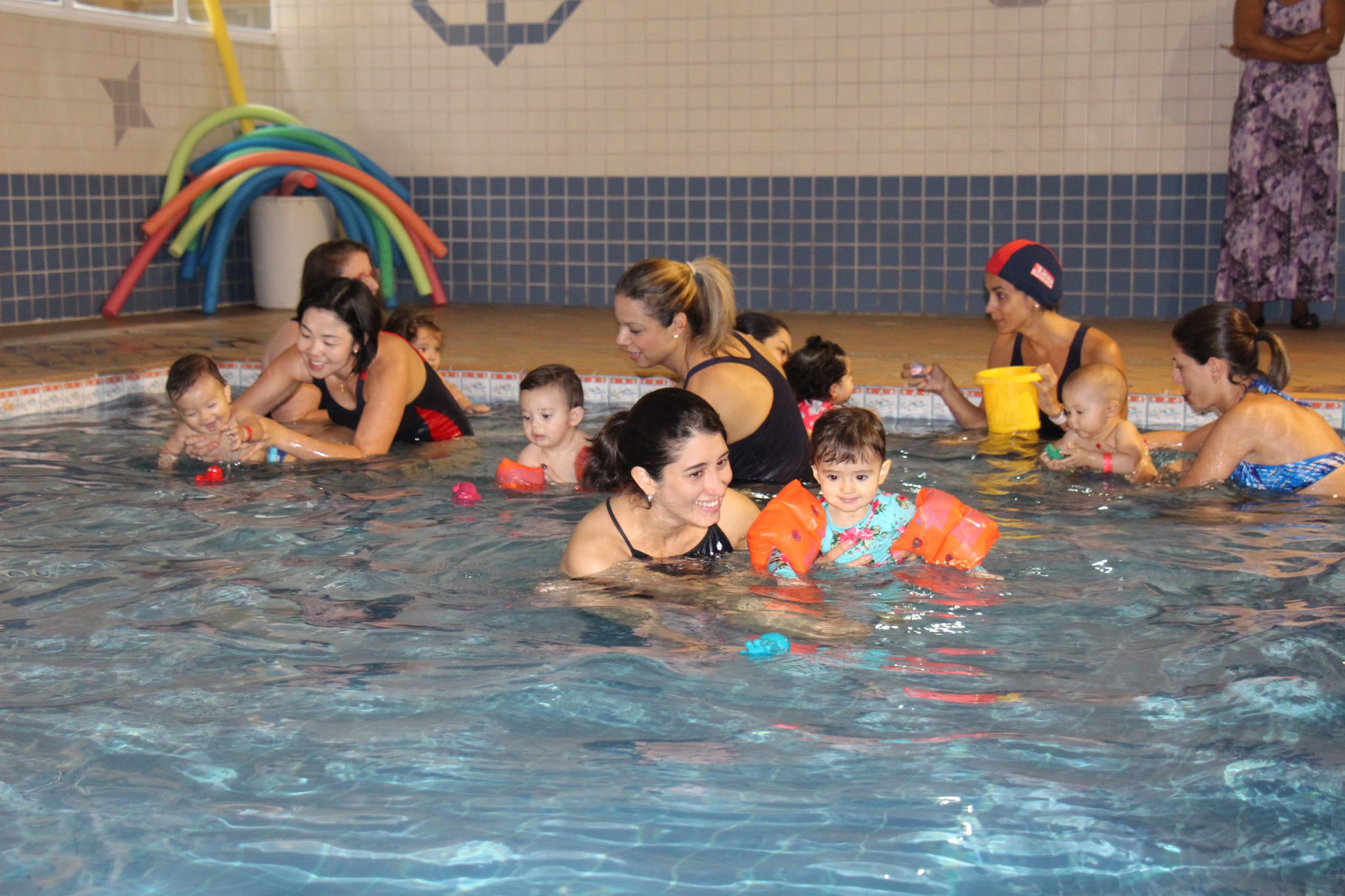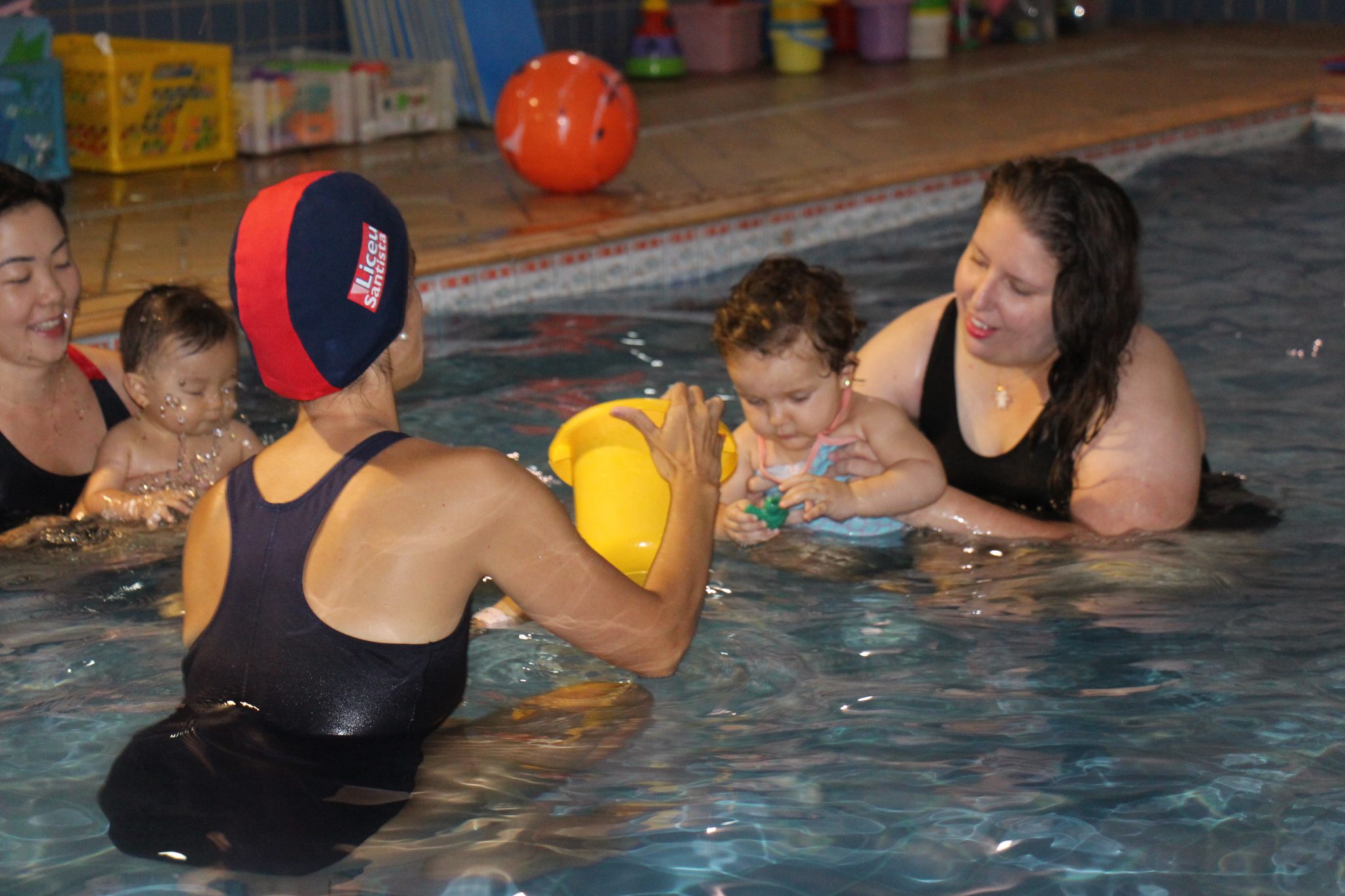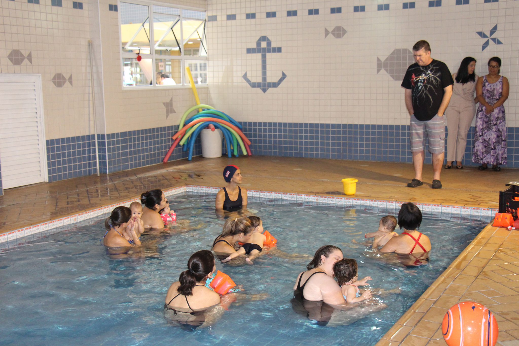Quer coisa melhor do que passar momentos de puro encanto com seus bebês dentro da piscina? Esse foi o presente para as mães do berçário, que, de dentro da piscina, participaram de uma aula especial com a professora Flávia Gazolli. De forma lúdica, elas vivenciaram as atividades que estimulam as potencialidades da criança, trabalhando a sua relação com o espaço, com o objeto, com o outro e consigo mesma.