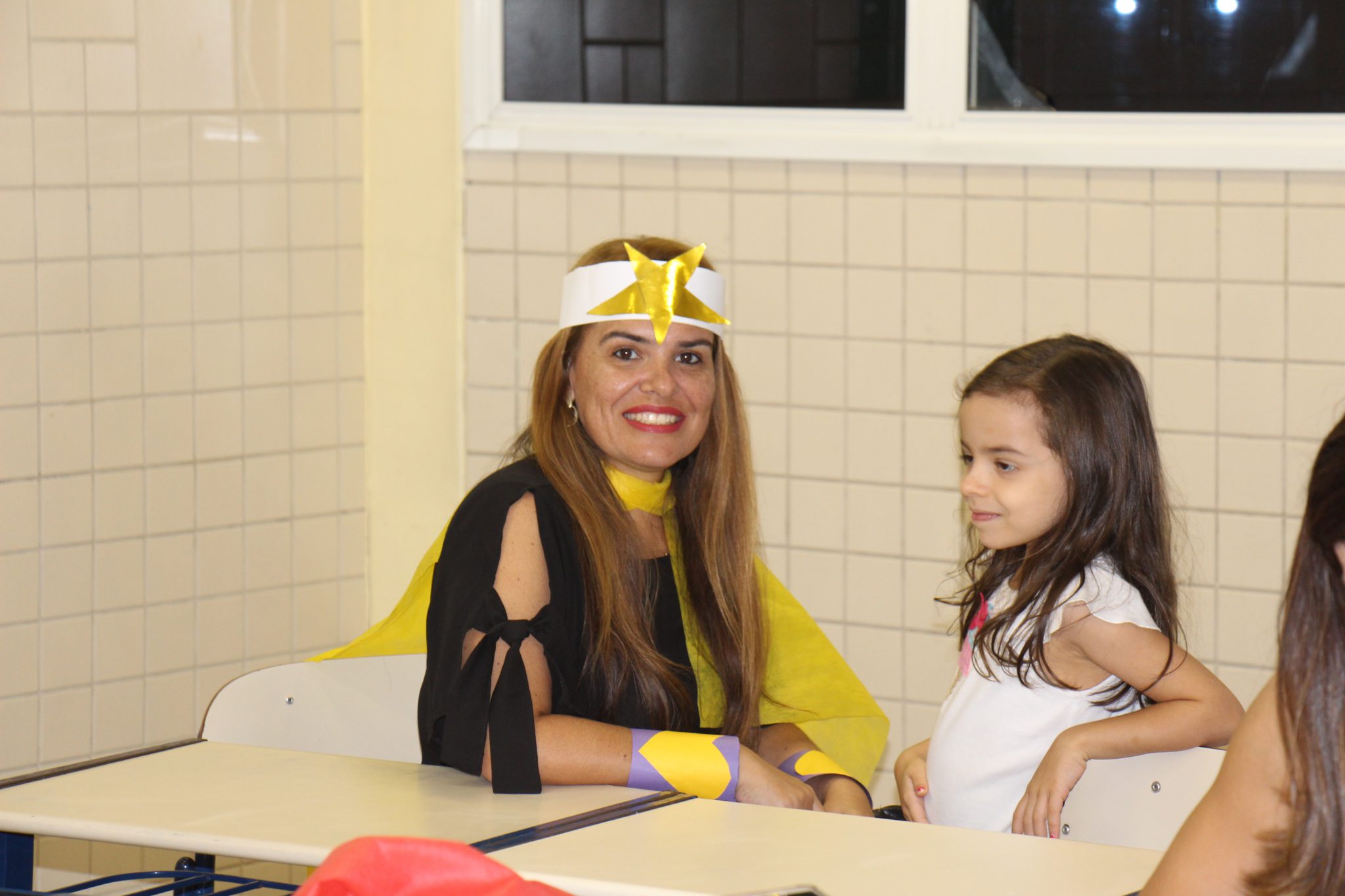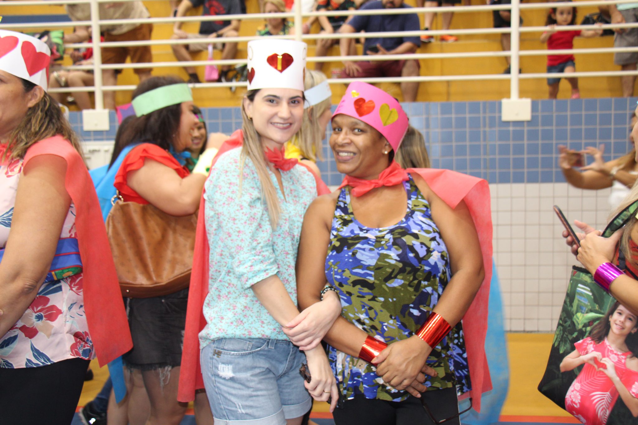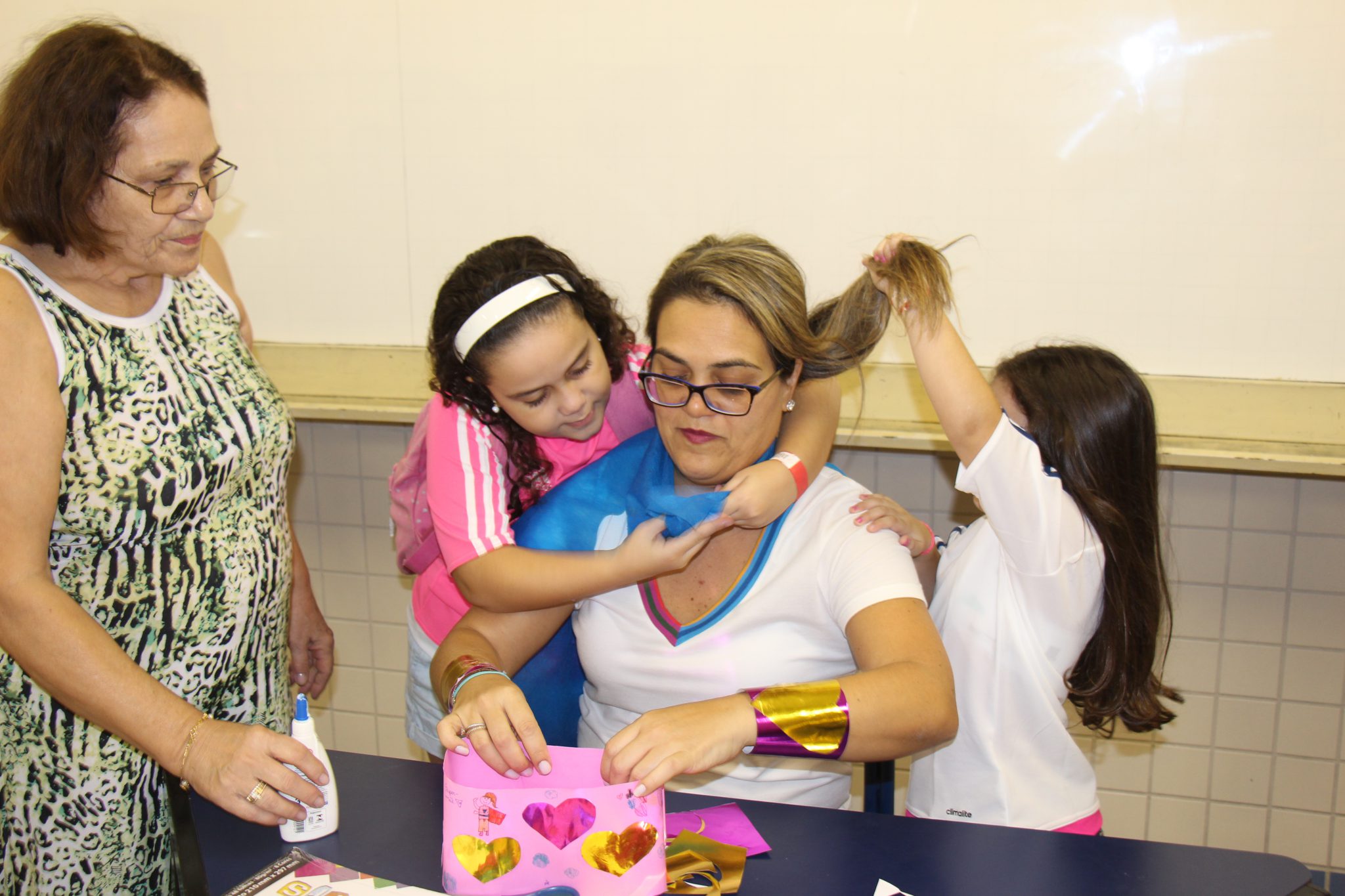 Festa boa é quando todo mundo se diverte, fica feliz, se emociona. As mães de alunos do 1º ao 5º ano do Ensino Fundamental participaram de uma oficina de transformação. Com o auxílio dos filhos-assistentes, elas se caracterizaram de super-heroína de acordo com o seu super-poder: ser divertida, esportista, fashion ou divertida. Depois, foi se reunir e comemorar com as crianças, que ainda encantaram as homenageadas interpretando a canção “Maria, Maria”, de Milton Nascimento.
