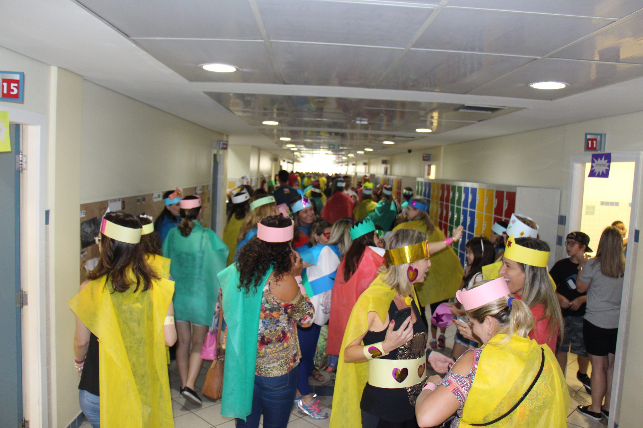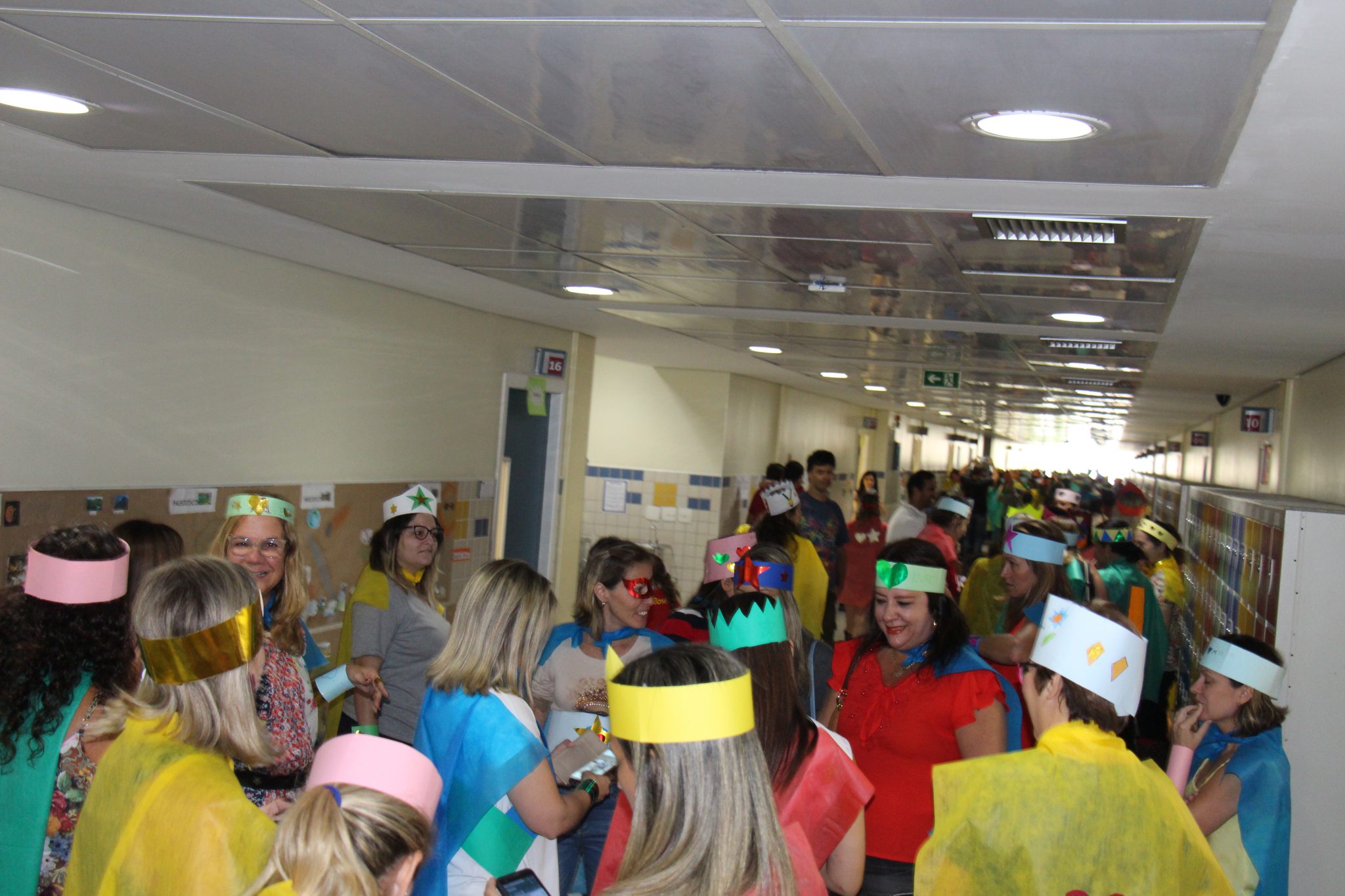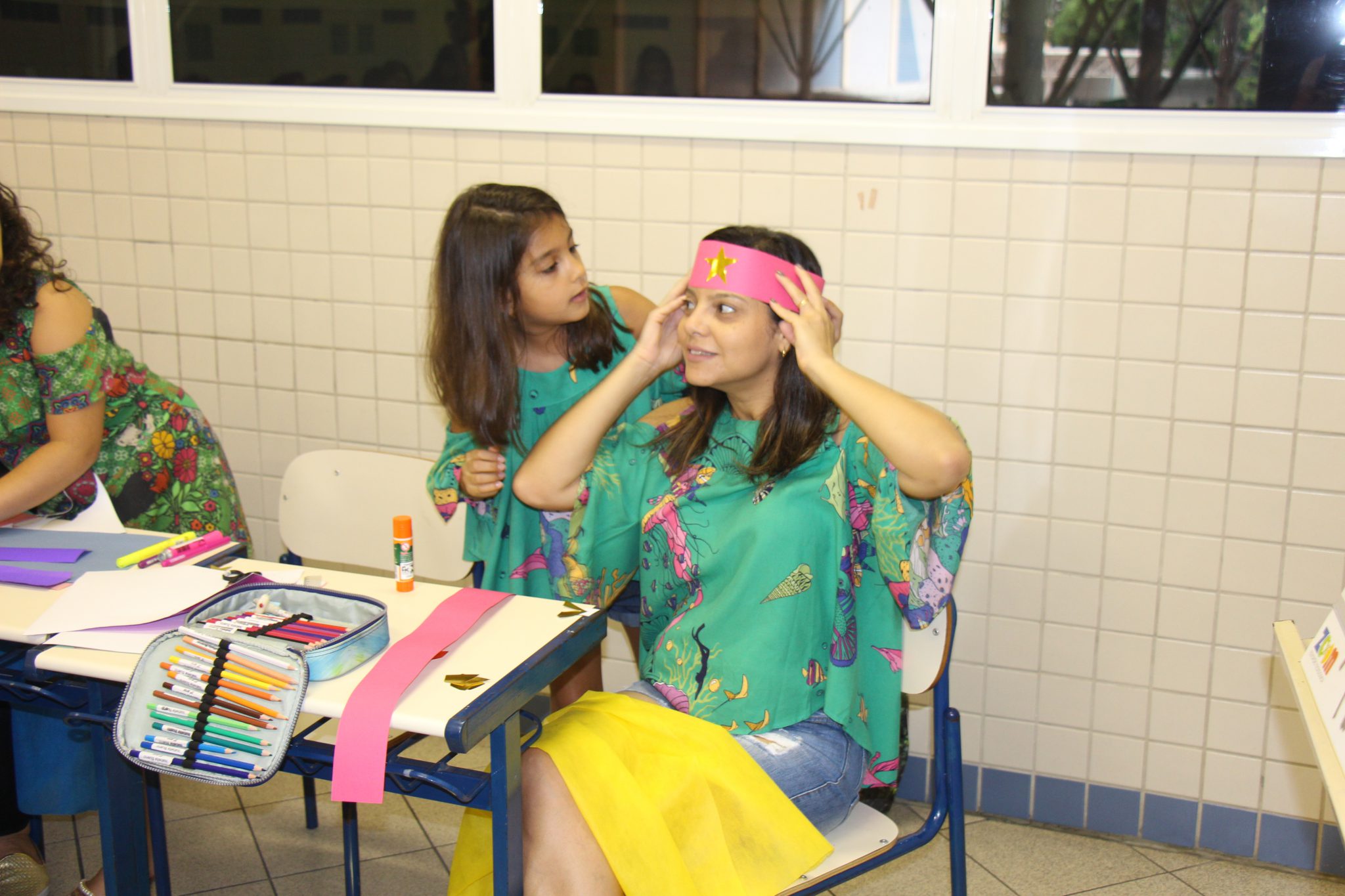 Festa boa é quando todo mundo se diverte, fica feliz, se emociona. As mães de alunos do 1º ao 5º ano do Ensino Fundamental participaram de uma oficina de transformação. Com o auxílio dos filhos-assistentes, elas se caracterizaram de super-heroína de acordo com o seu super-poder: ser divertida, esportista, fashion ou divertida. Depois, foi se reunir e comemorar com as crianças, que ainda encantaram as homenageadas interpretando a canção “Maria, Maria”, de Milton Nascimento.