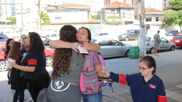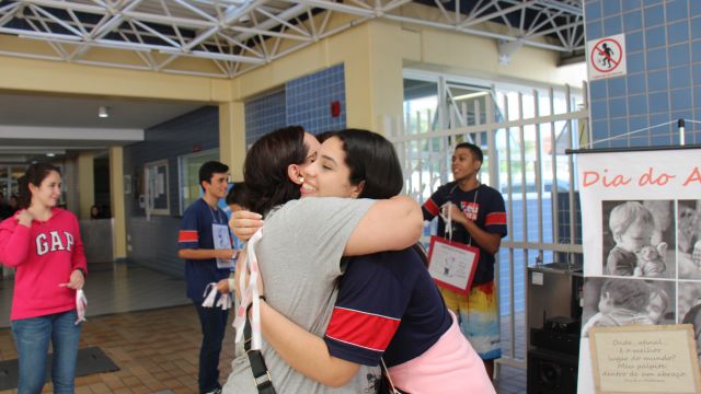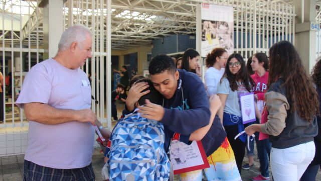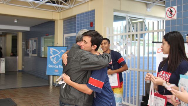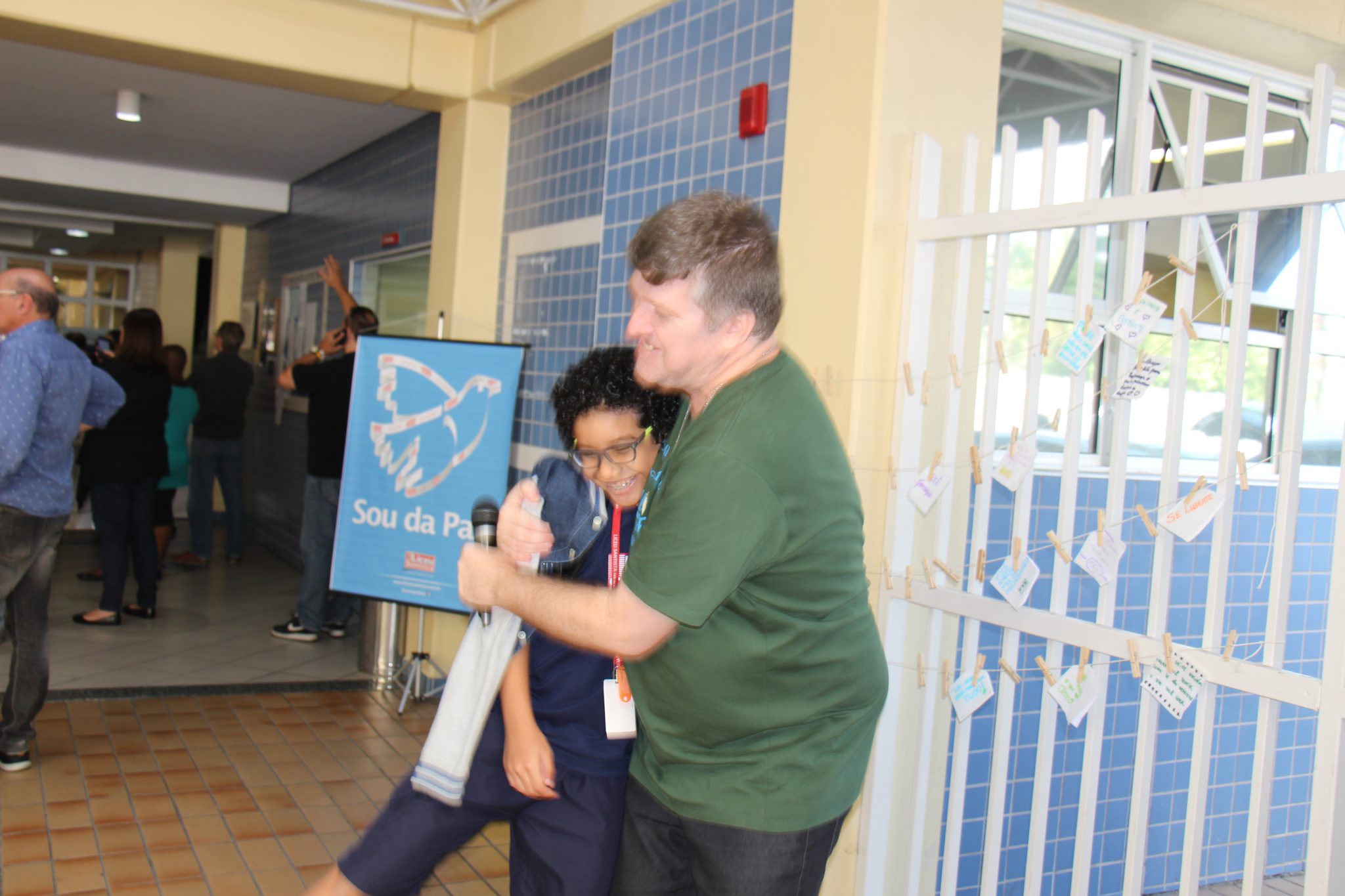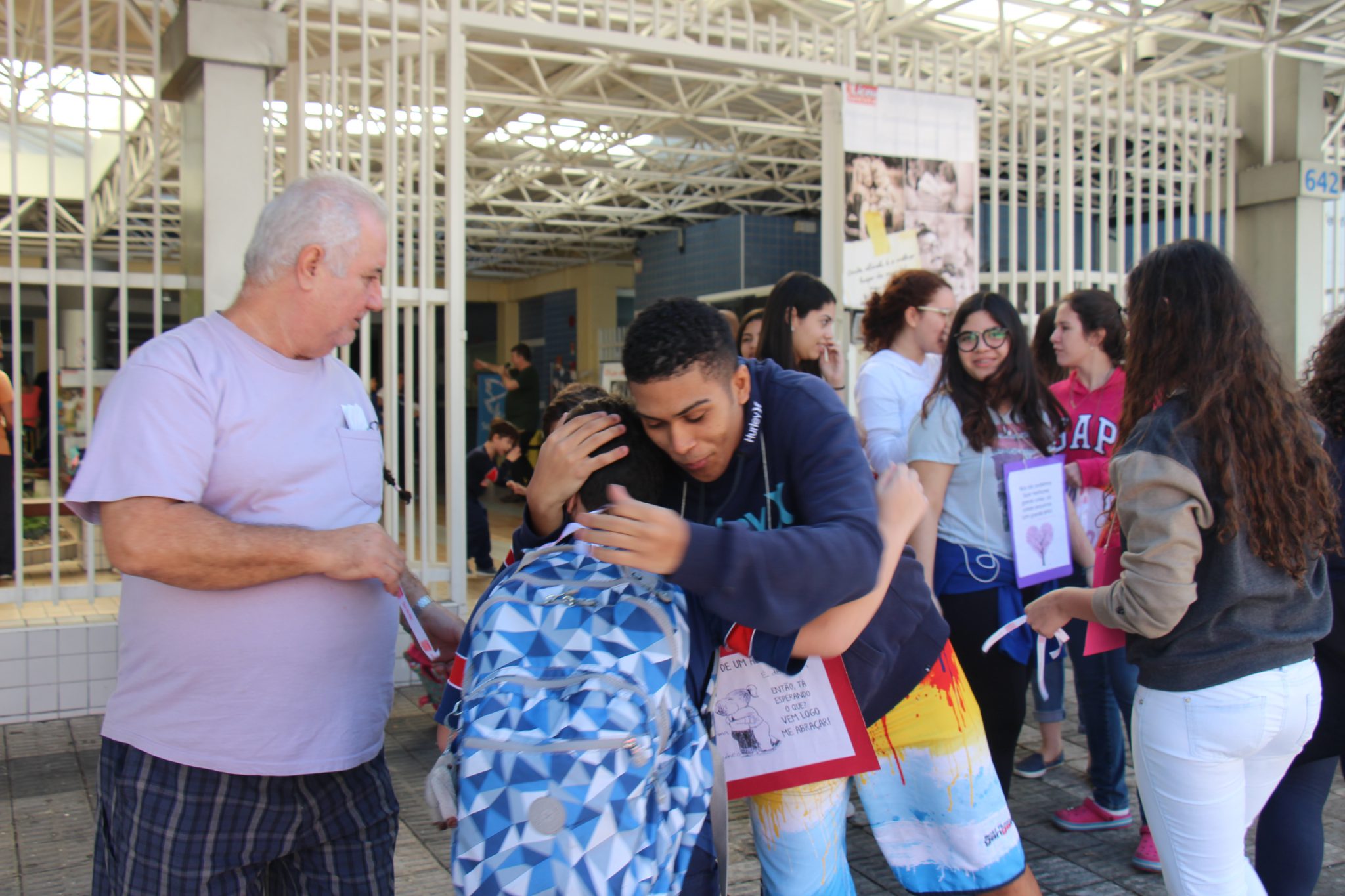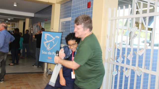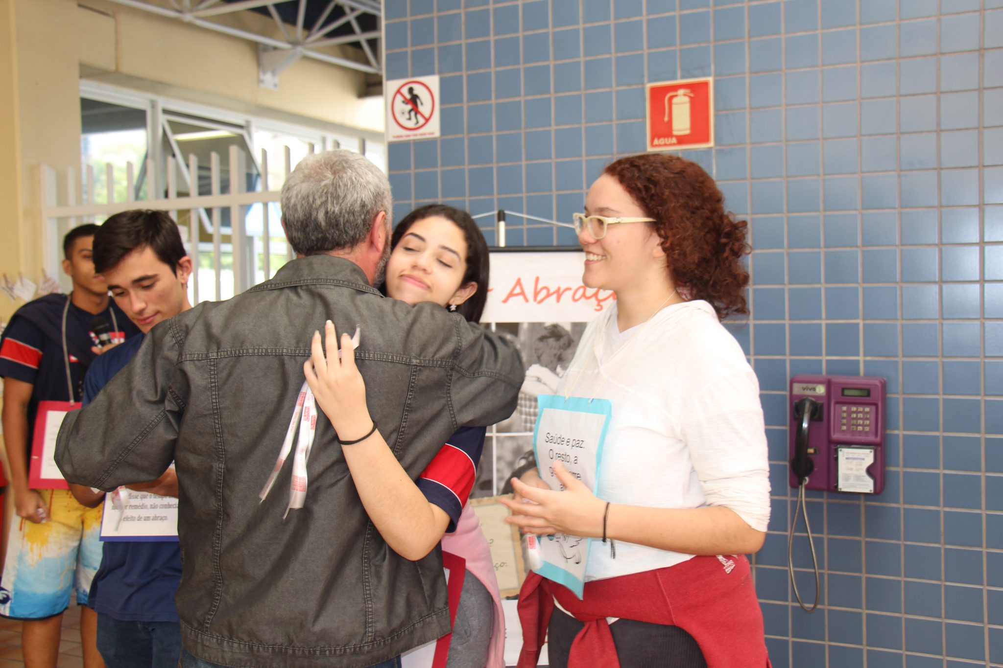 A proposta é intensificar a cultura da paz no cotidiano e que ela ultrapasse os muros da escola. “Acreditamos que é possível firmar comportamentos positivos por meio do carinho, da atenção, do respeito e da tolerância. O abraço é uma forma de demonstrar amizade e o desejo de que a pessoa seja feliz”, reitera o coordenador Sérgio.